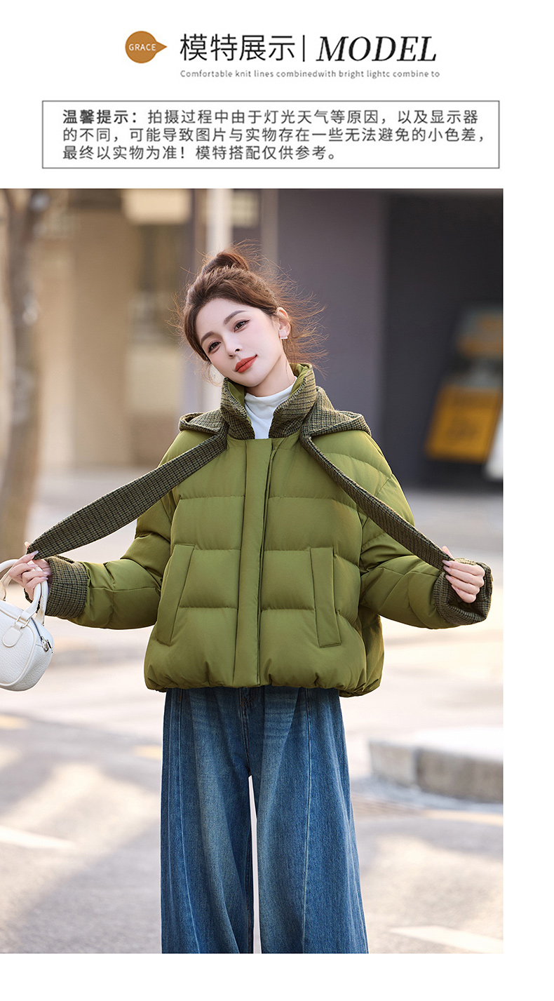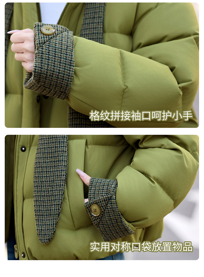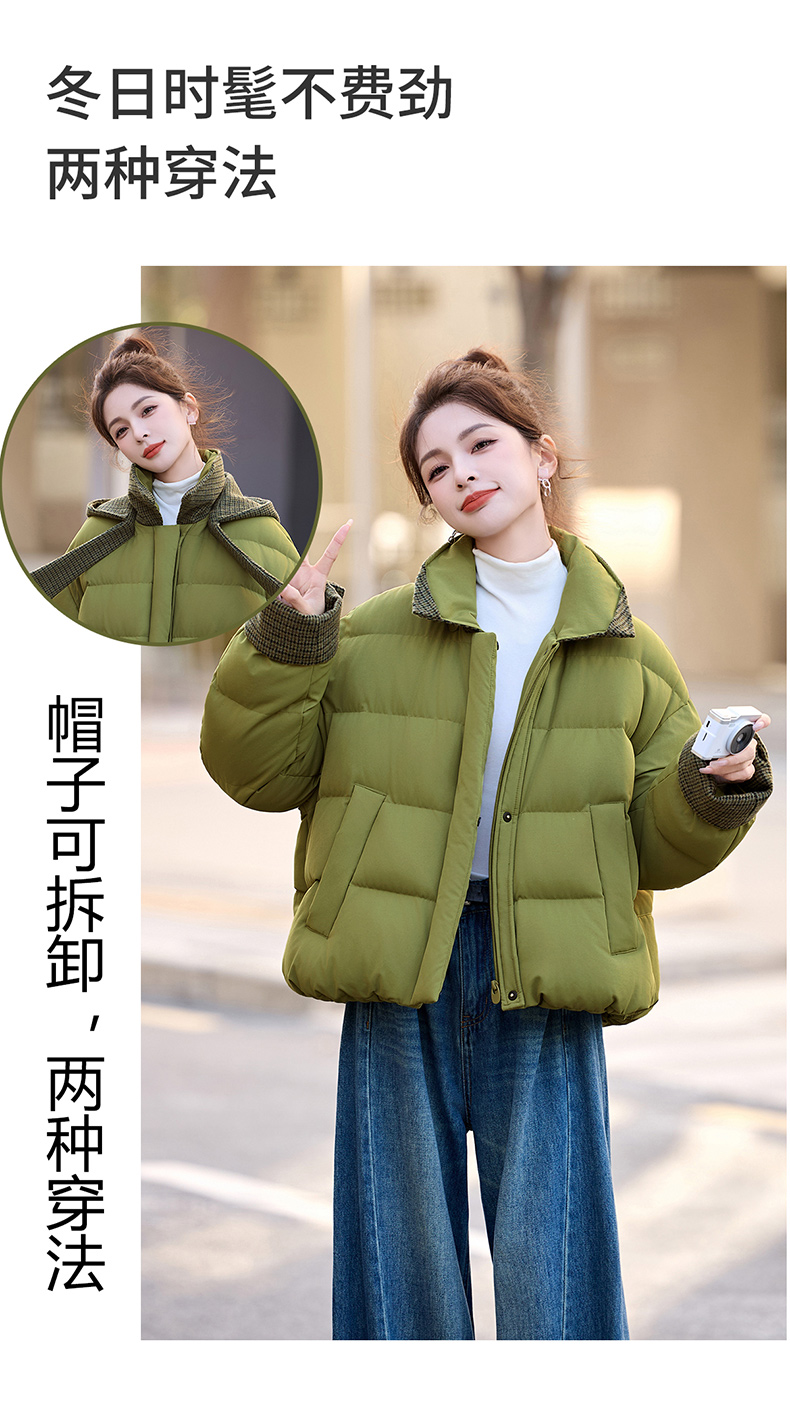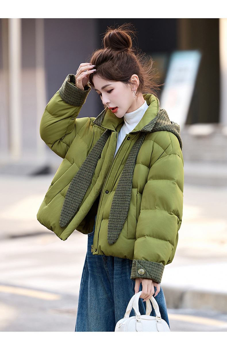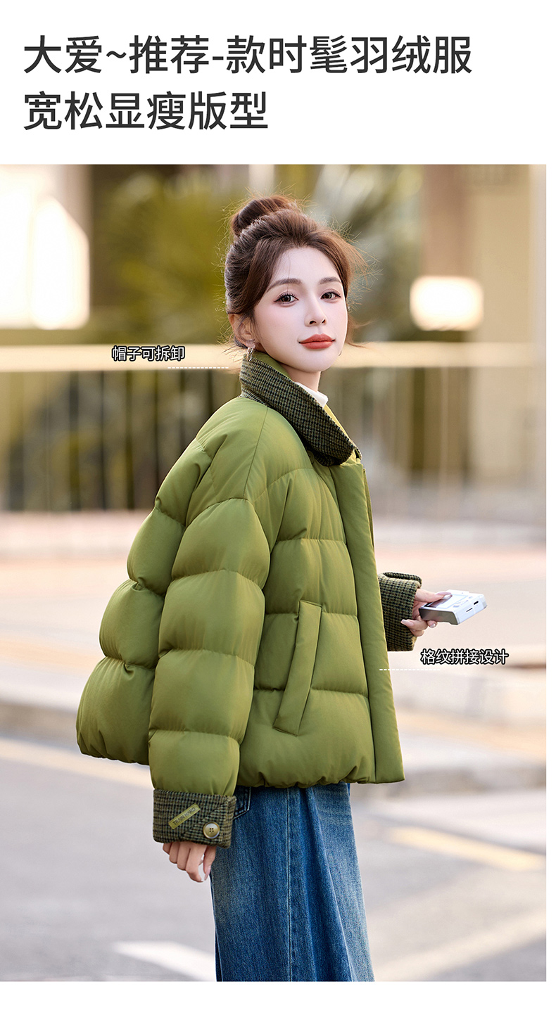 韩系短款羽绒服绿色连帽面包服,小个子巨好看厚外套HR-YAX2569