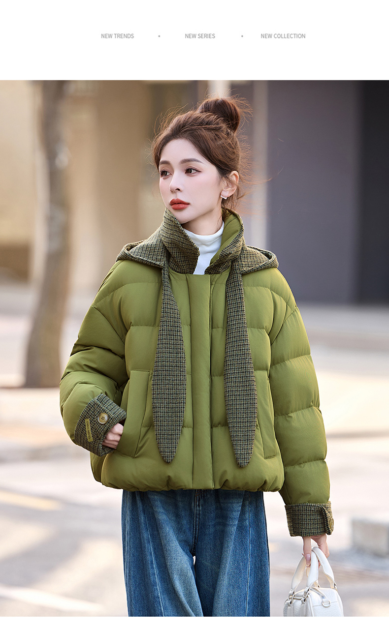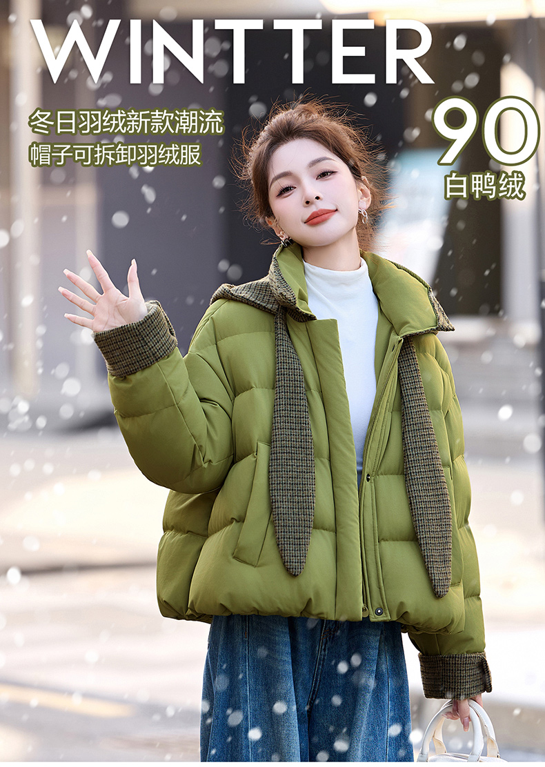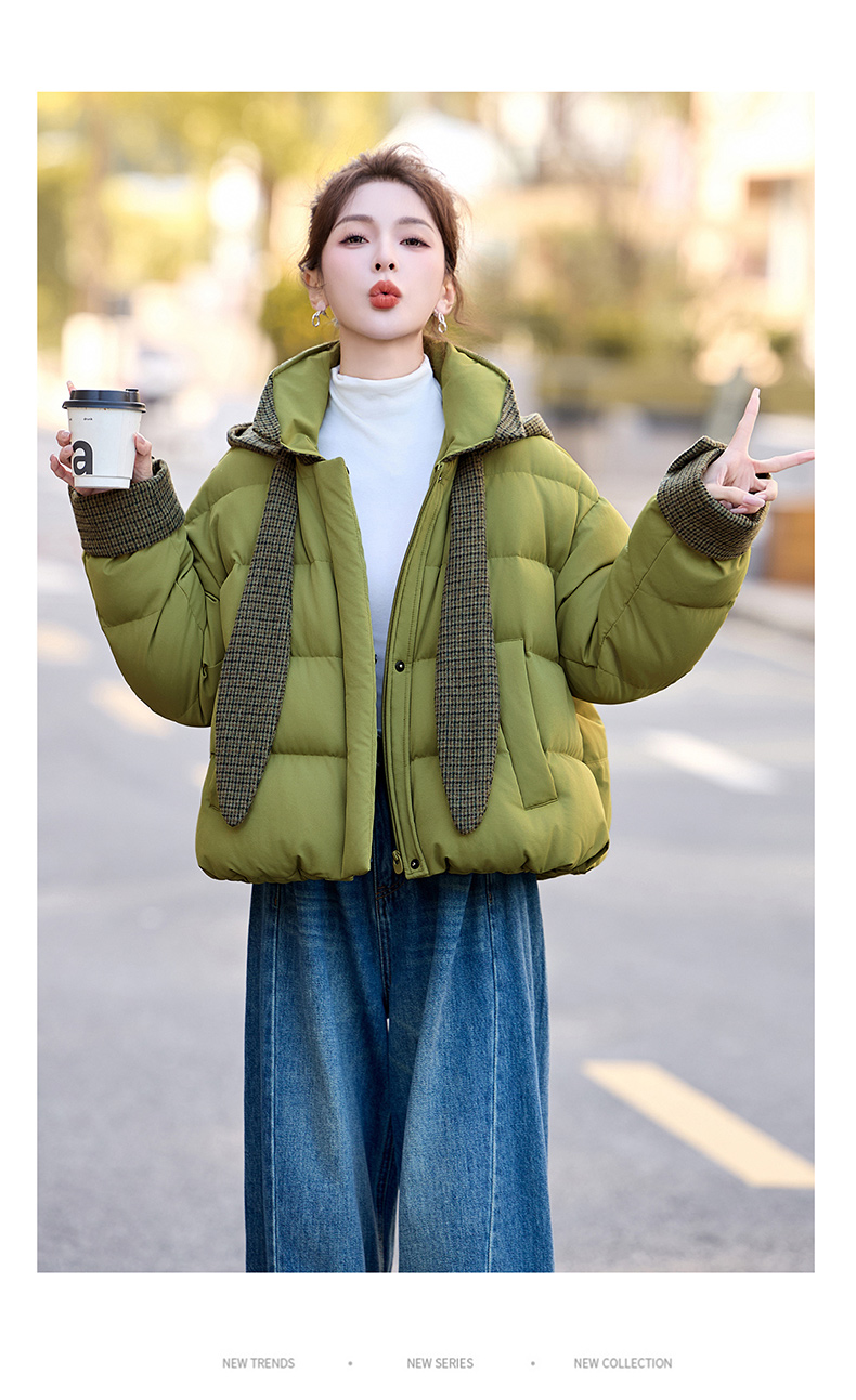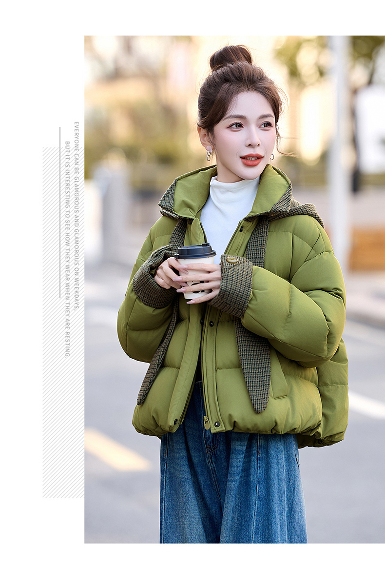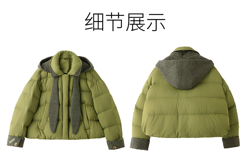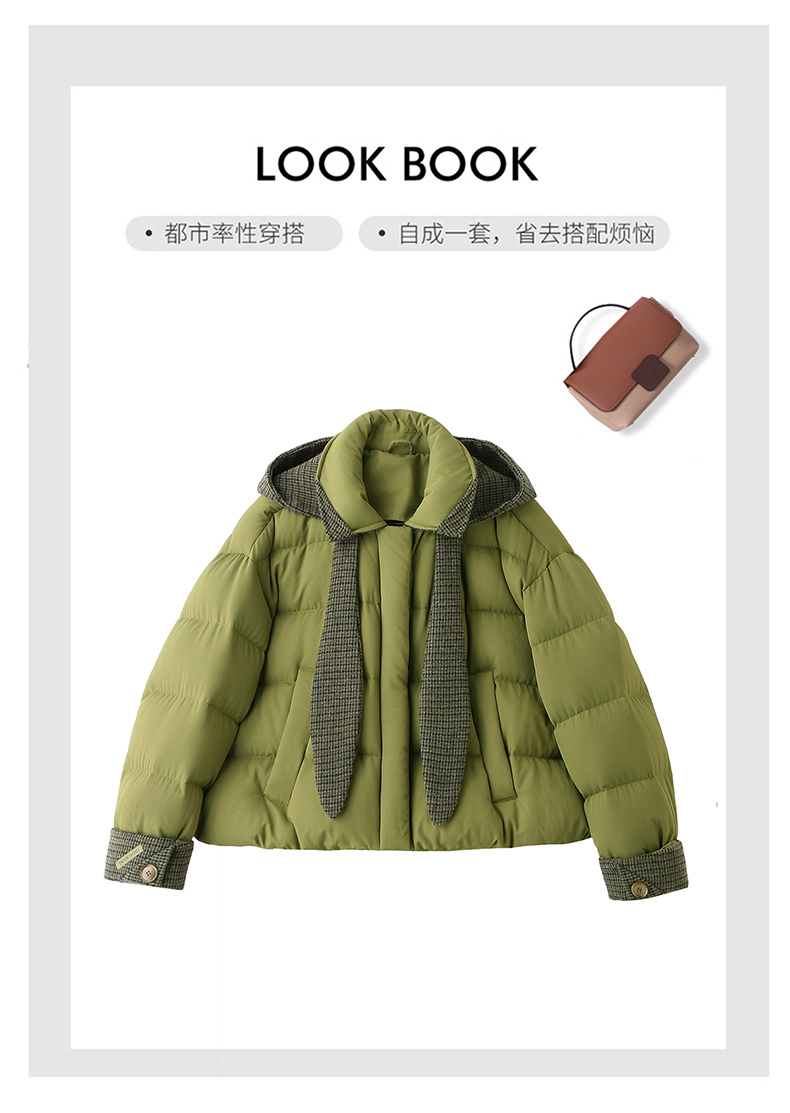 韩系短款羽绒服绿色连帽面包服,小个子巨好看厚外套HR-YAX2569