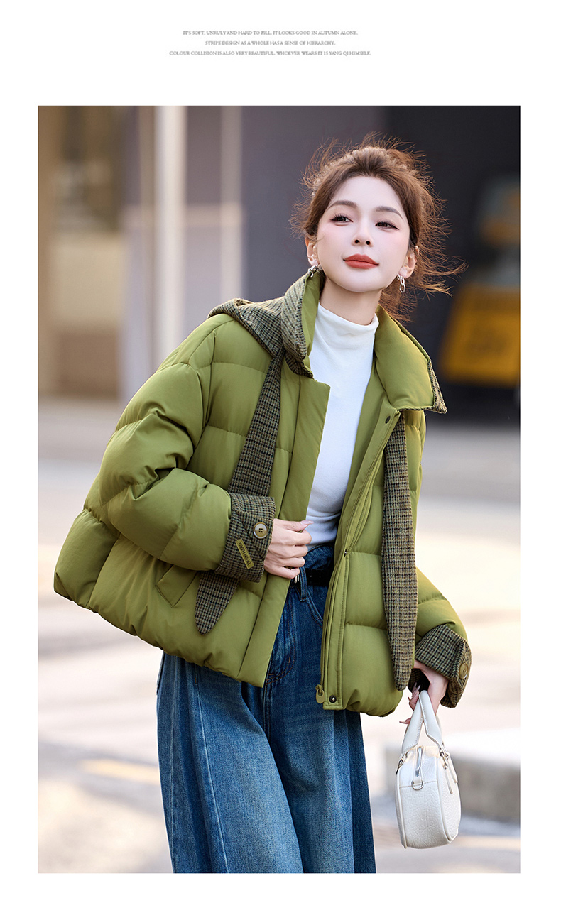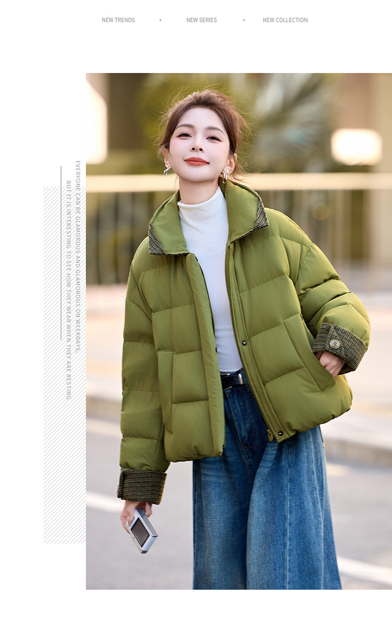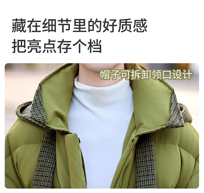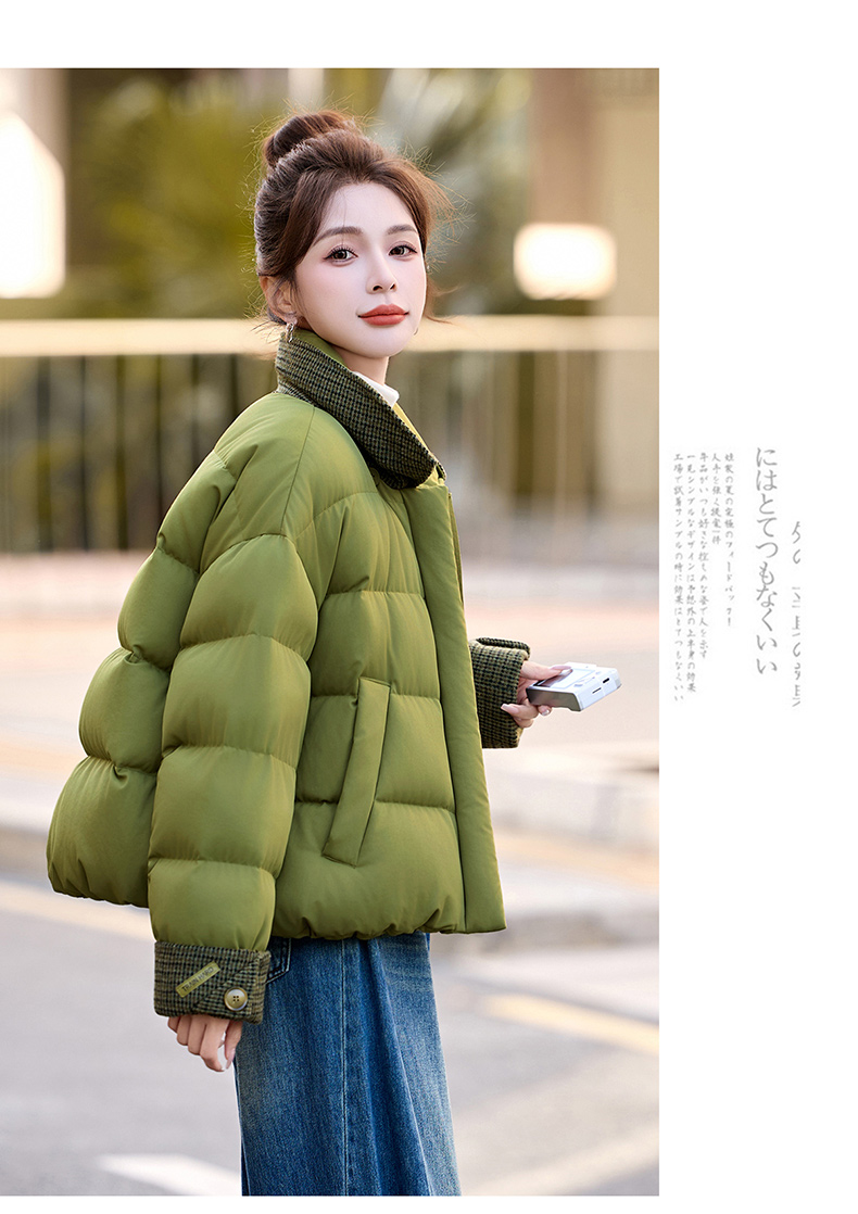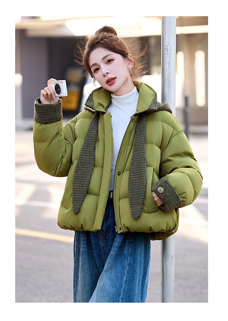 韩系短款羽绒服绿色连帽面包服,小个子巨好看厚外套HR-YAX2569