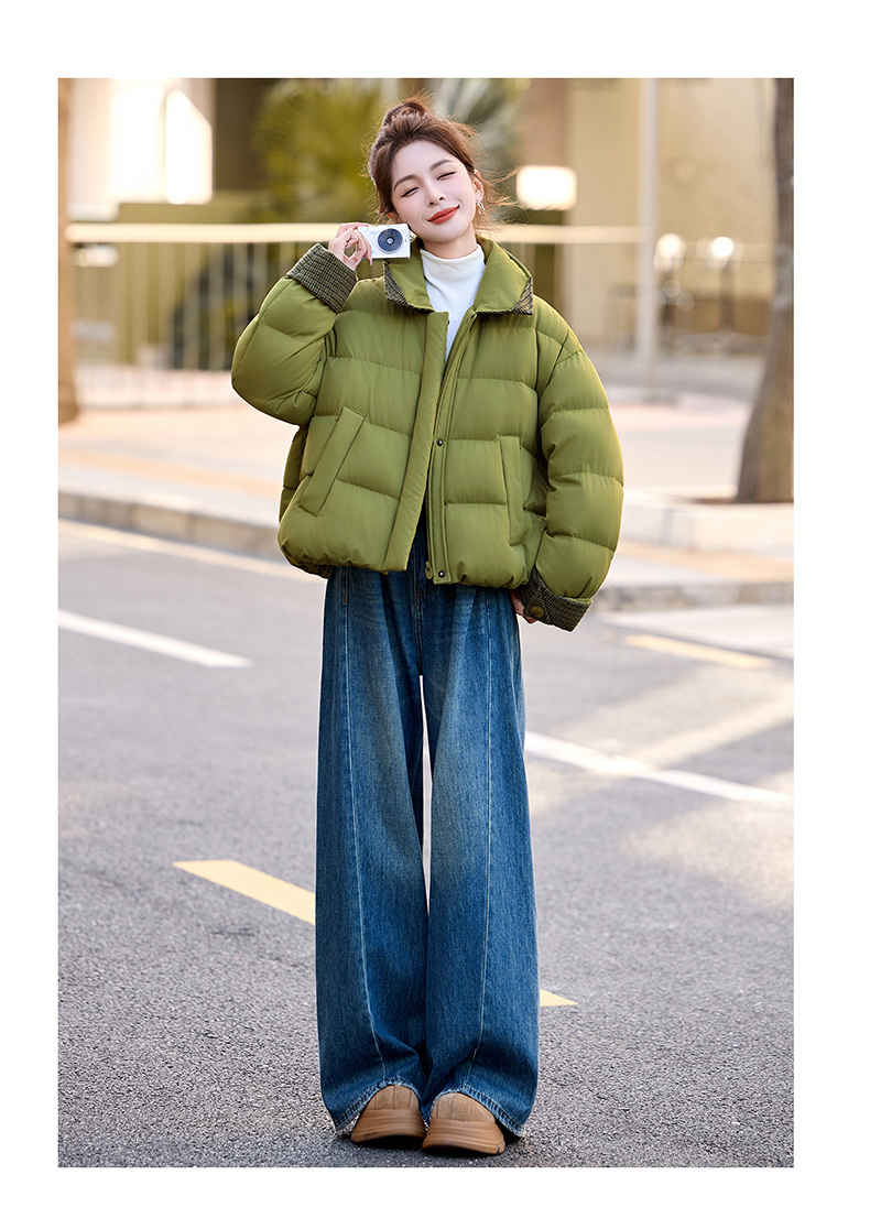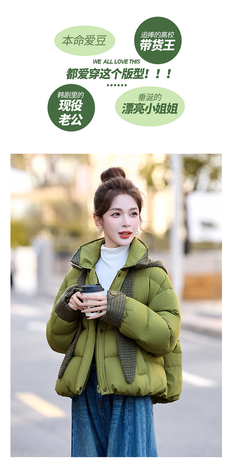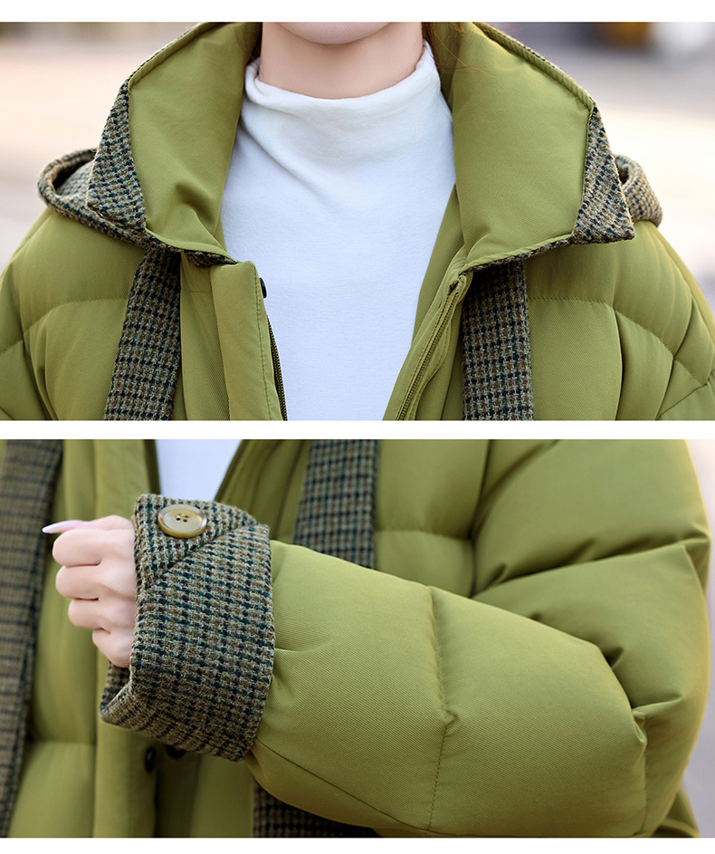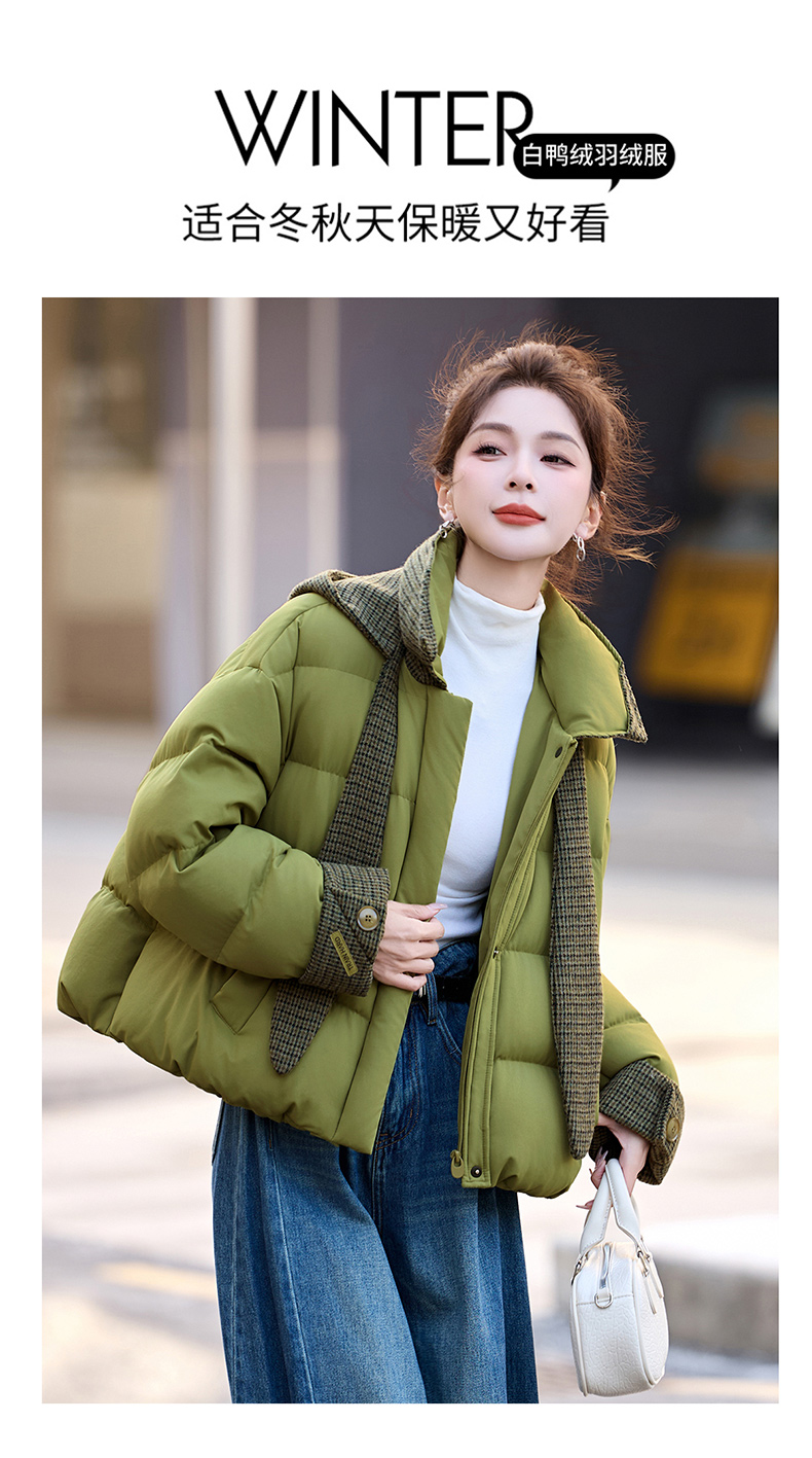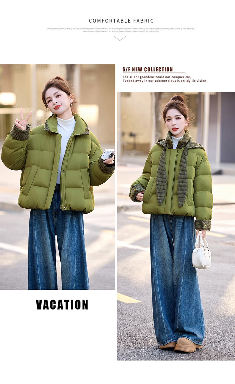 韩系短款羽绒服绿色连帽面包服,小个子巨好看厚外套HR-YAX2569