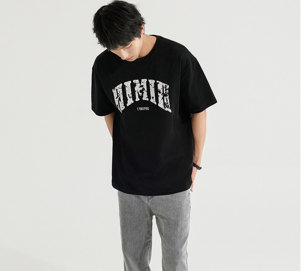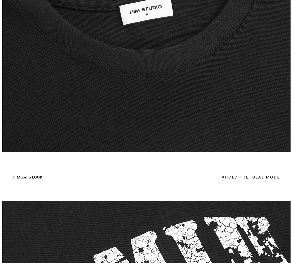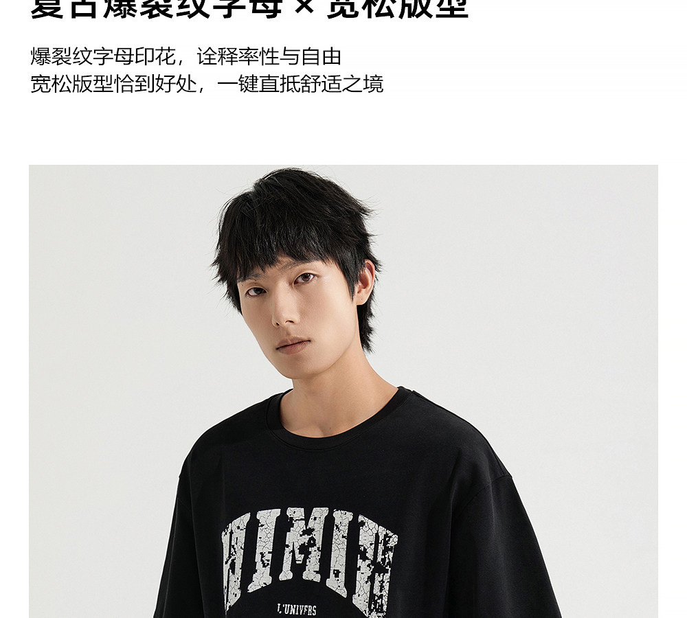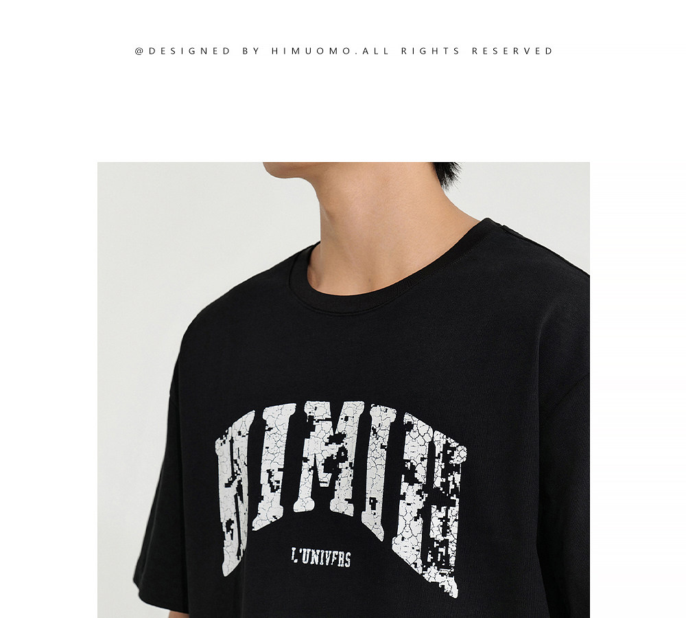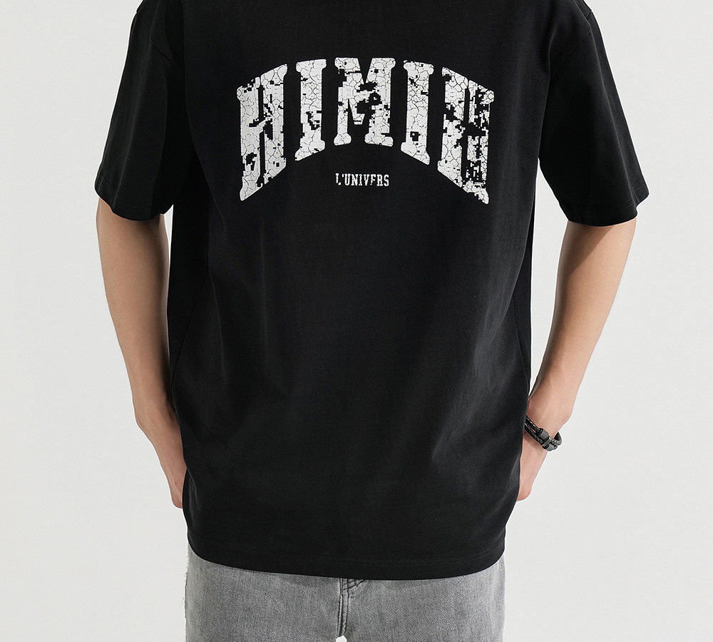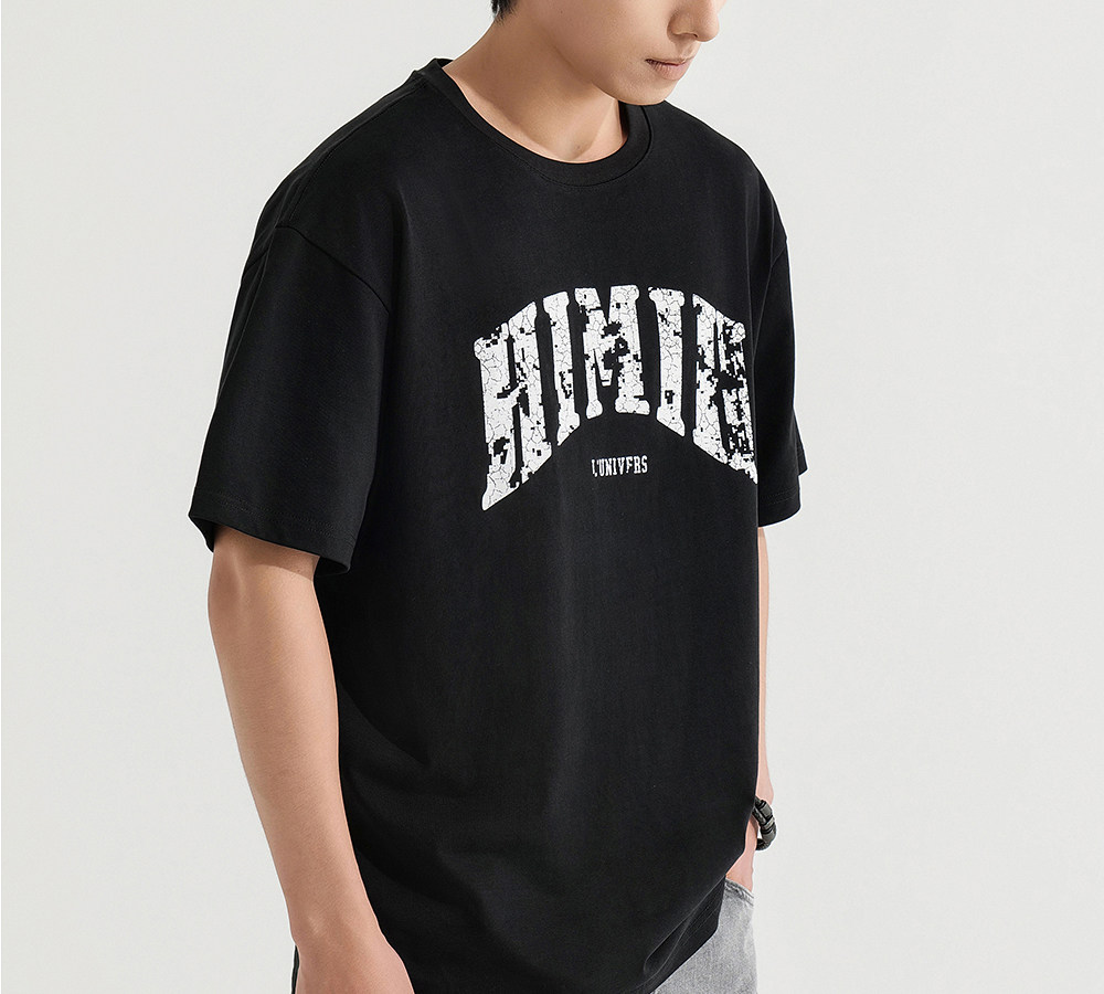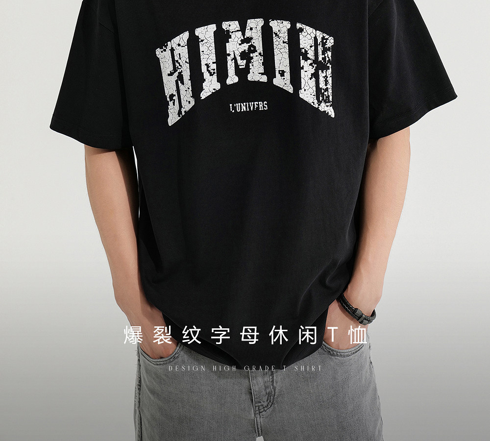 HIM漢崇 宽松圆领短袖T恤撞色爆裂纹字母烫印休闲上衣 2026夏季