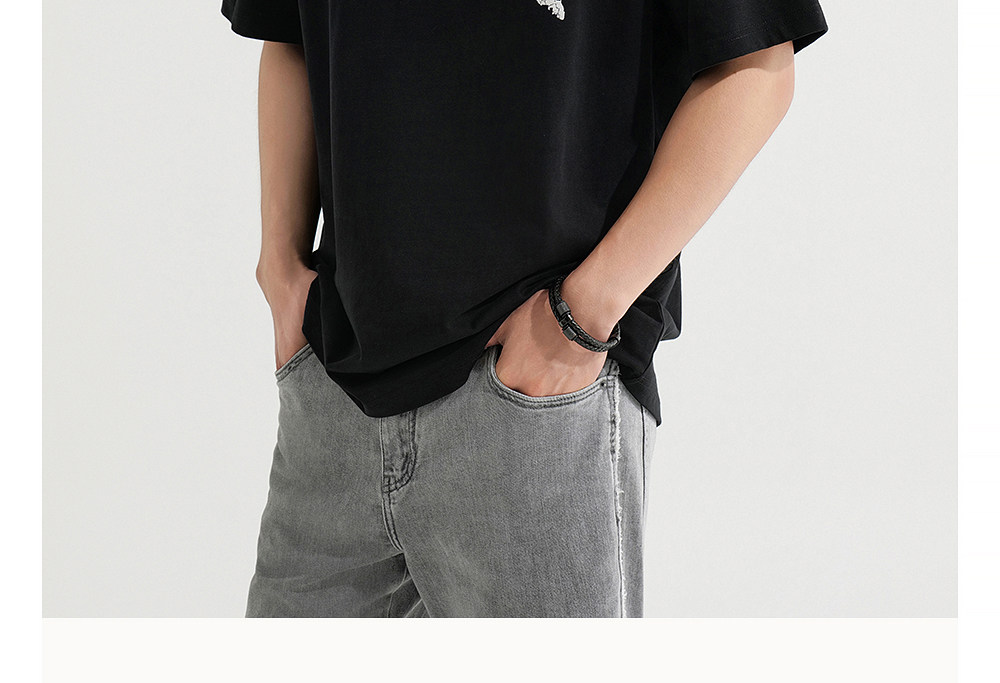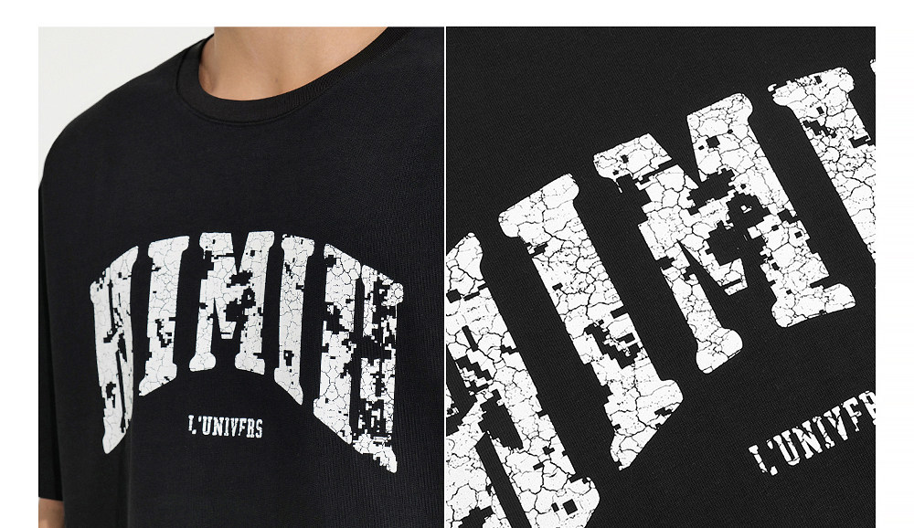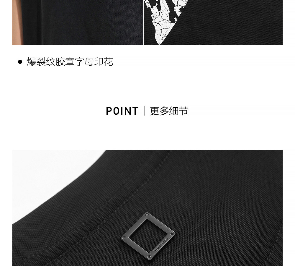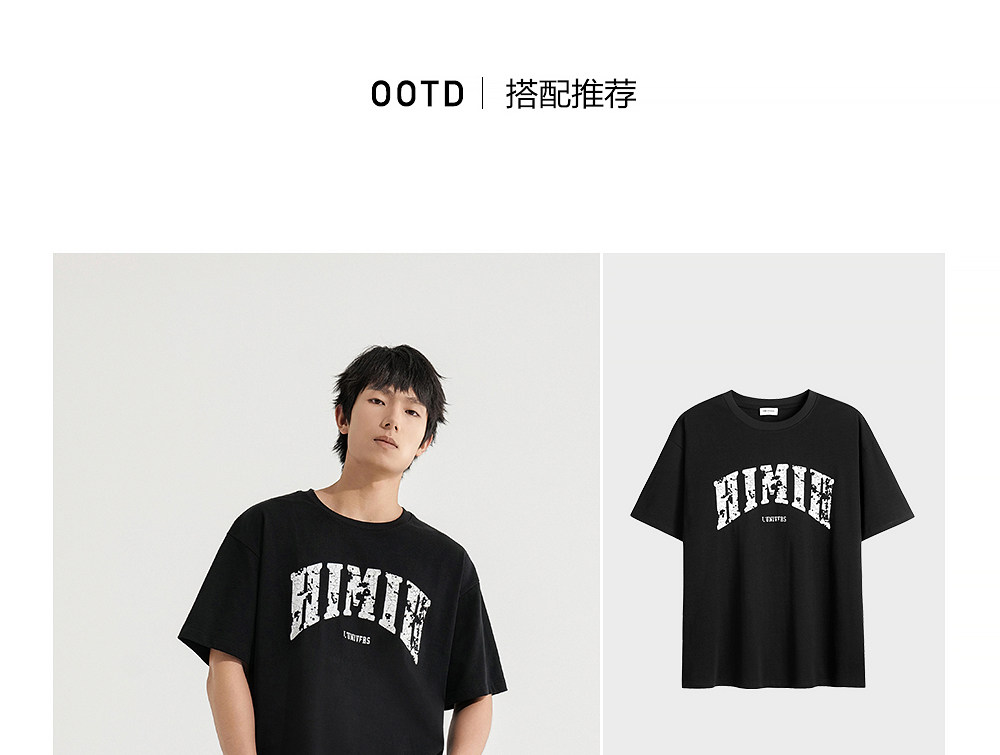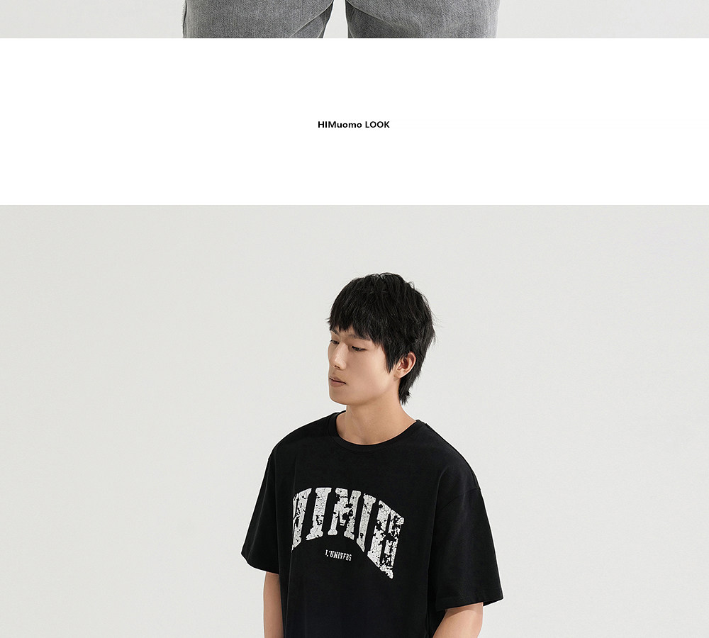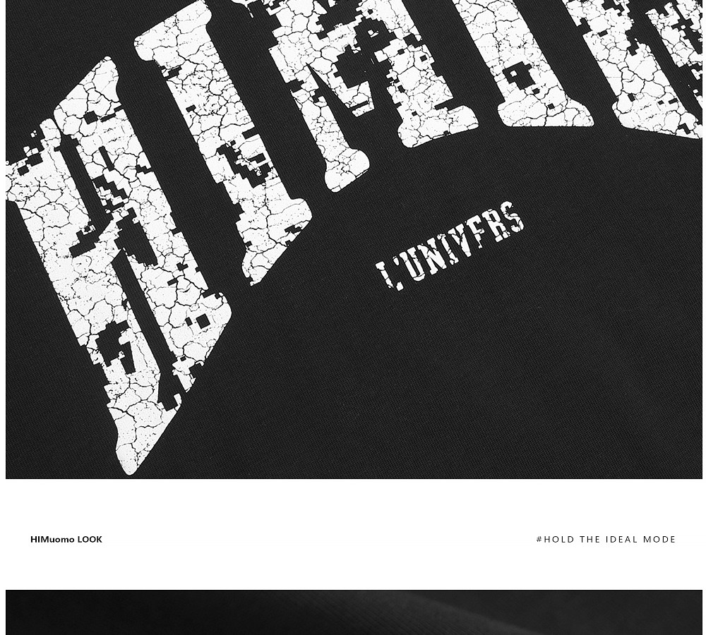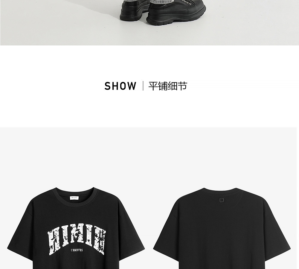 HIM漢崇 宽松圆领短袖T恤撞色爆裂纹字母烫印休闲上衣 2026夏季
