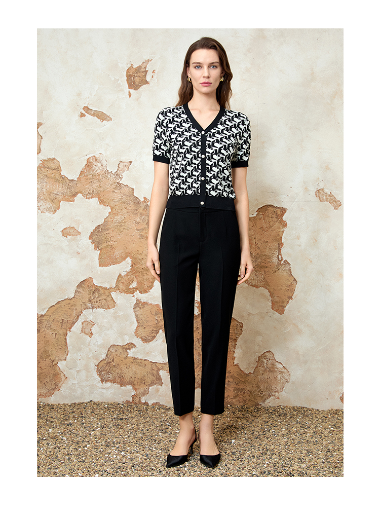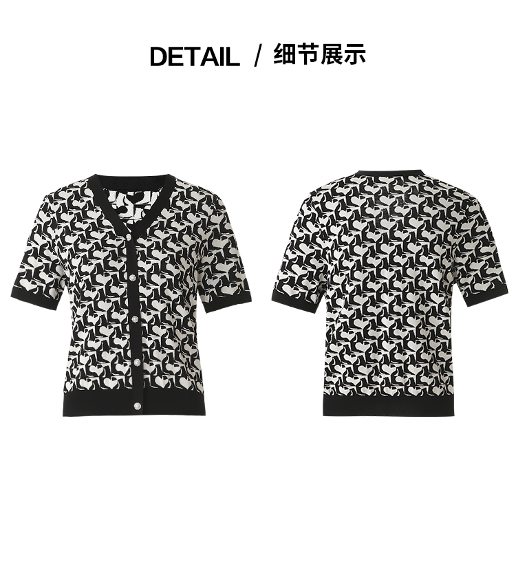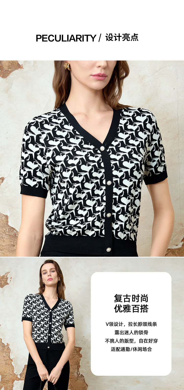 EITIE爱特爱气质V领显瘦短款高级百搭撞色短袖针织衫春季新款8101804
