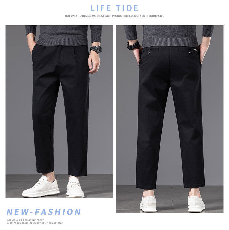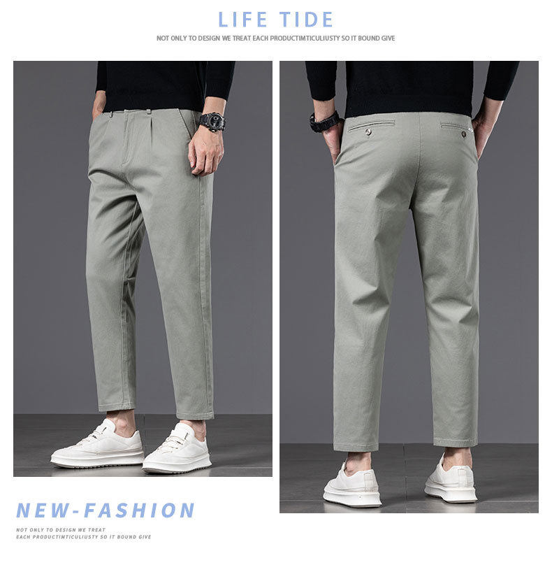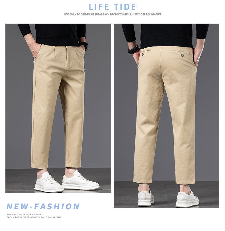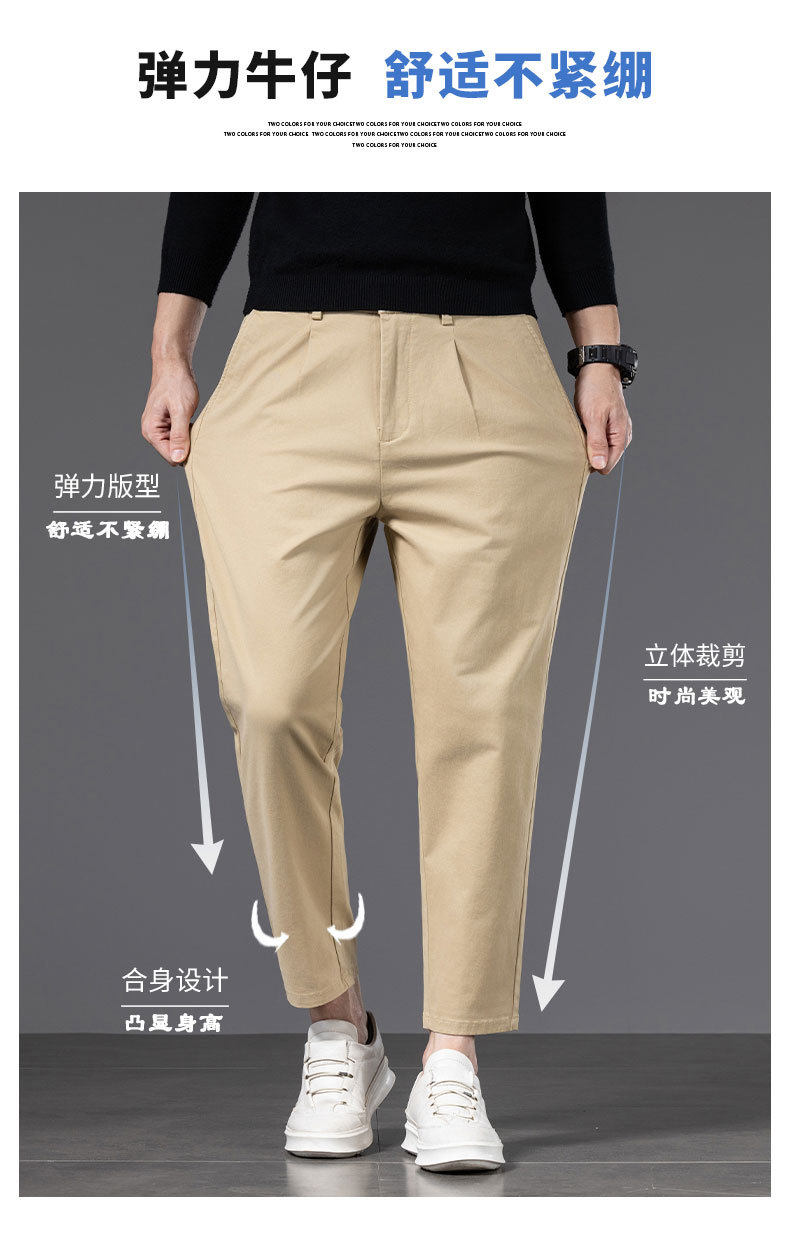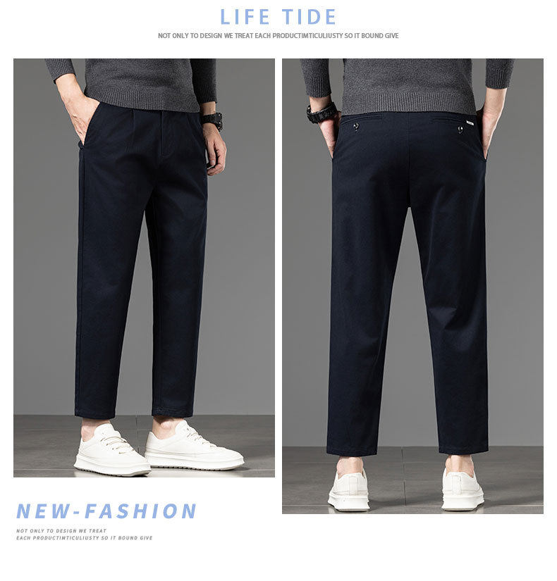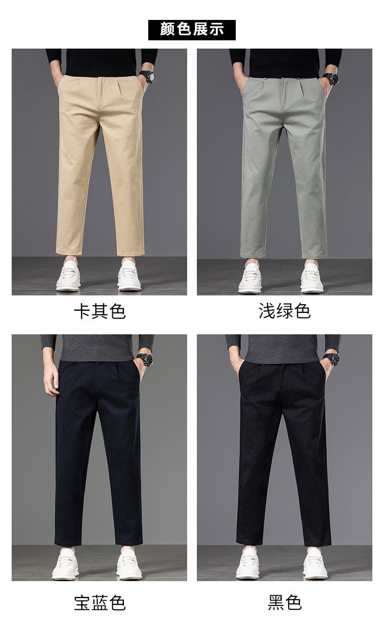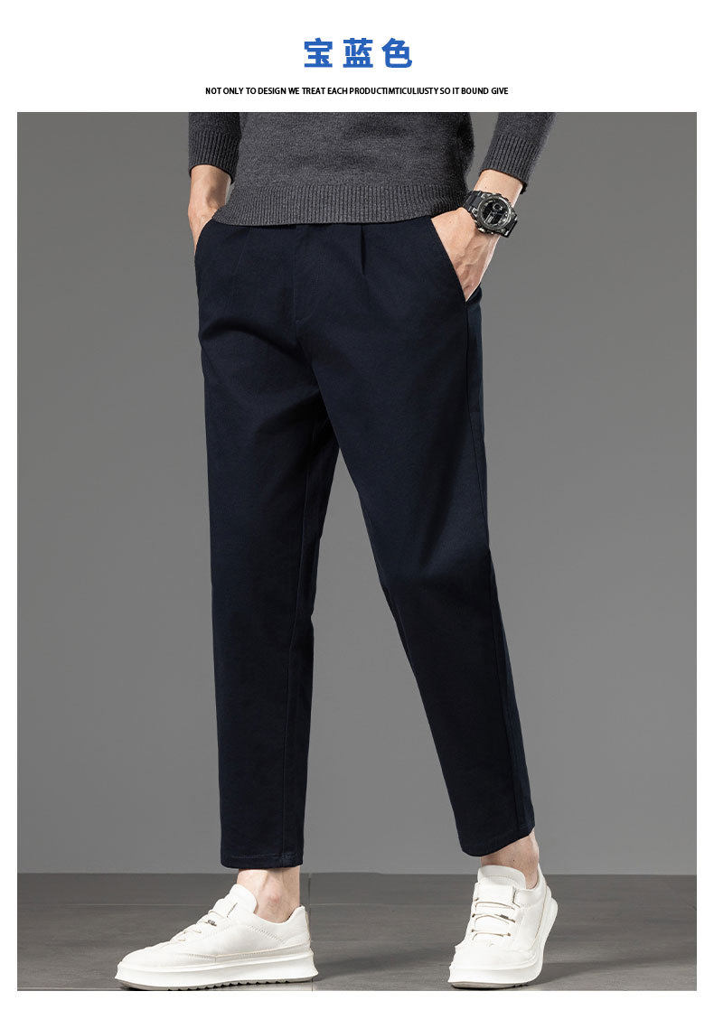 【DYG】大依优型大码男装春秋轻商务九分休闲裤修身纯色简约棉质休闲裤