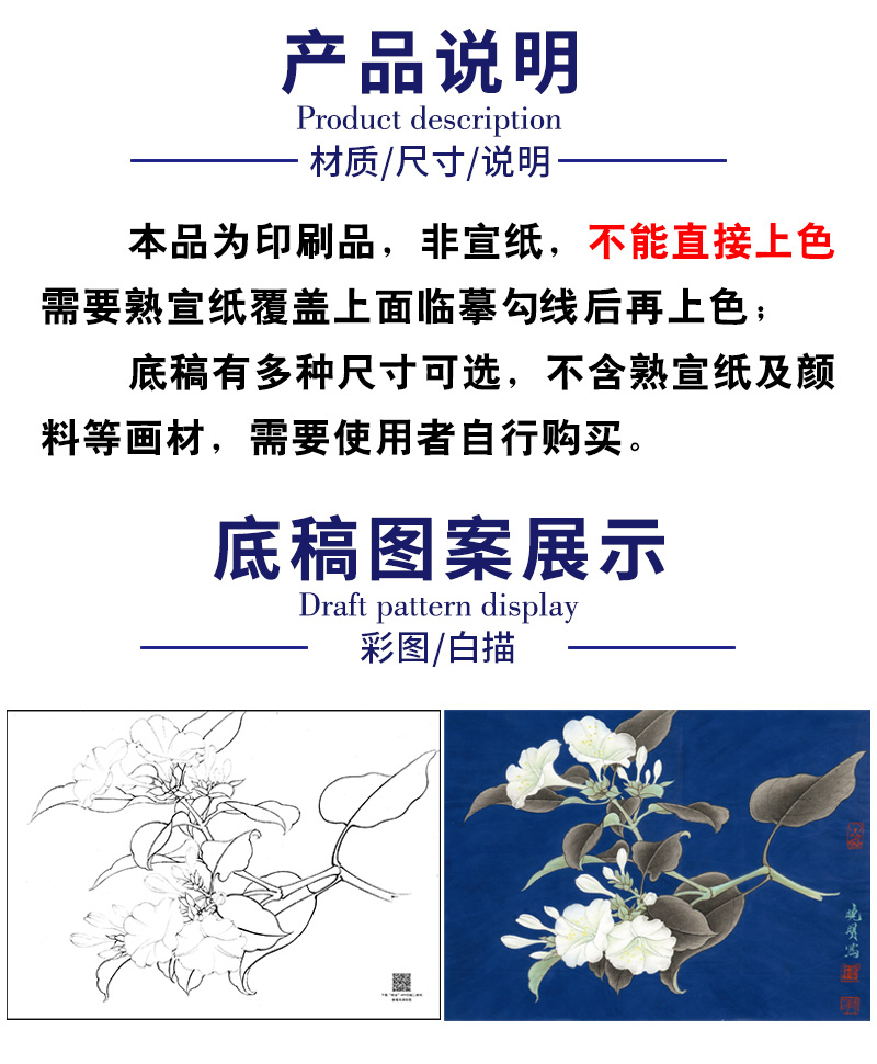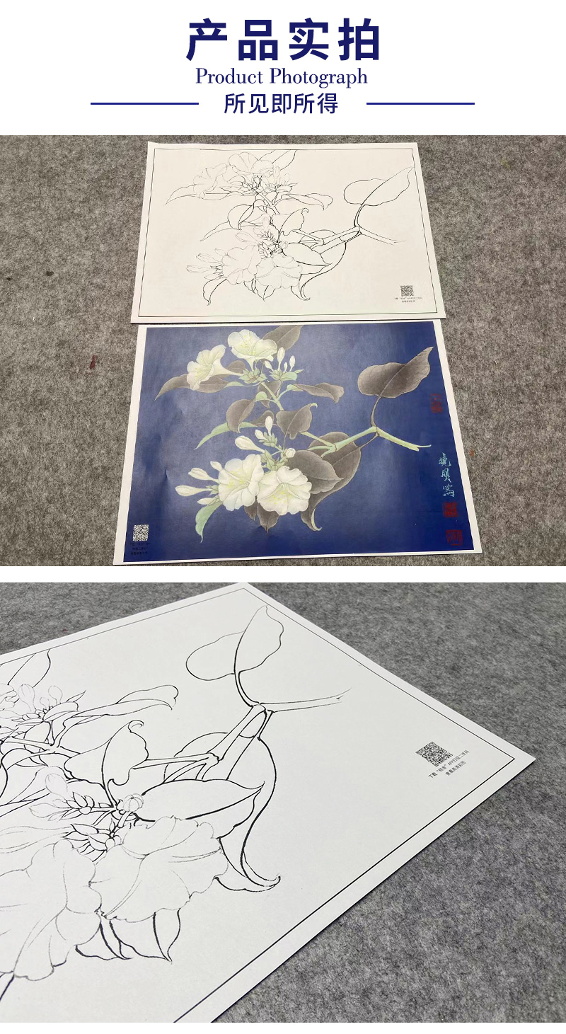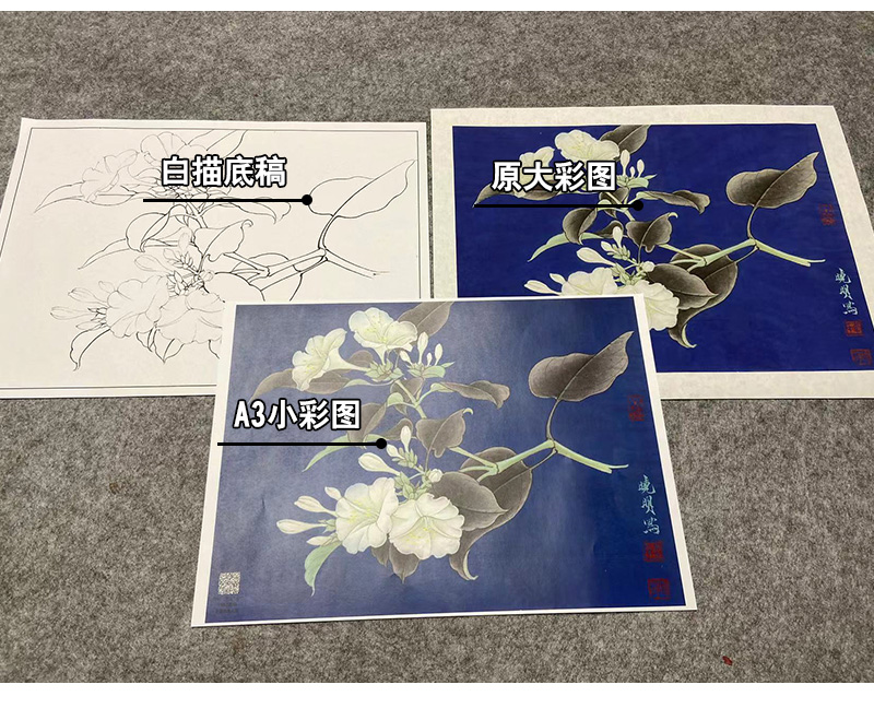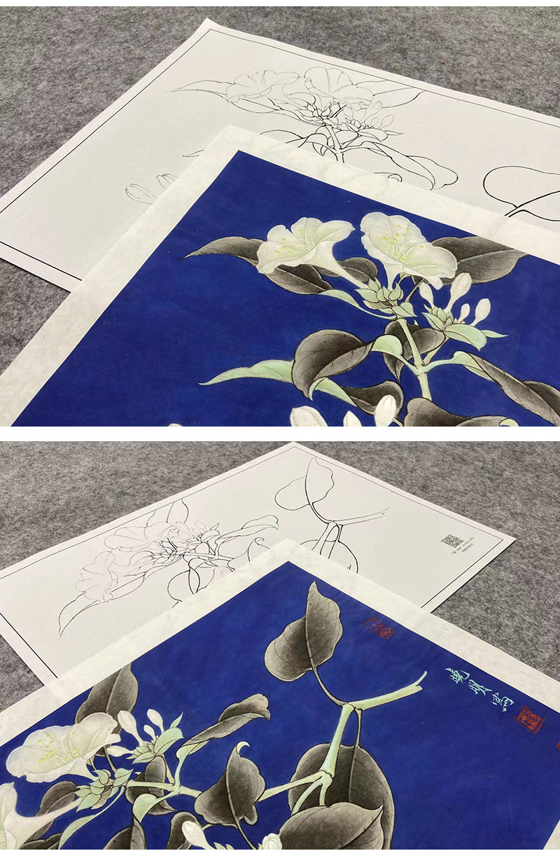 【大彩图】李晓明工笔画白描底稿小品《白茉莉》临摹勾线花鸟线稿K103