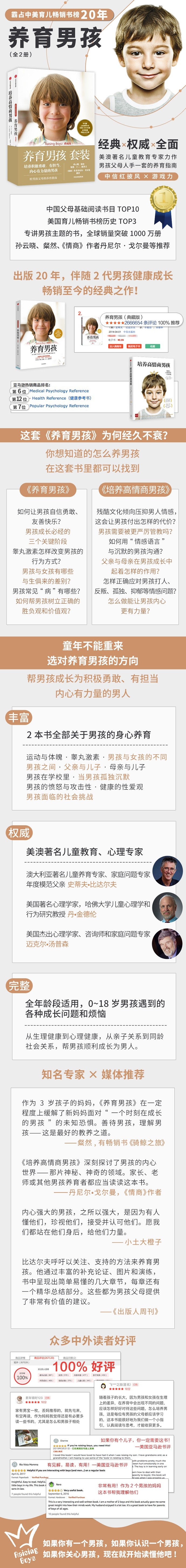 《养育男孩》一书已经成为享誉全球的育儿手册,它指导我们如何培养出一个强大温暖、全面发展的男孩。中文版上市后累计加印33次,销量突破100万册,被万千中国妈妈奉为“养育男孩的启蒙之书和养育指南!”