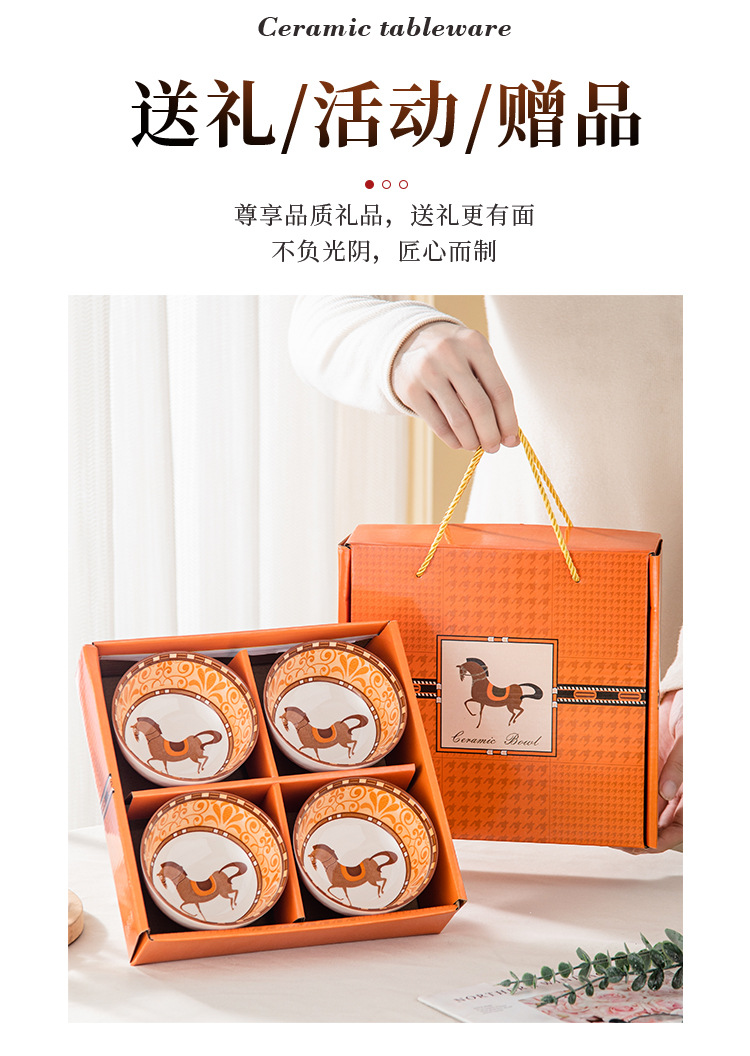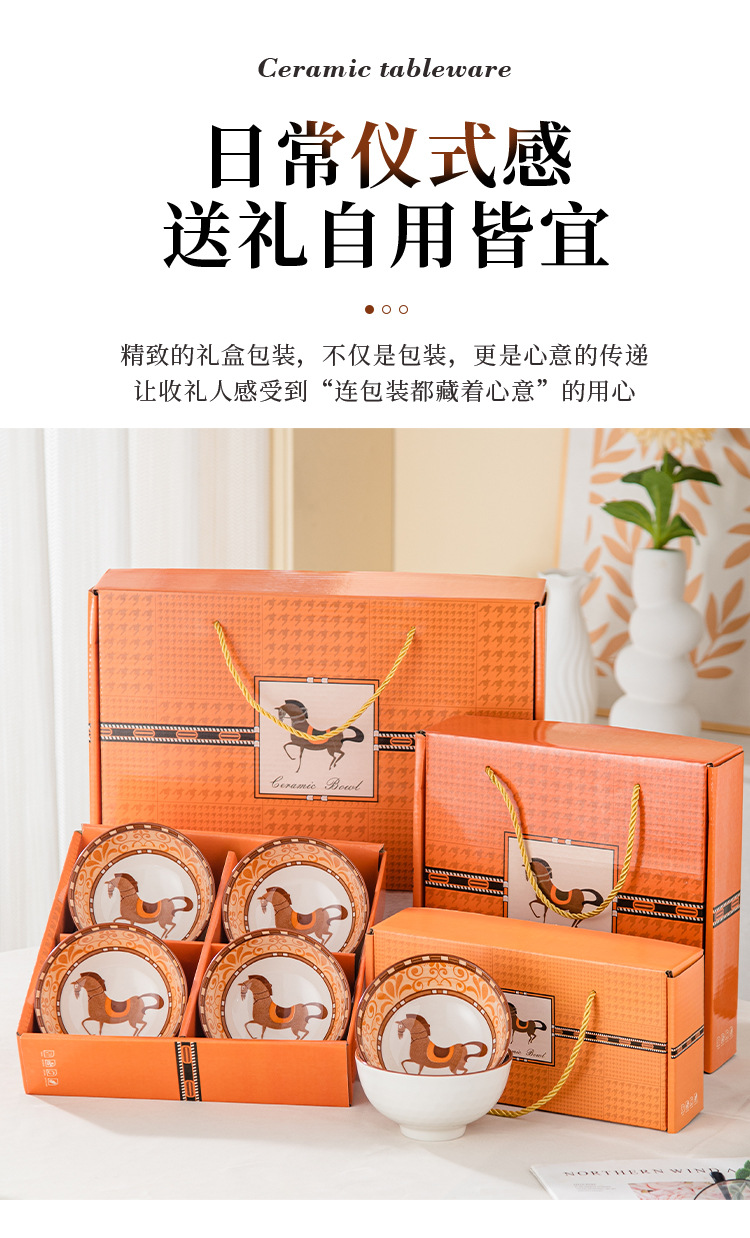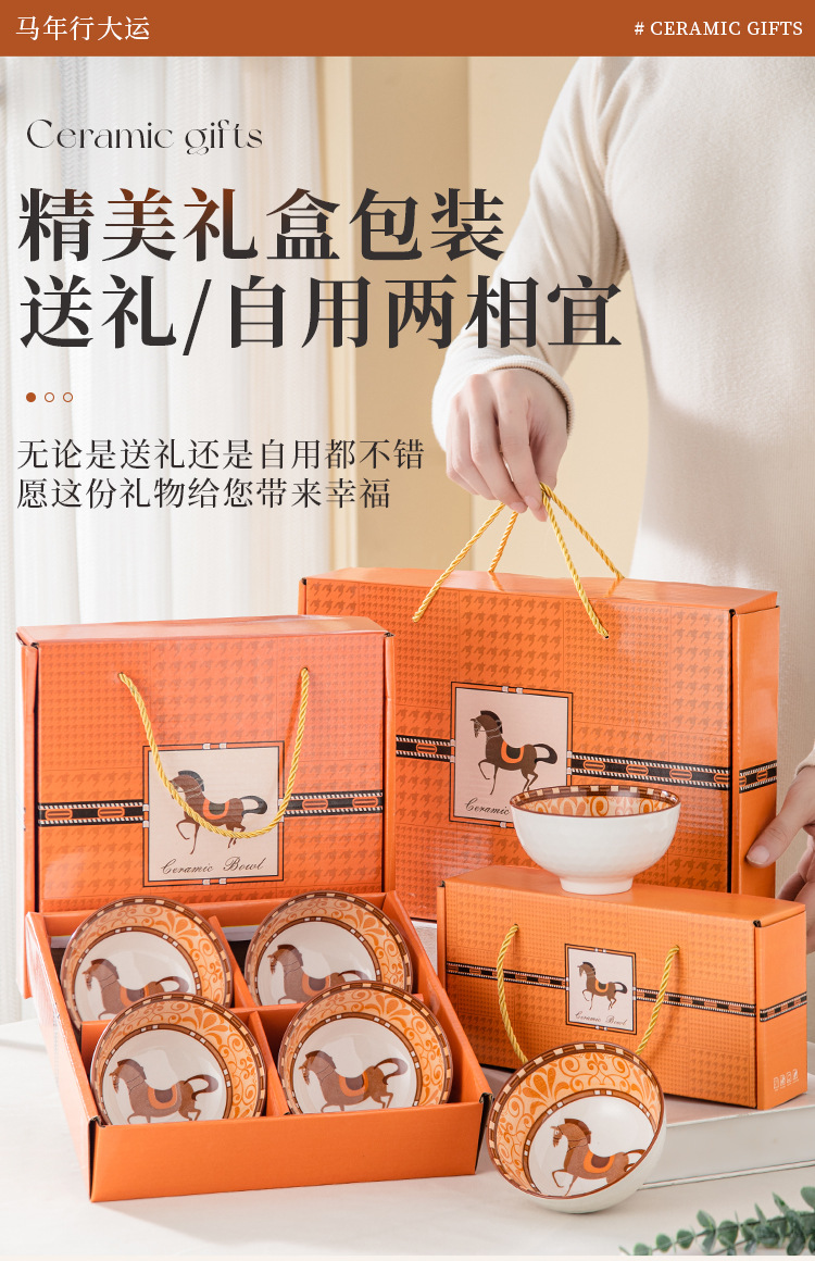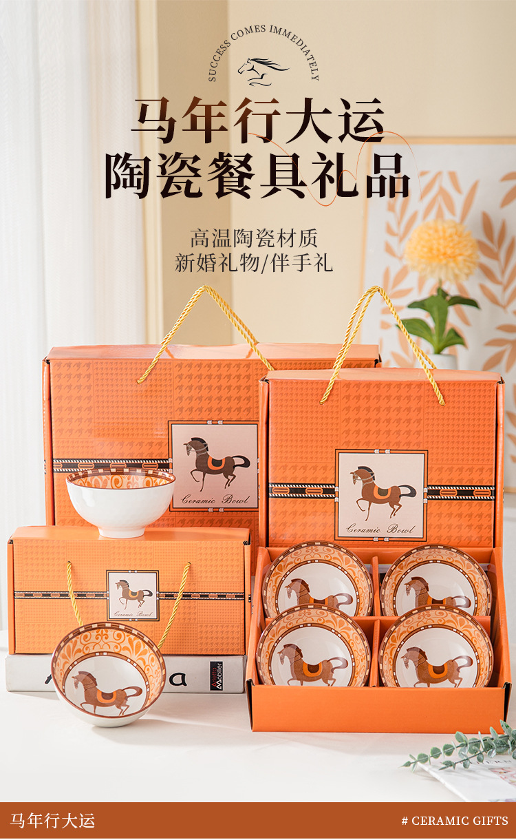 马年行大运【爱马橙 陶瓷餐具礼盒】爱马橙陶瓷餐具 开业活动会展礼品碗筷 伴手礼品碗套装餐具 马年餐具礼盒