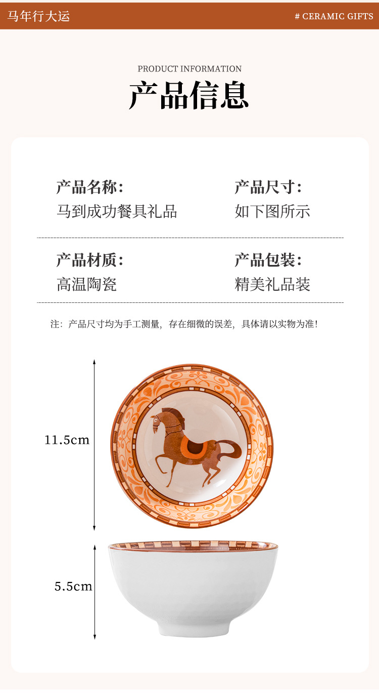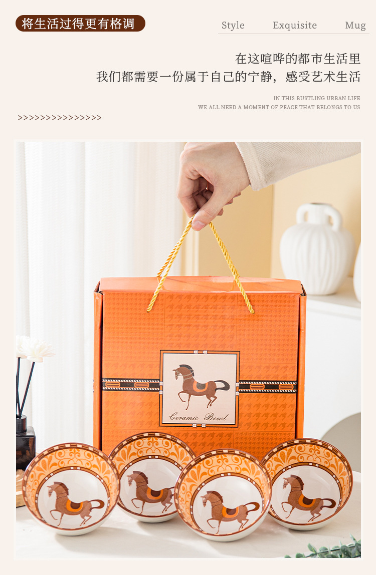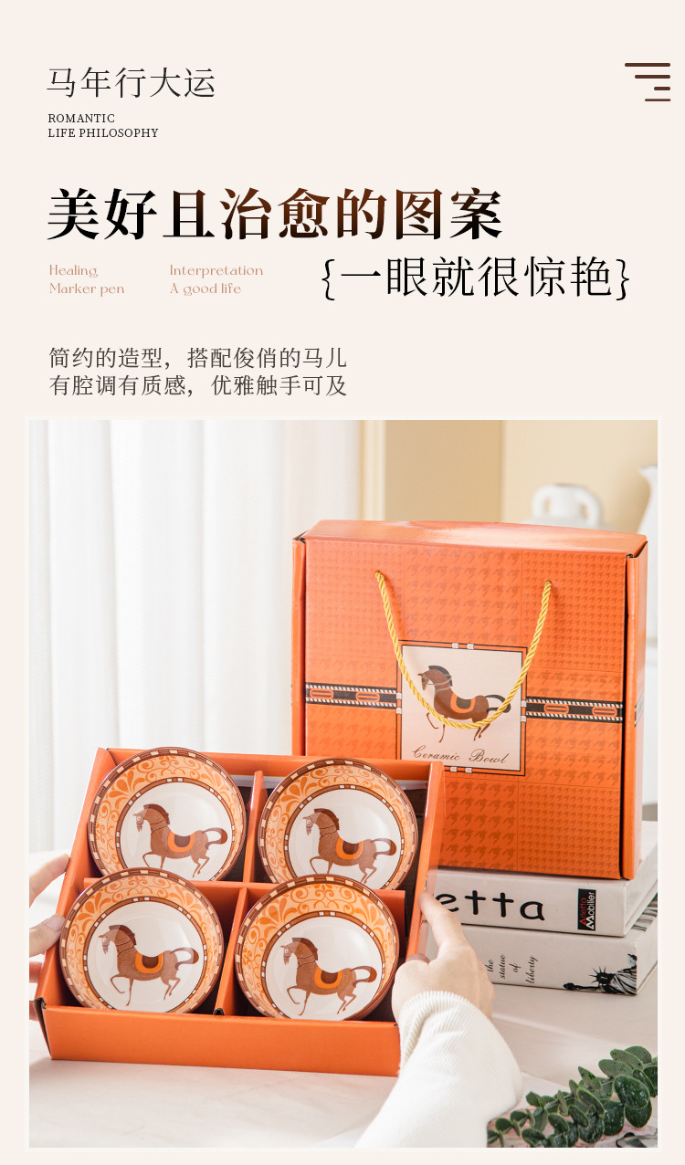 马年行大运【爱马橙 陶瓷餐具礼盒】爱马橙陶瓷餐具 开业活动会展礼品碗筷 伴手礼品碗套装餐具 马年餐具礼盒