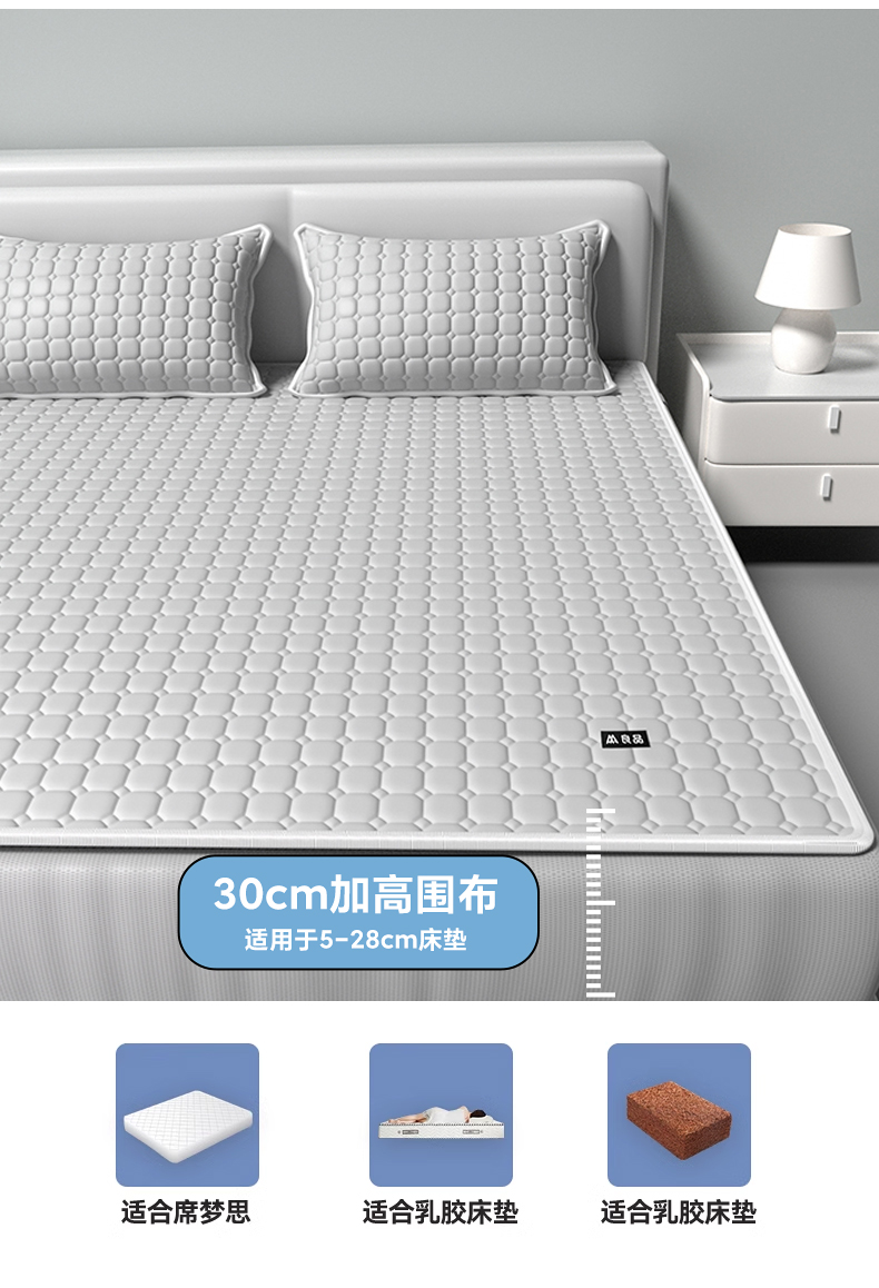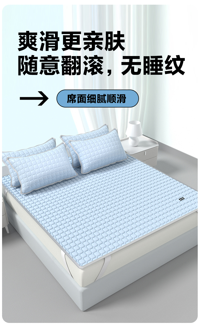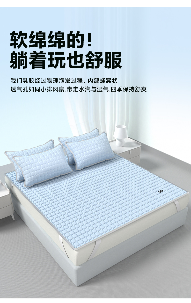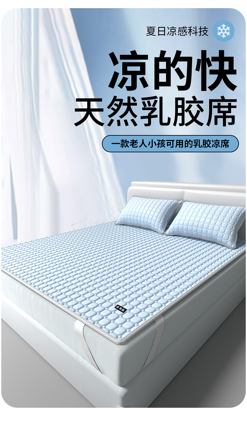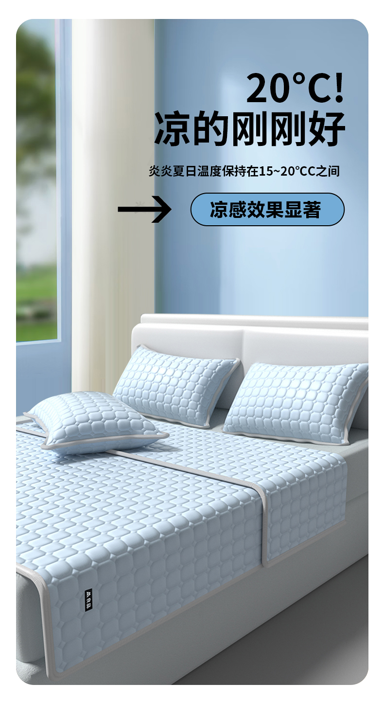 【降温黑科技】 無印良品 冰砖垫冰丝乳胶凉席三件套 A类母婴级 凉感效果显著 裸睡不留痕 舒适透气 水洗不变形