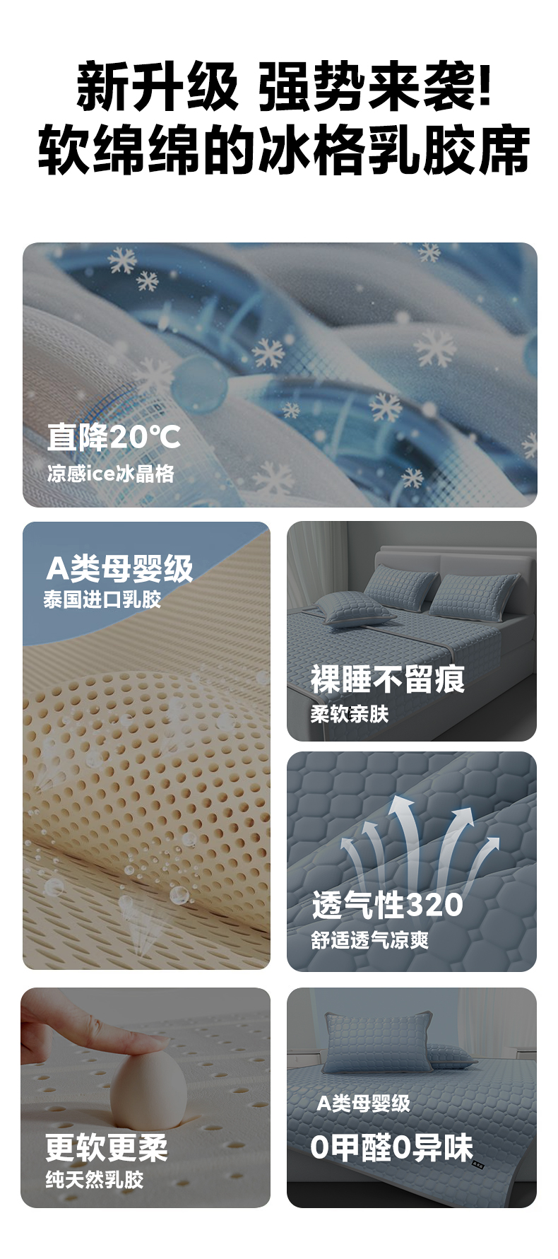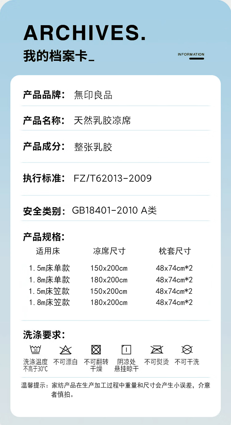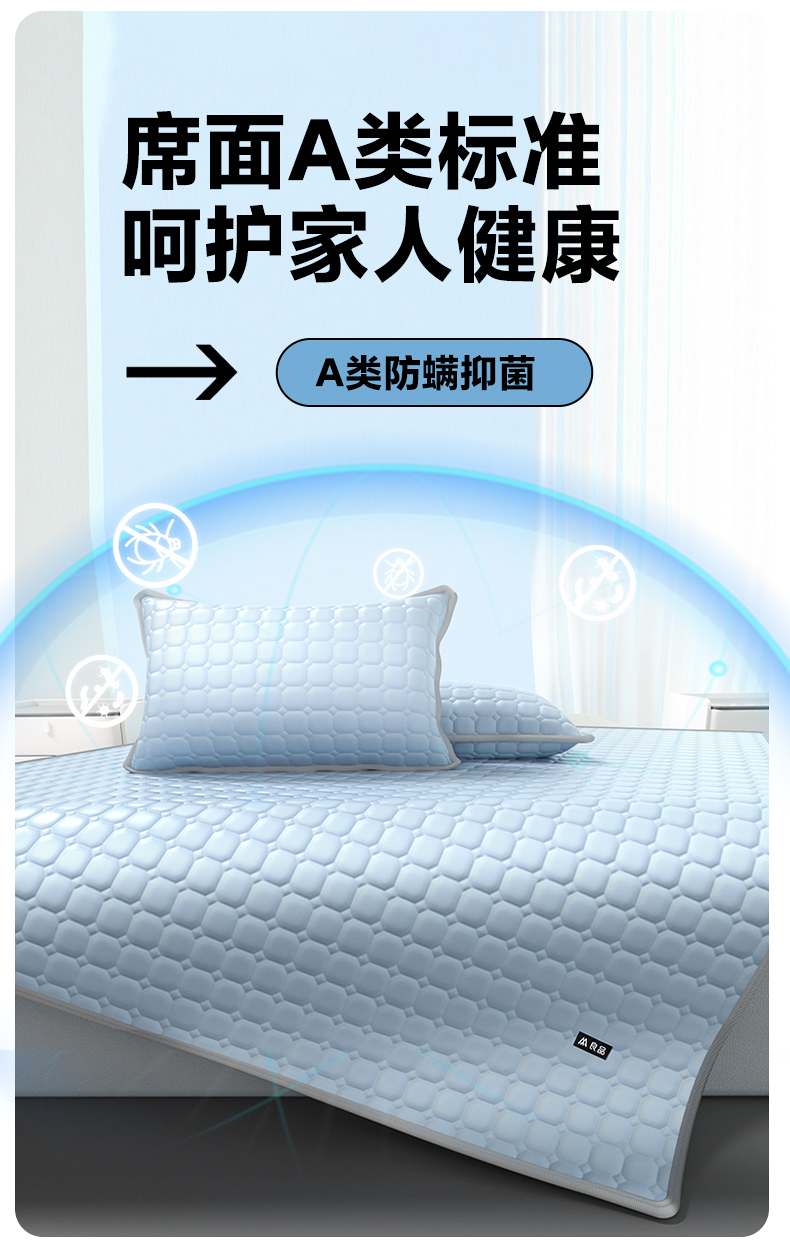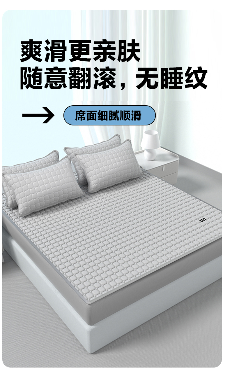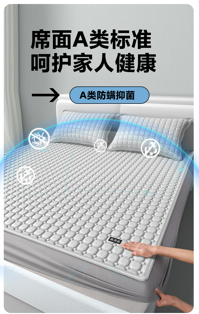 【降温黑科技】 無印良品 冰砖垫冰丝乳胶凉席三件套 A类母婴级 凉感效果显著 裸睡不留痕 舒适透气 水洗不变形