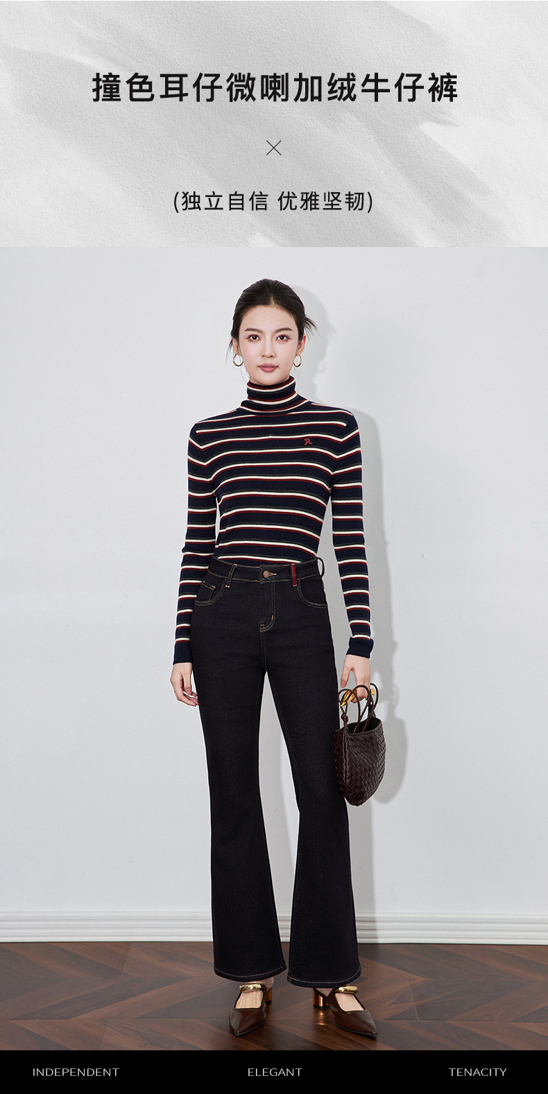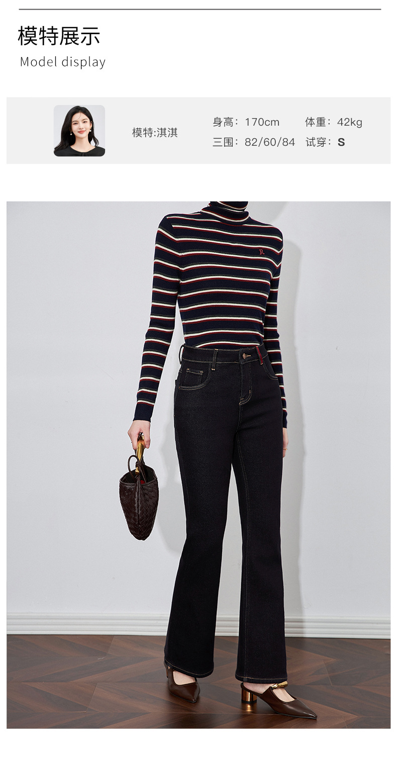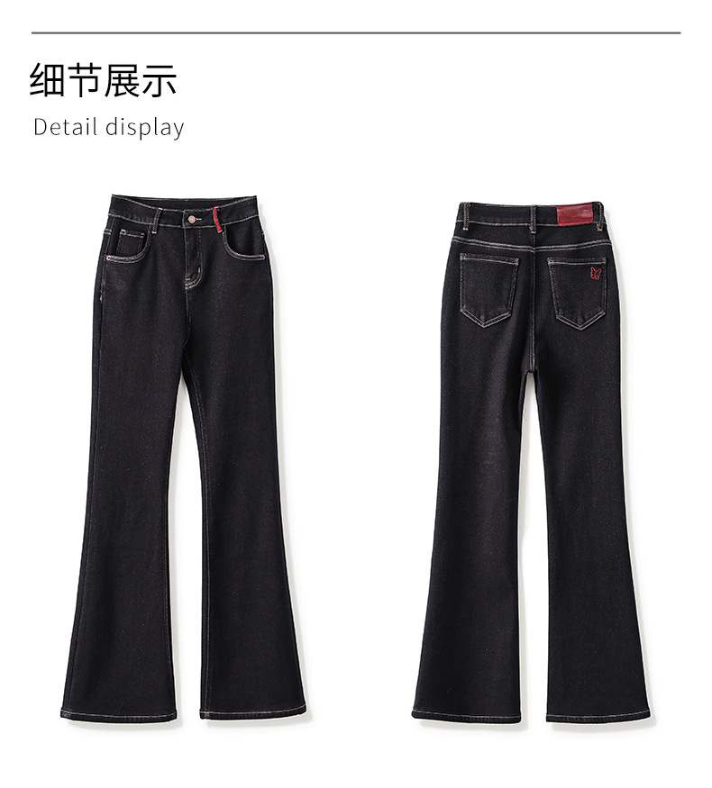 【高货wl】全新升级【铂金会员220/天猫299/差价79】(13401) 洛诗琳加绒微弹高腰设计简约复古休闲修身微喇牛仔裤女