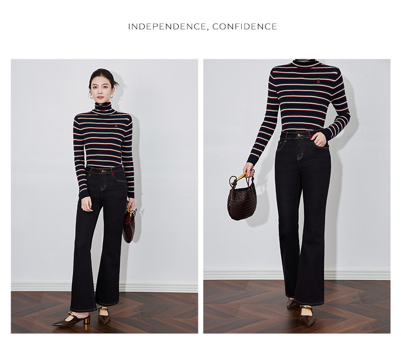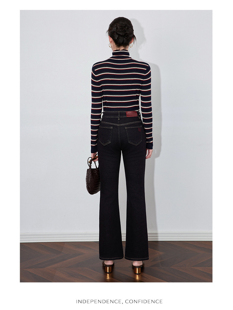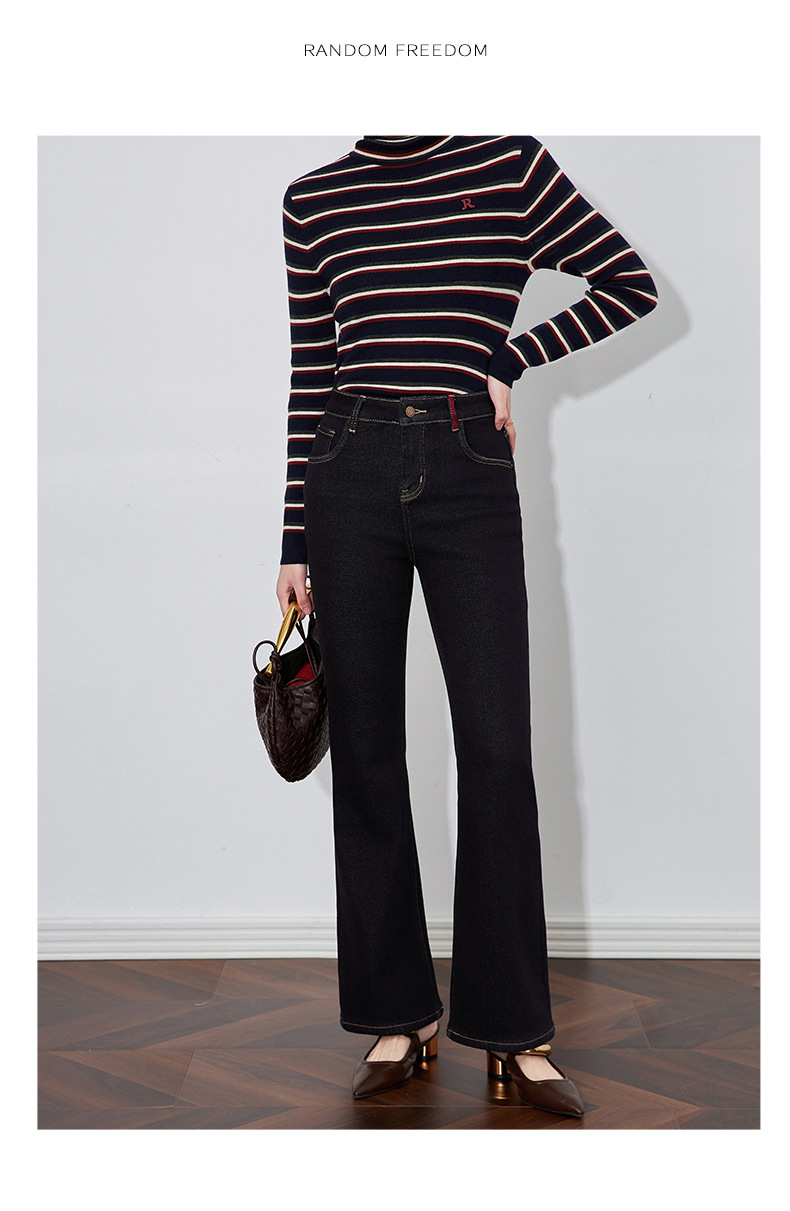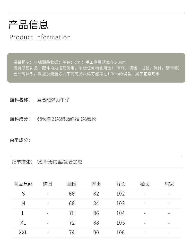【高货wl】全新升级【铂金会员220/天猫299/差价79】(13401) 洛诗琳加绒微弹高腰设计简约复古休闲修身微喇牛仔裤女