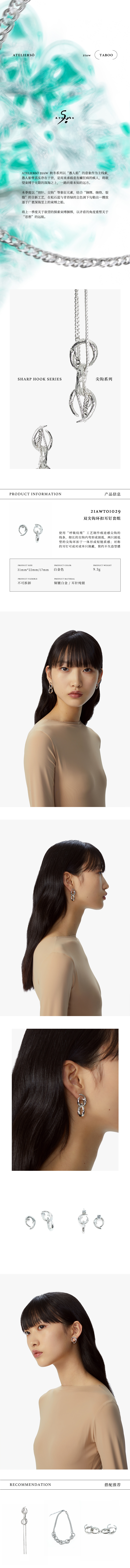 21AW TABOO|愚人船  尖钩系列 - 双钩环扣耳钉套组 商品图3