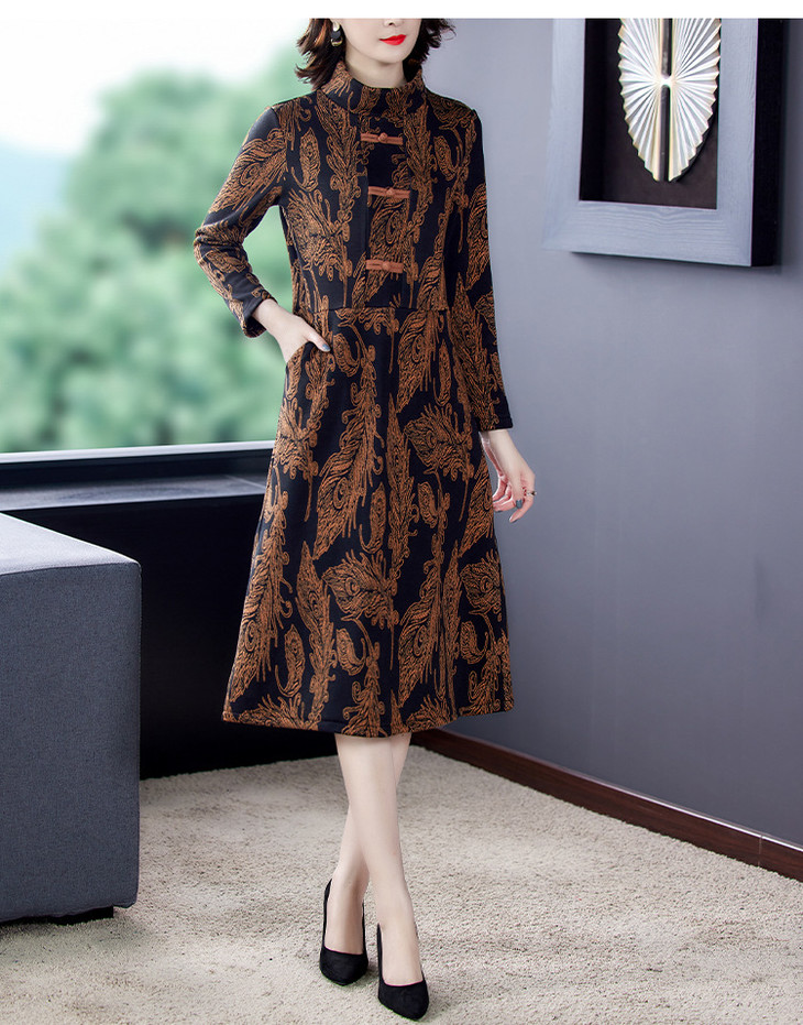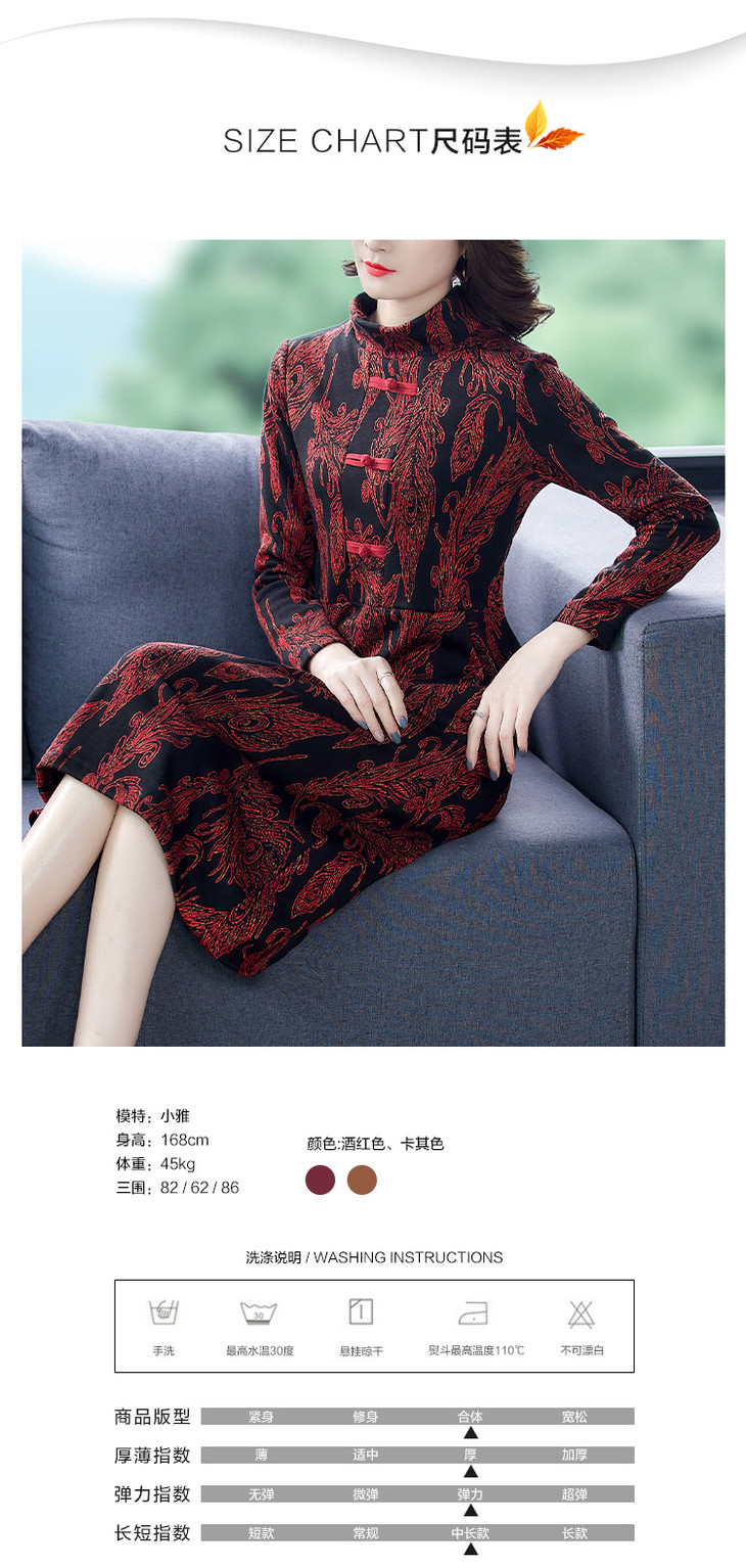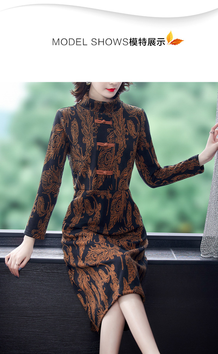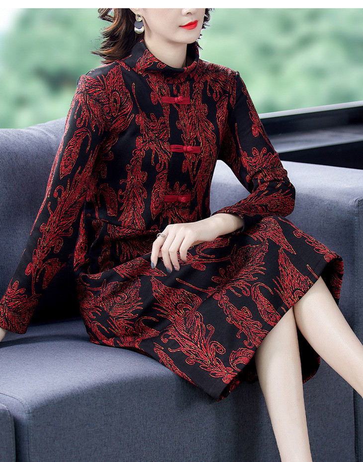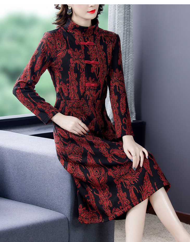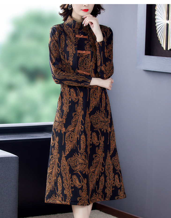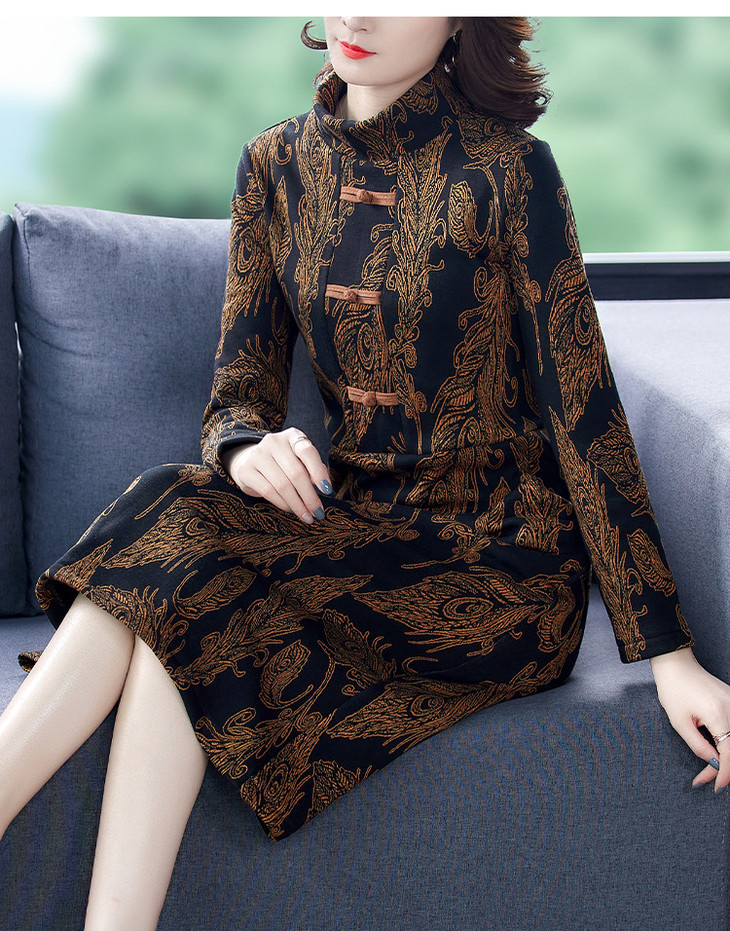 AHM-wdx9521秋冬新款中国风盘扣大码加绒加厚改良旗袍裙