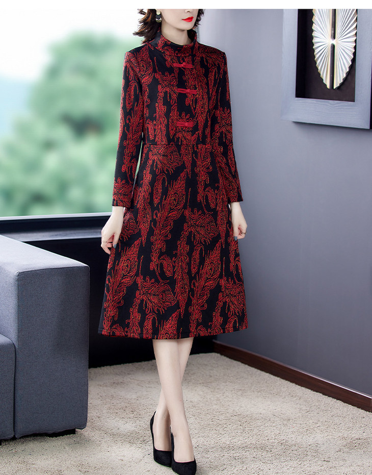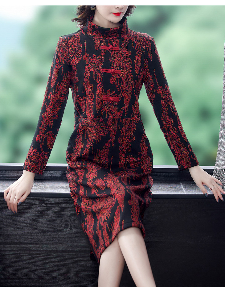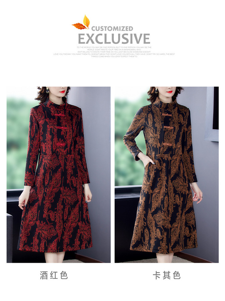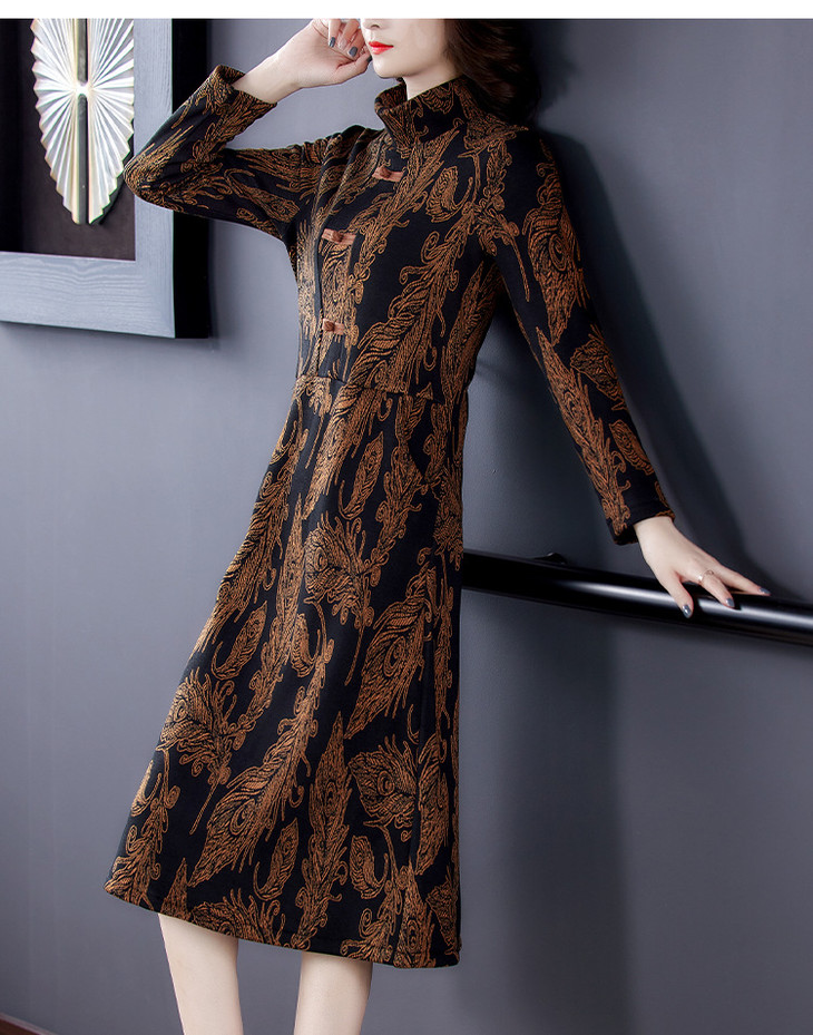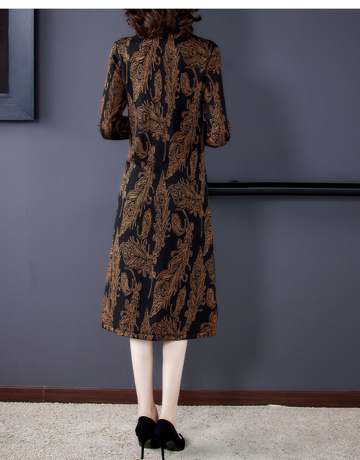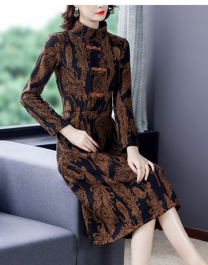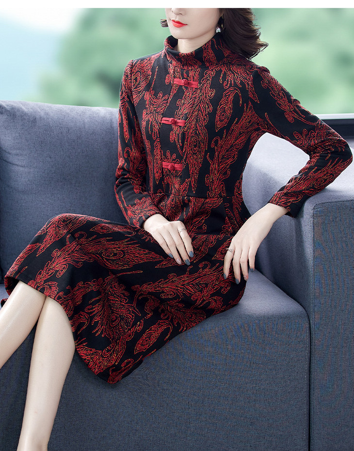 AHM-wdx9521秋冬新款中国风盘扣大码加绒加厚改良旗袍裙