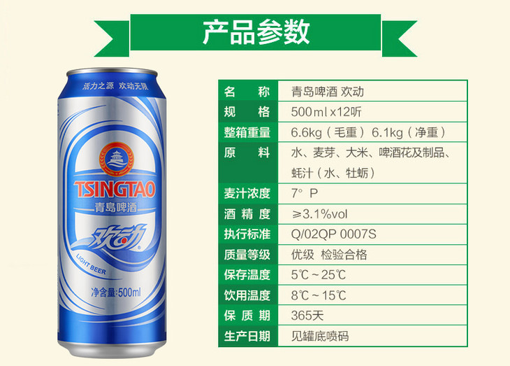 青岛啤酒欢动7度500*12听/箱 商品图4