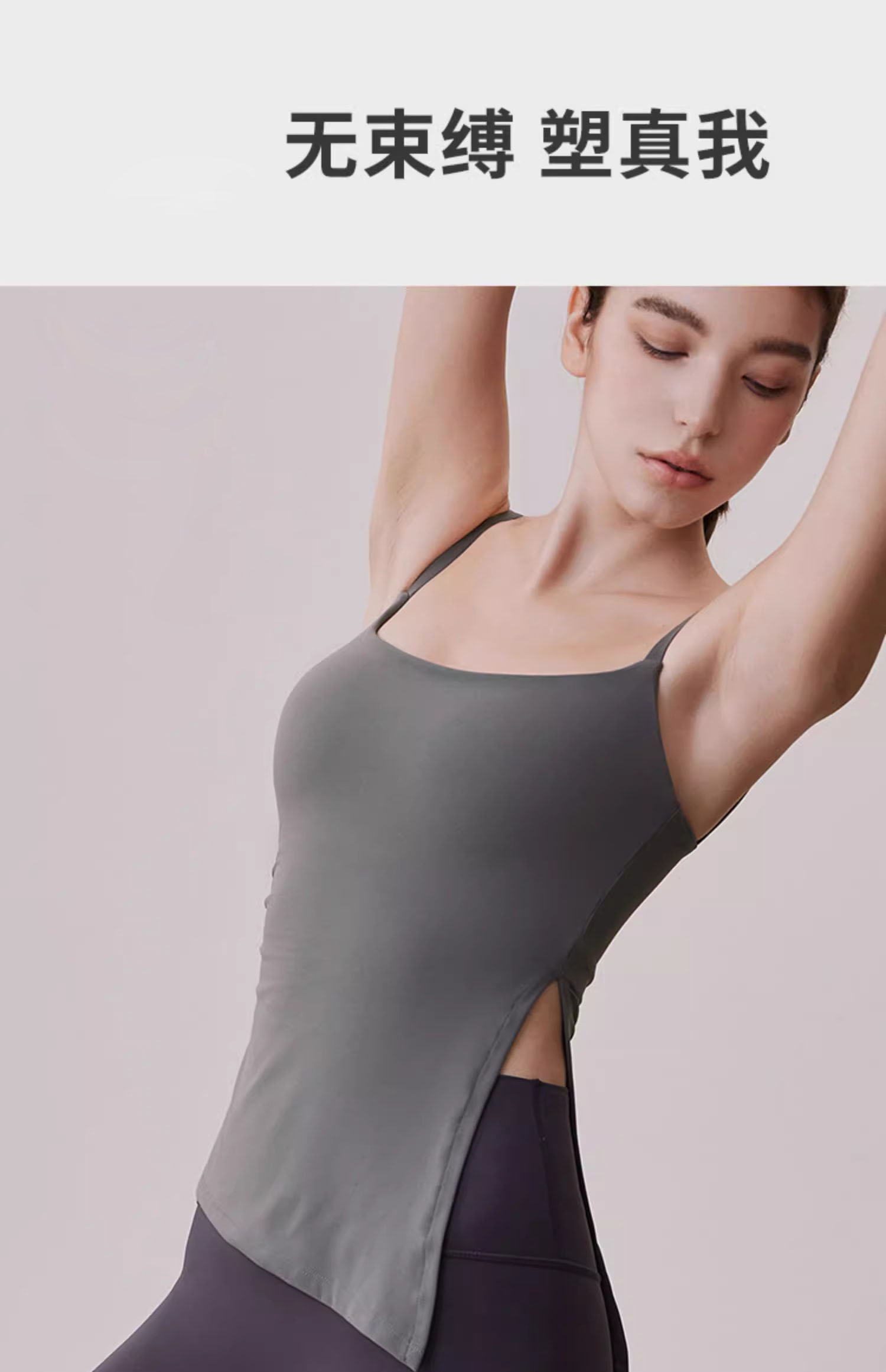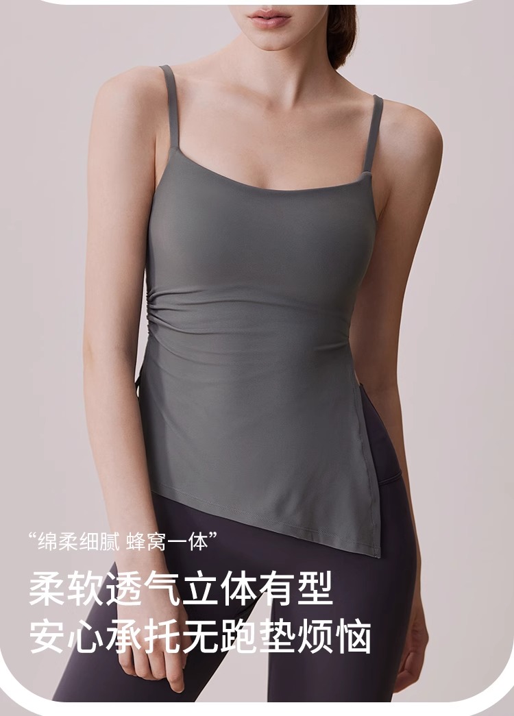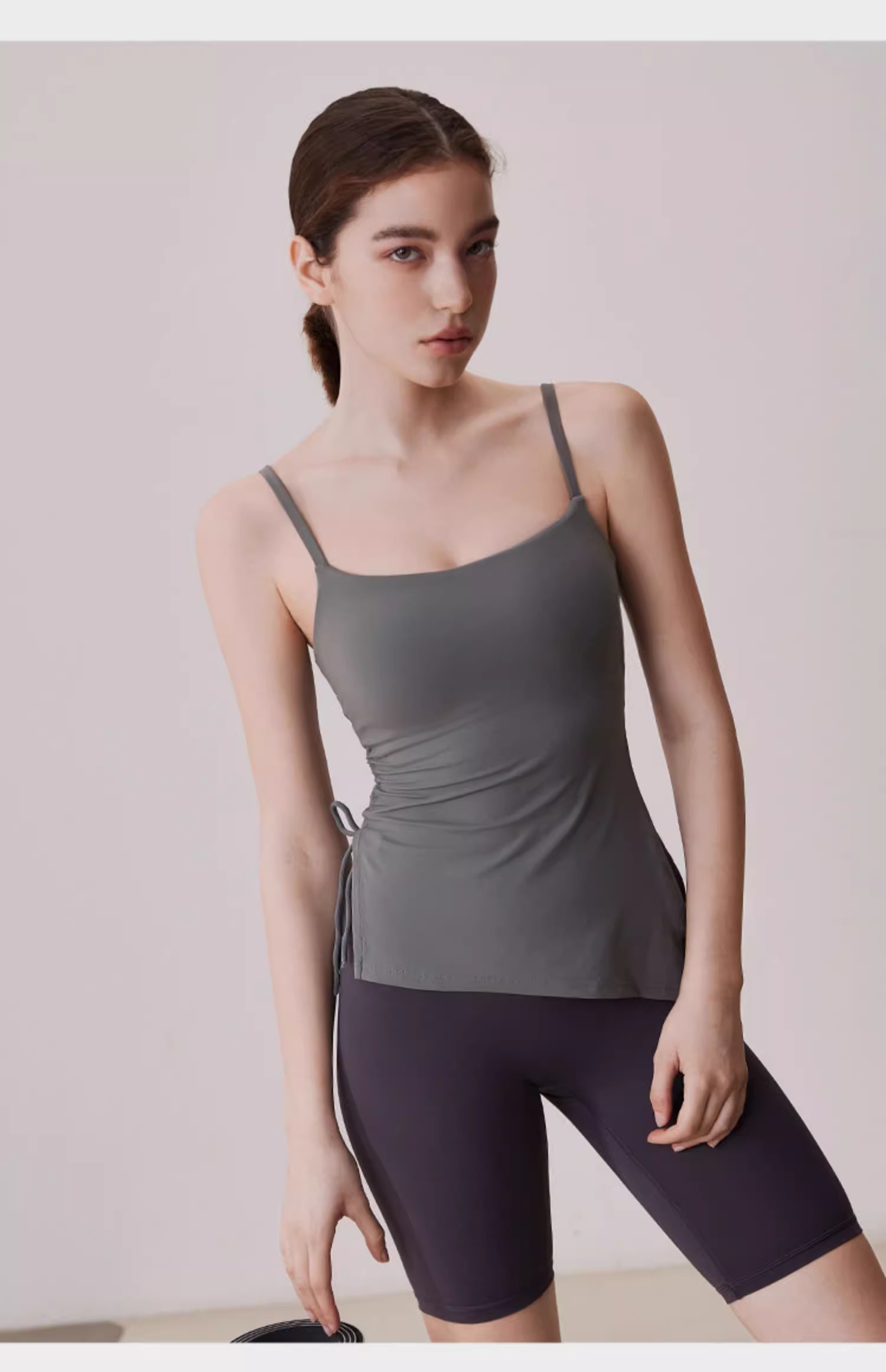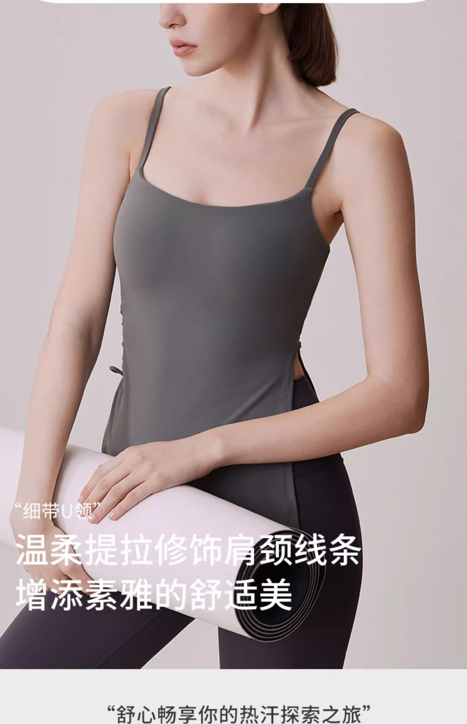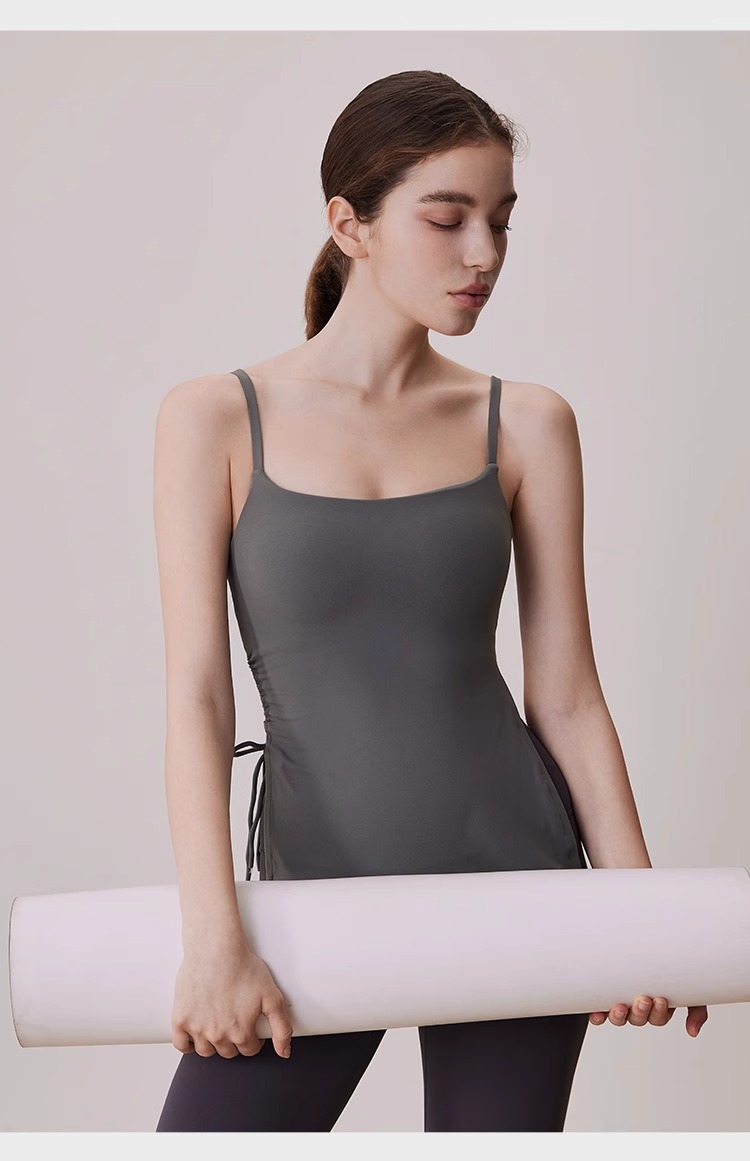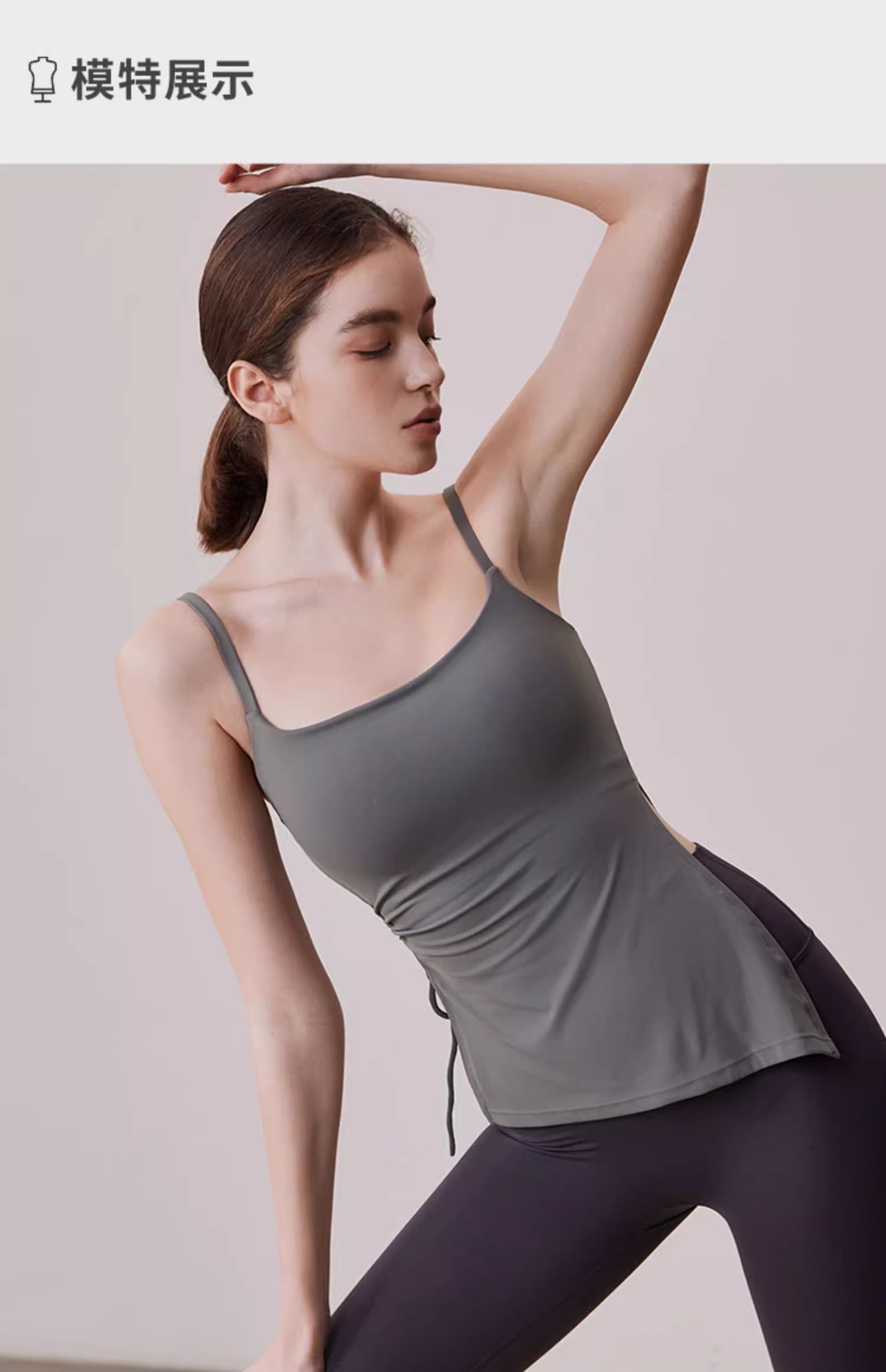 跃牌【海听系列】裸感抽绳打褶瑜伽服女固定胸垫吊带运动背心夏MZ71