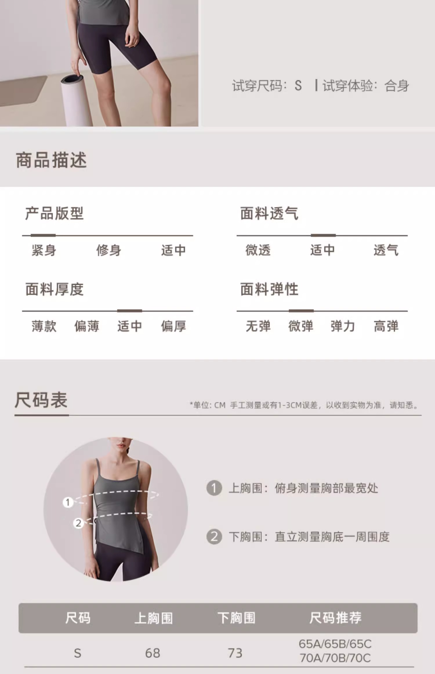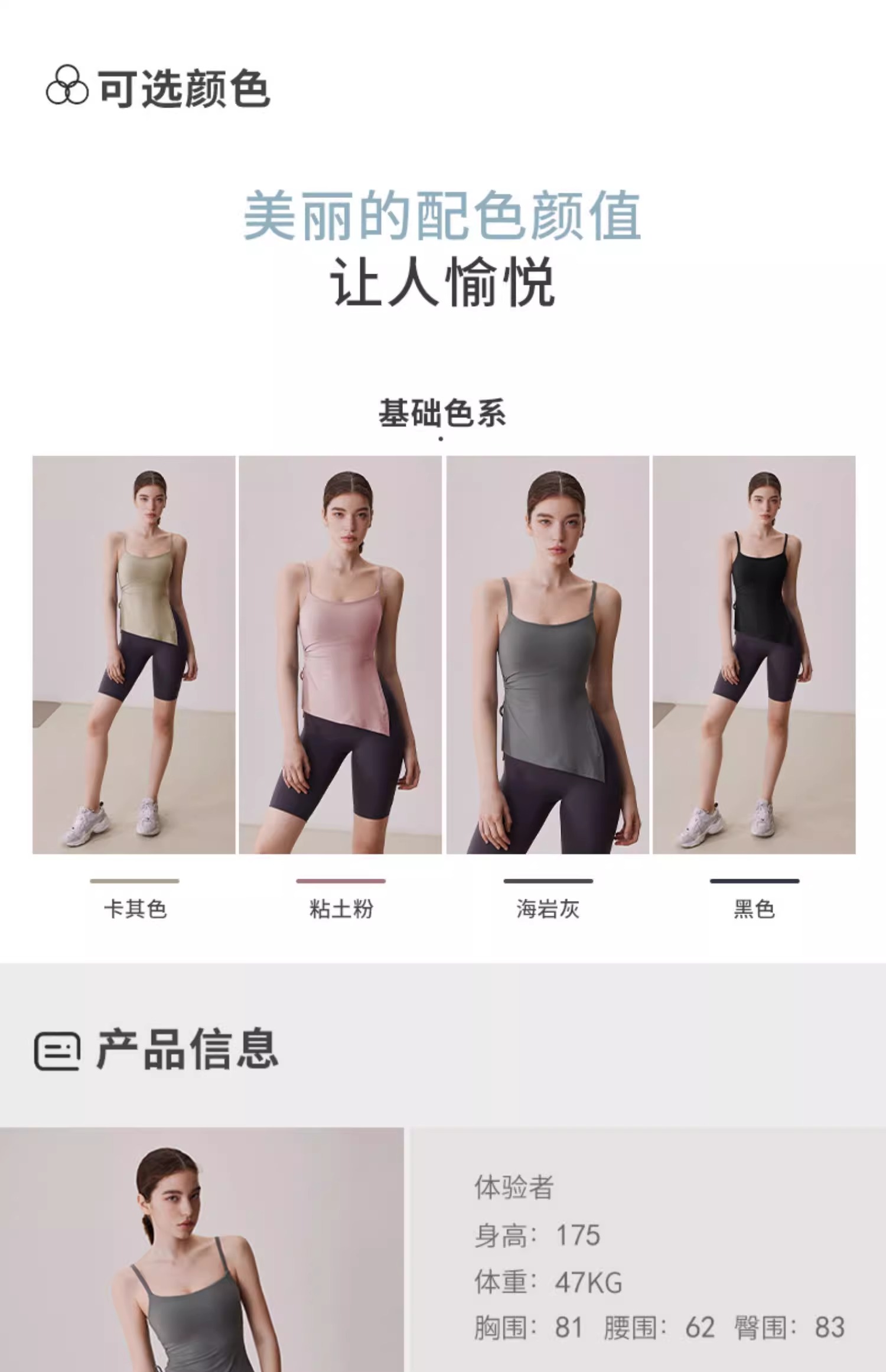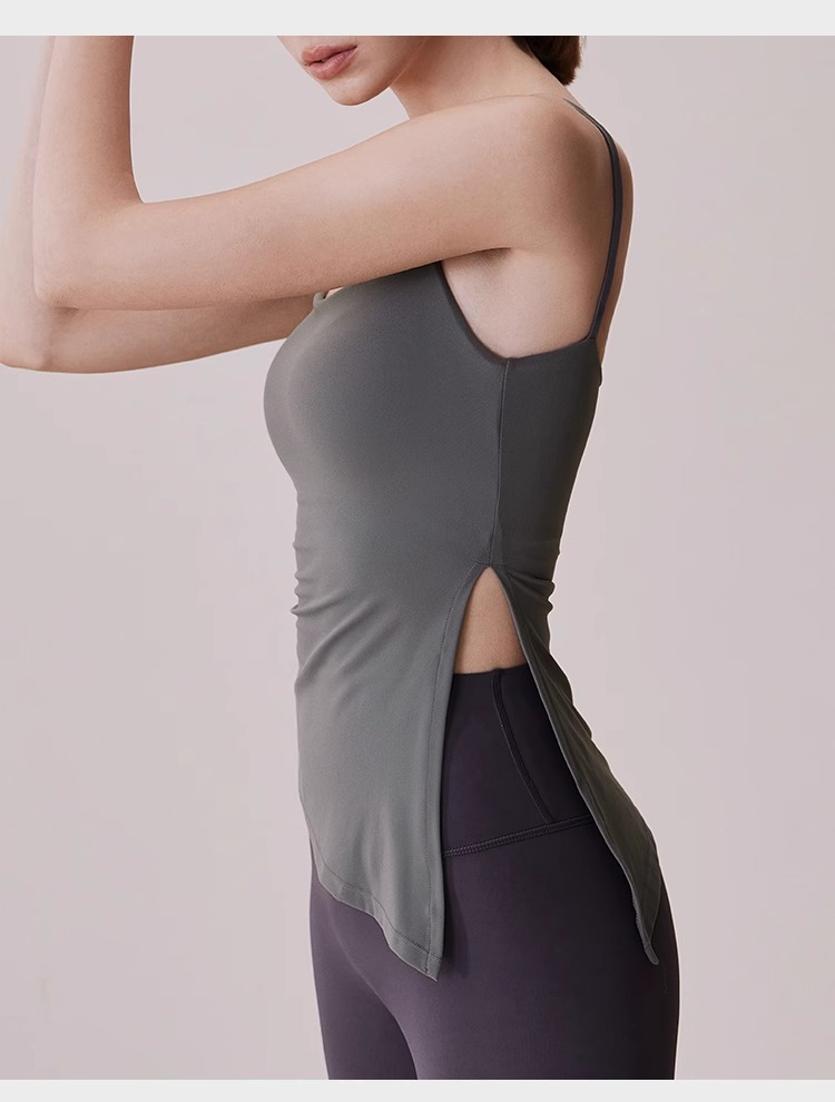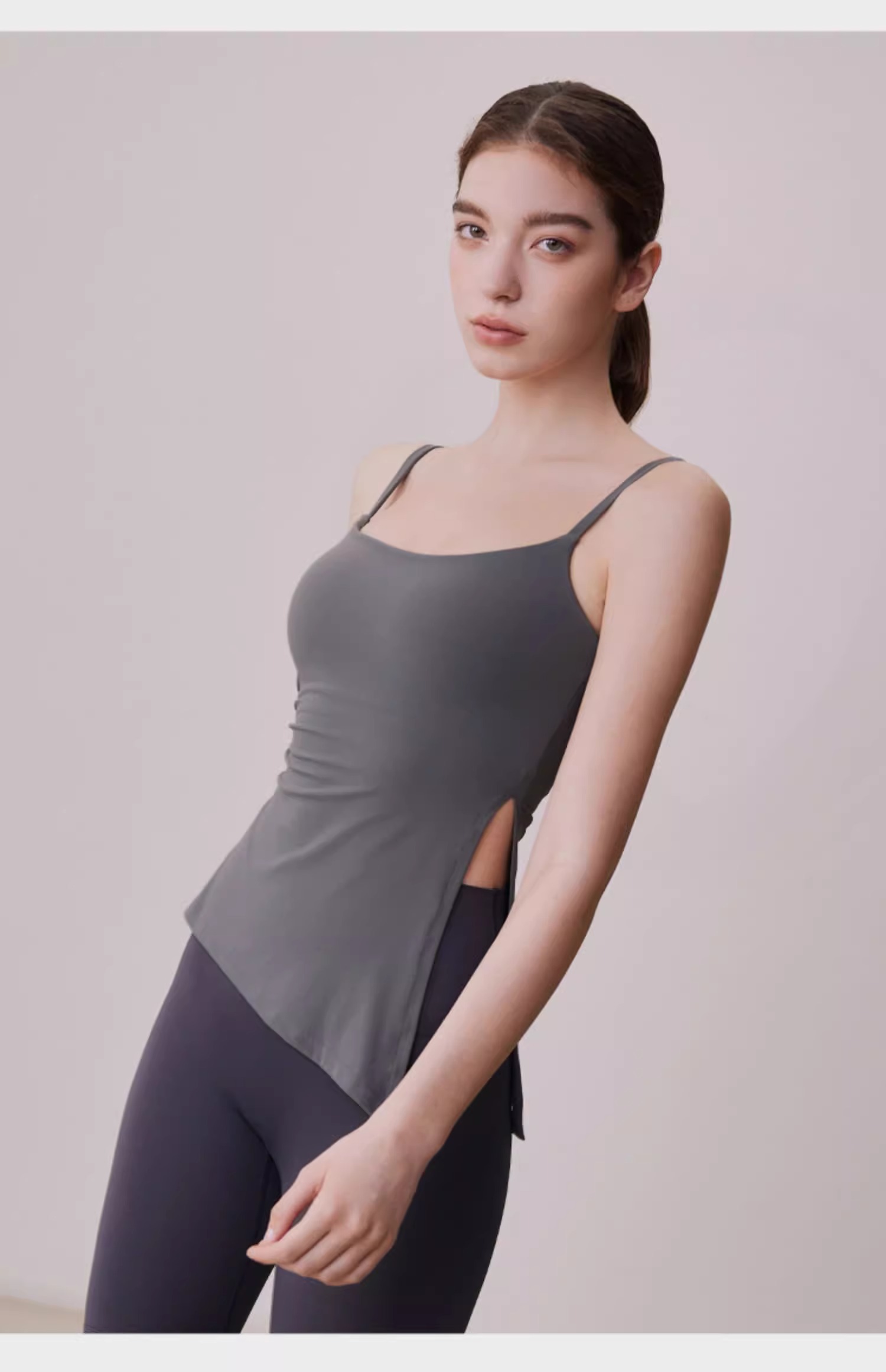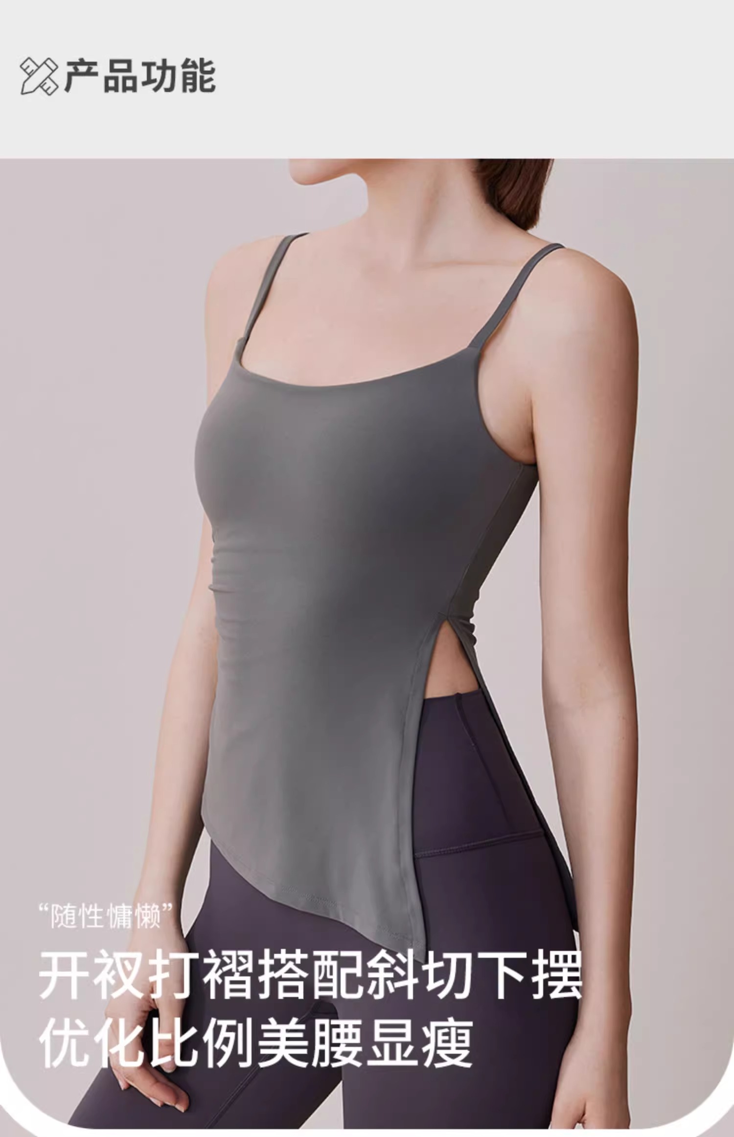 跃牌【海听系列】裸感抽绳打褶瑜伽服女固定胸垫吊带运动背心夏MZ71