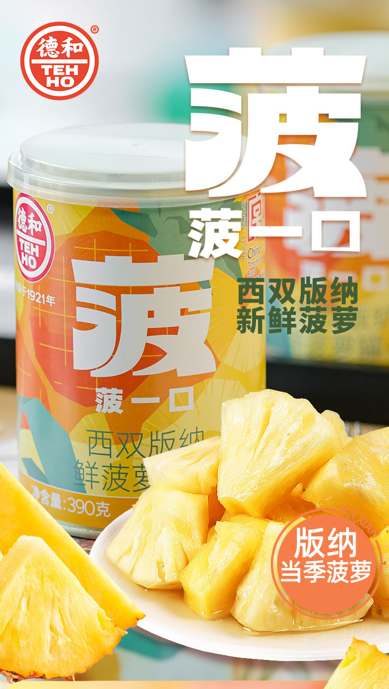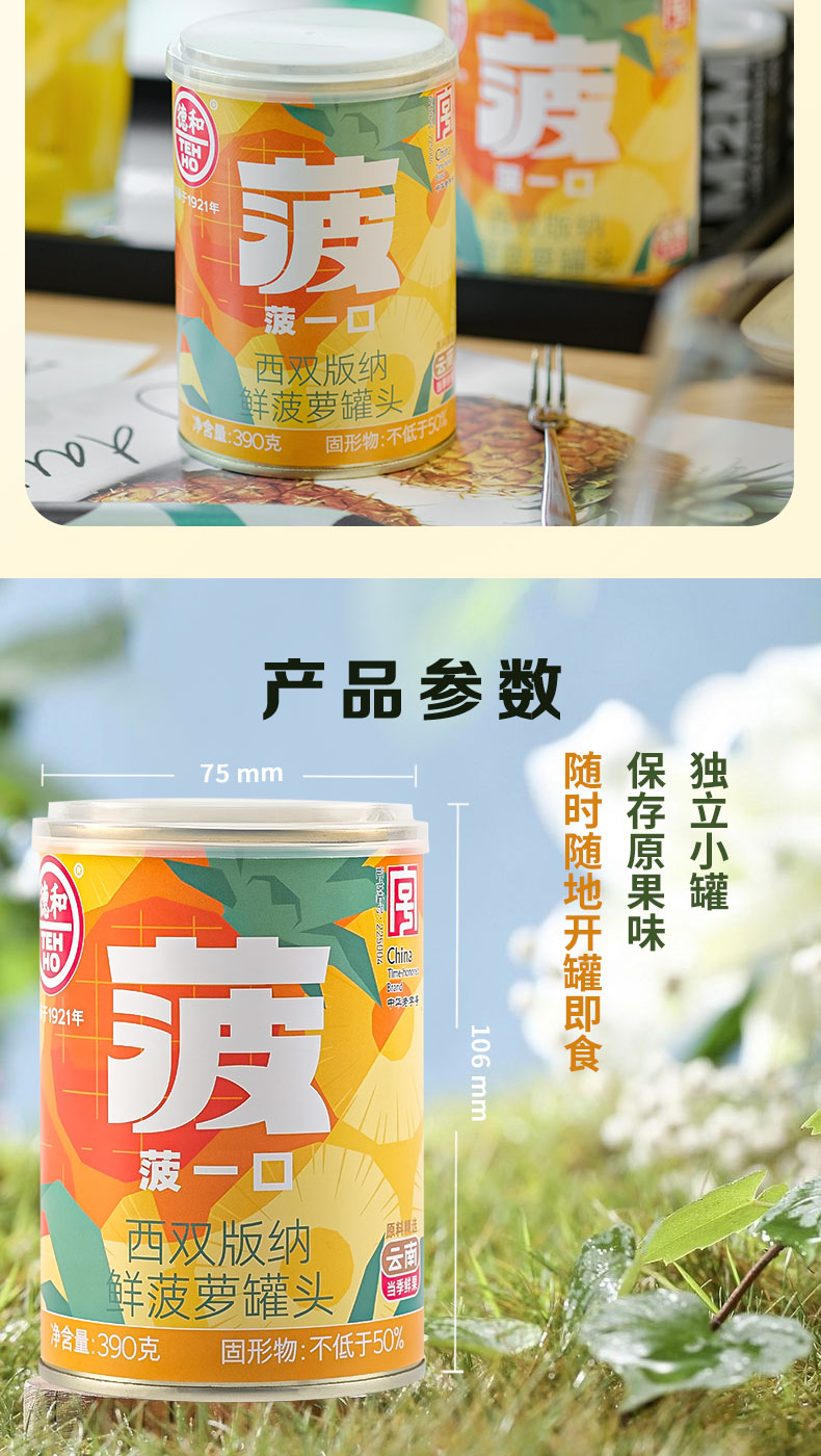390g菠菠一口西双版纳鲜菠萝罐头罐2罐