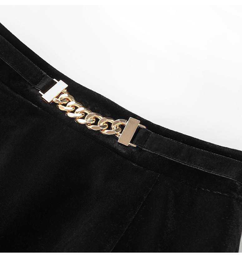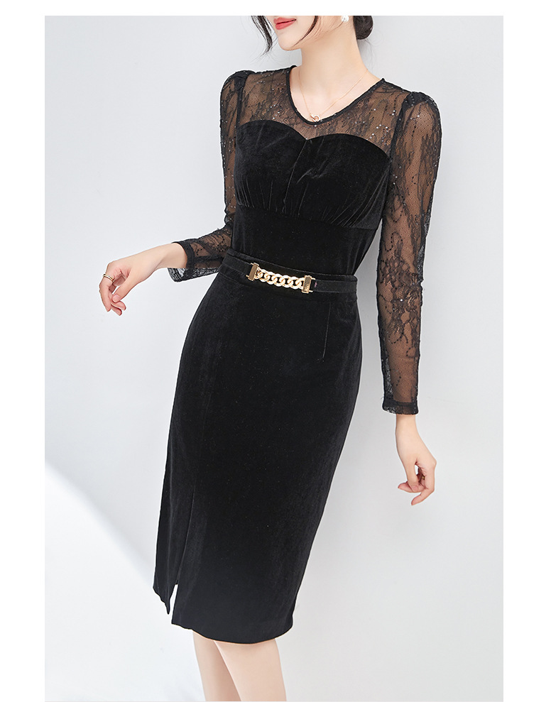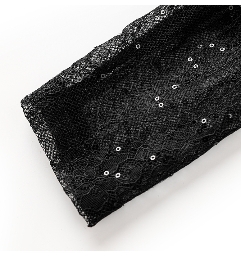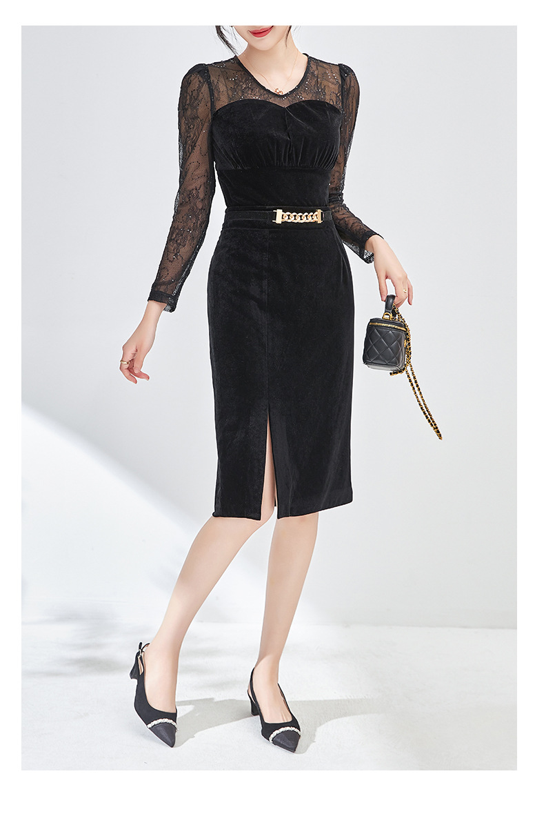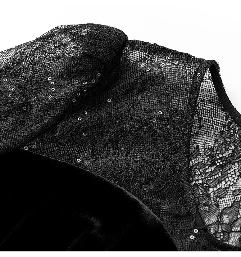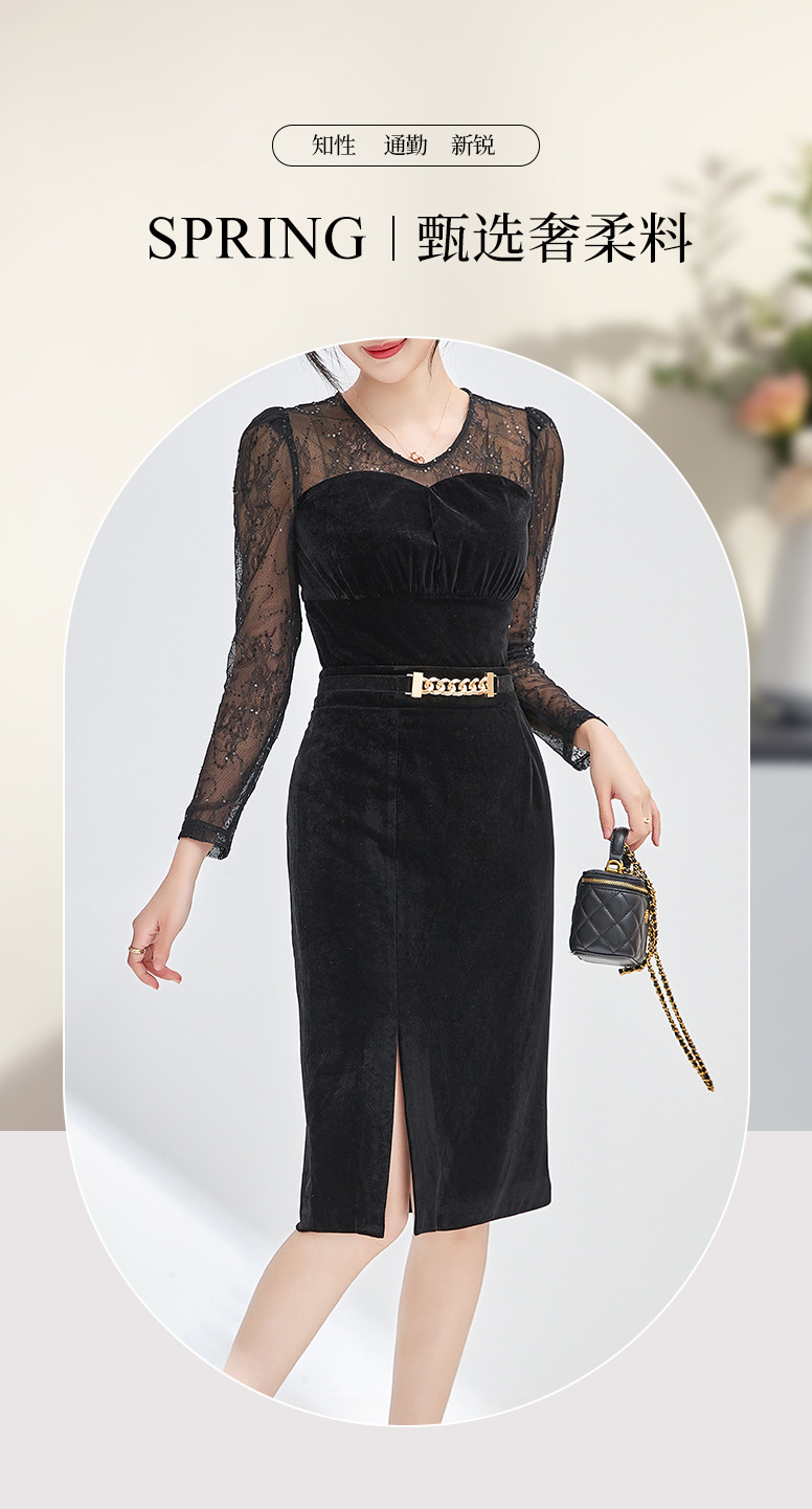 法式显瘦,丝绒拼亮片蕾丝上衣+高腰开叉半身裙两件套WLZD-2405110