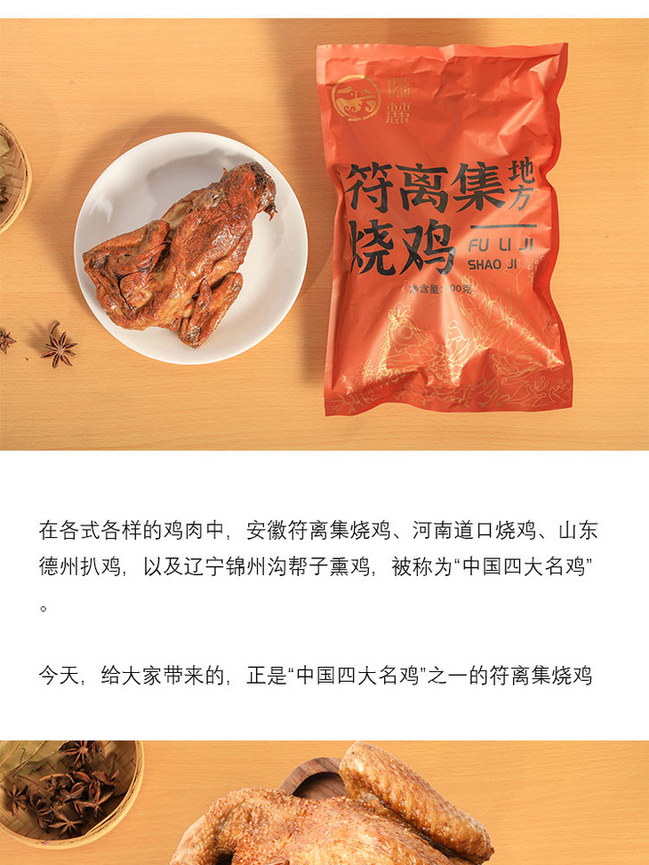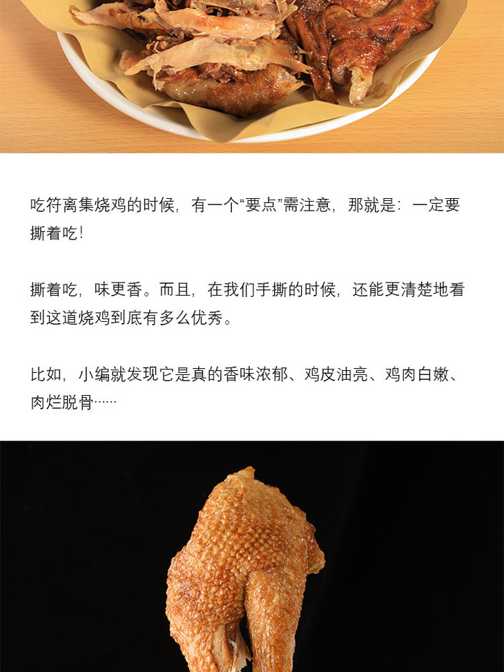 【肉食良品】安徽徽簏符离集烧鸡 中华历史名肴 中国四大名鸡之一 开袋即食 香味浓郁 鸡皮油亮 鸡肉白嫩 肉烂脱骨 撕着吃肉更香