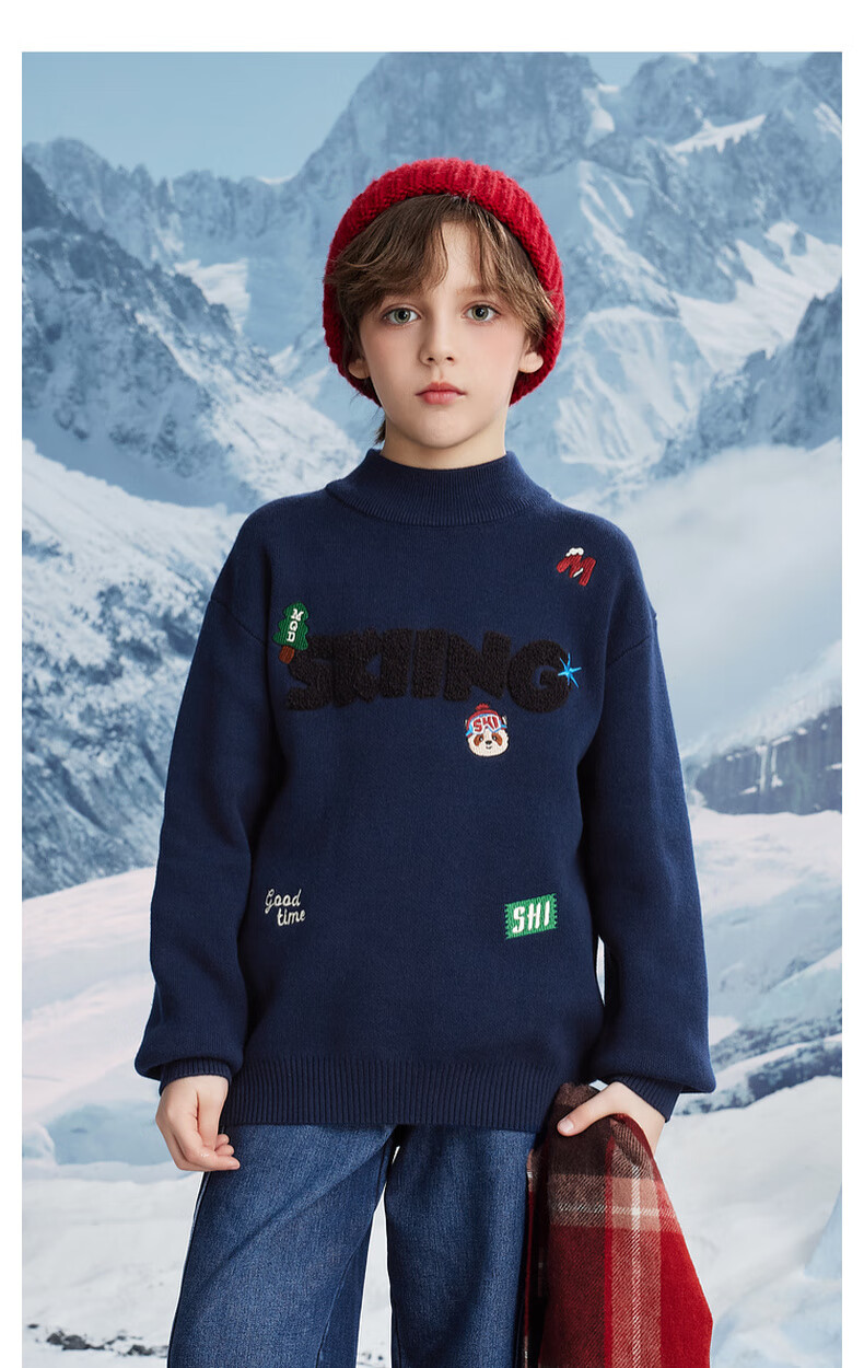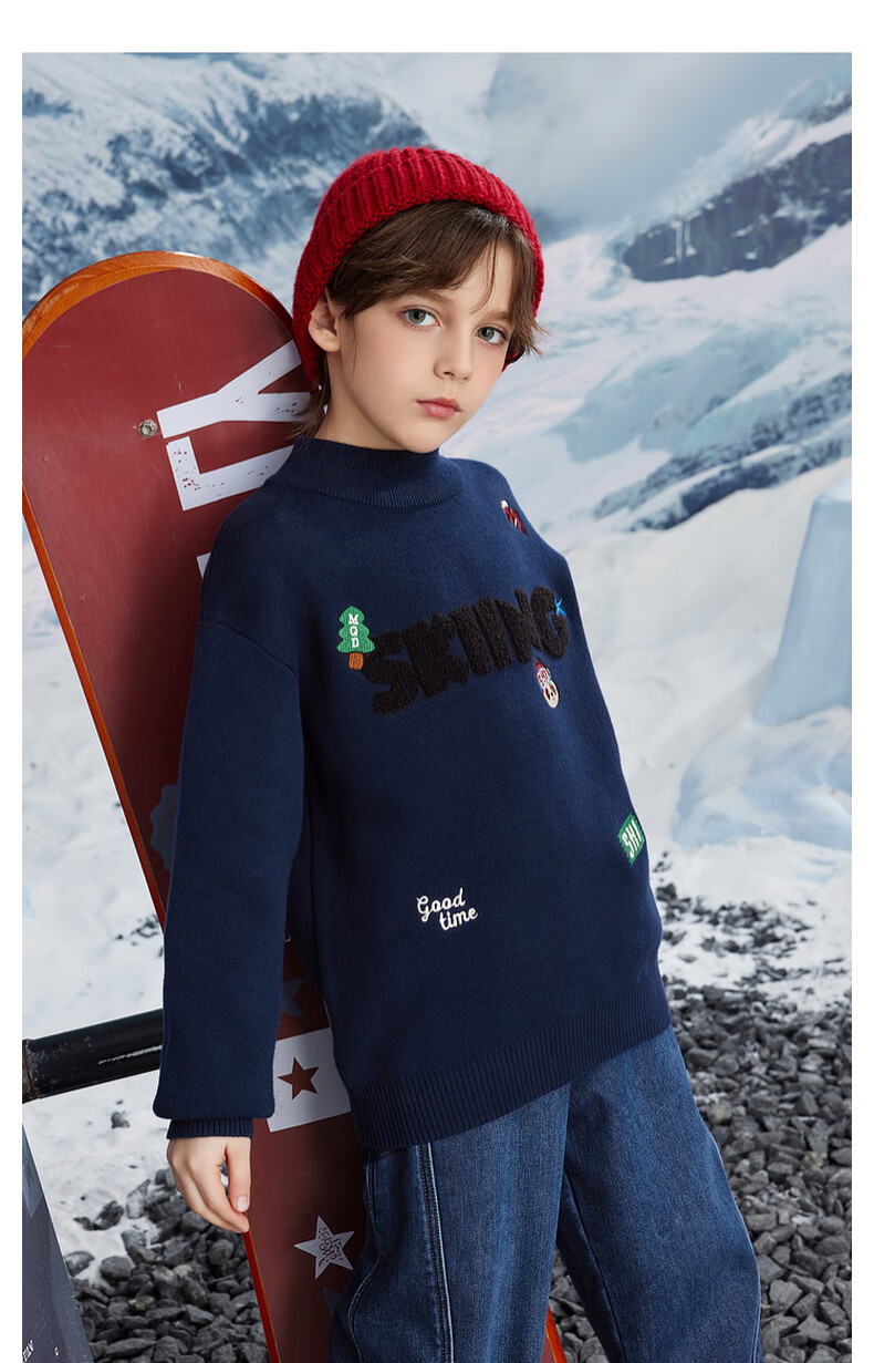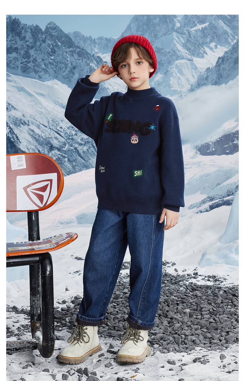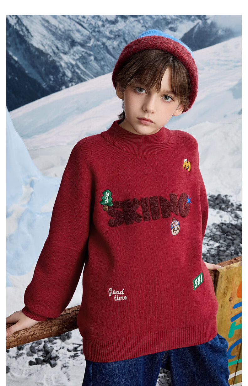 【MQD】男大童冬季学院风卡通满版保暖半高领毛衣