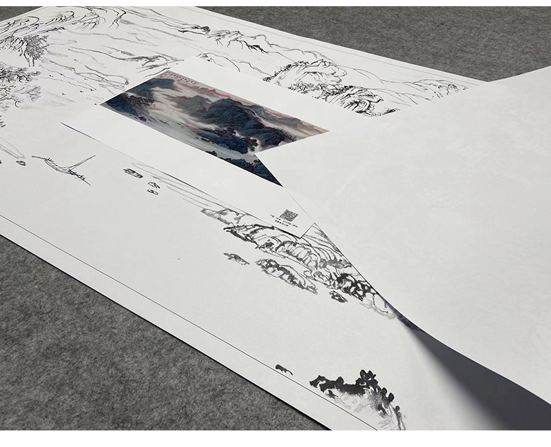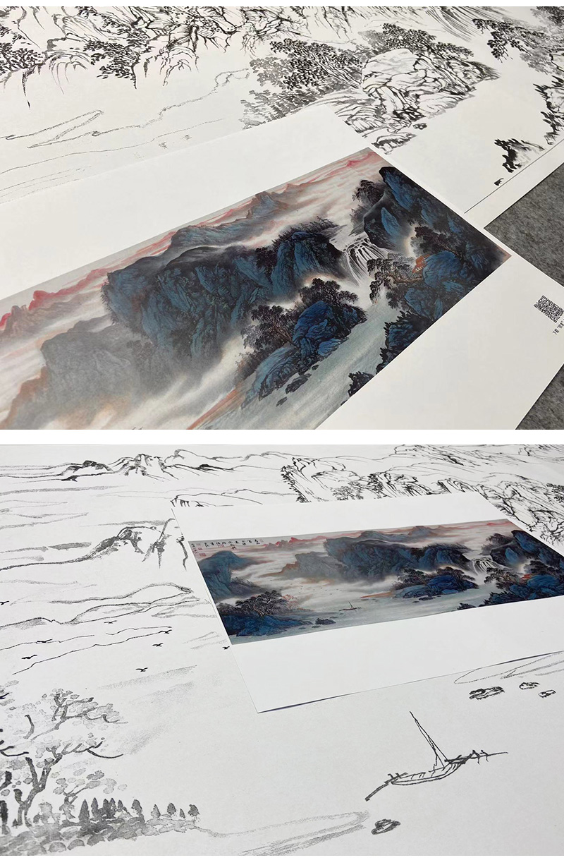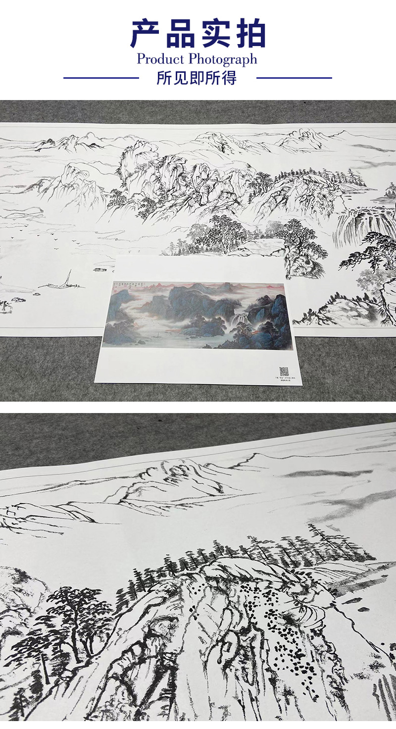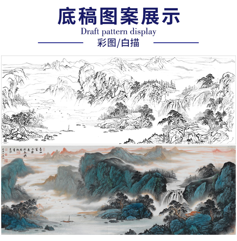 【大彩图】横幅工笔画白描底稿《源远流长》临摹勾线山水线稿FS06