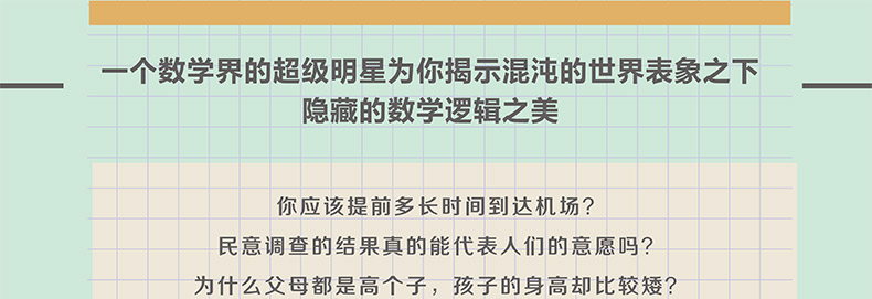 本书可读性强,且充满幽默感,可以避免你掉入错误的陷阱,并认识到数学推理与我们的生活息息相关。正如艾伦伯格所说,数学知识“就像一双X光透视眼,可以帮助我们洞见在混沌和嘈杂的表象之下日常生活的隐性结构和秩序”。