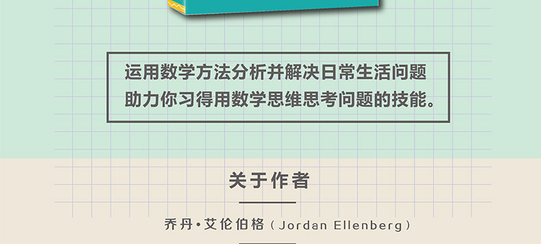 乔丹·艾伦伯格(Jordan Ellenberg),美国威斯康星大学数学系教授。他在世界范围内发表他的关于数论研究的演讲,并于2013年在世界的数学会议——数学联合会议上做主题演讲。他的文章主要发表在《连线》《纽约时报》《华盛顿邮报》《华尔街日报》《波士顿环球报》等媒体上,他还为《石板》杂志写作“Do the Math”专栏文章,十分受欢迎。