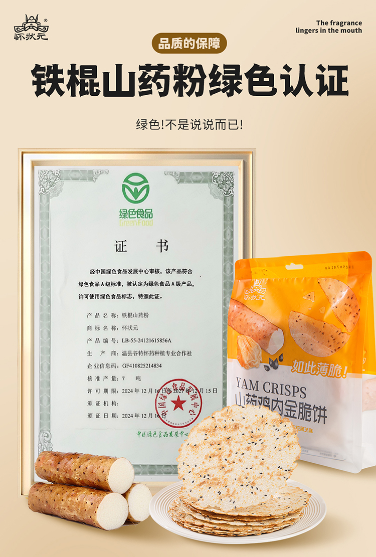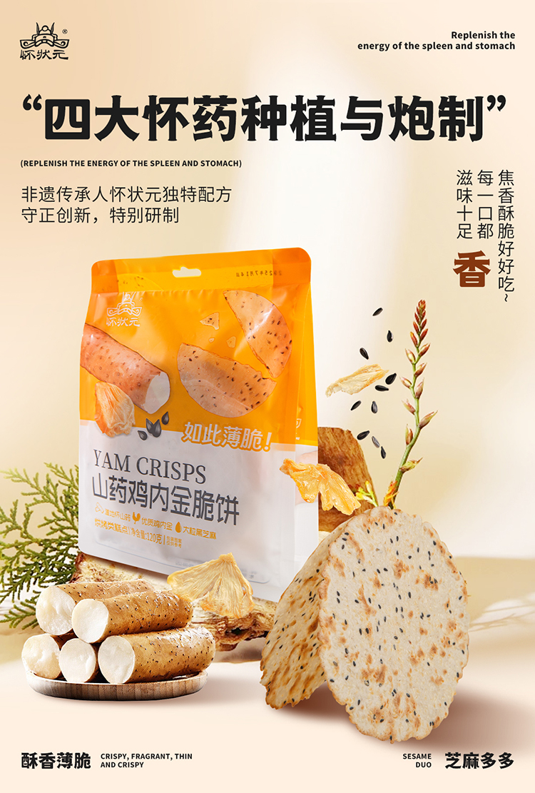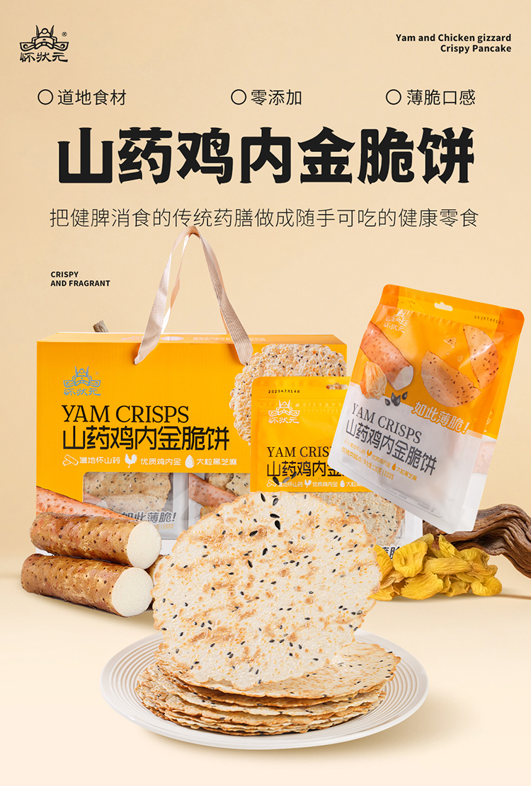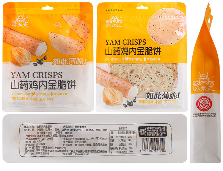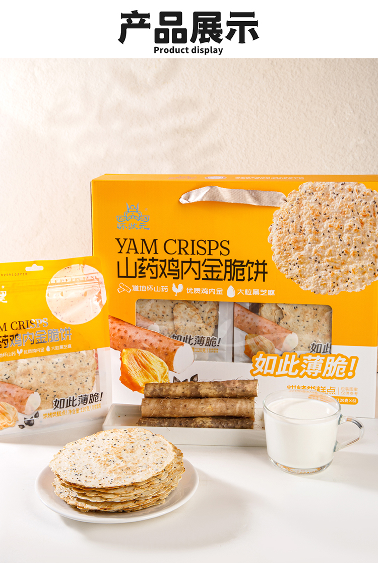 【甄选】怀状元山药鸡内金脆饼酥脆美味香气十足配料干净120g*2袋