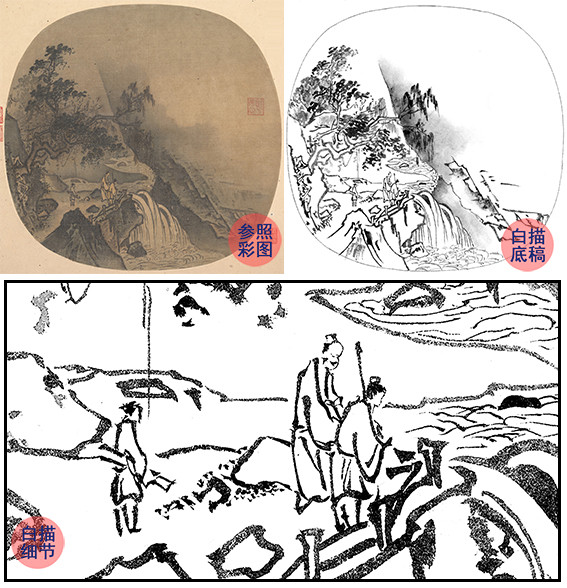 宋画山水人物小品白描底稿-马远 《观瀑图》-多种白描尺寸可选-GS17