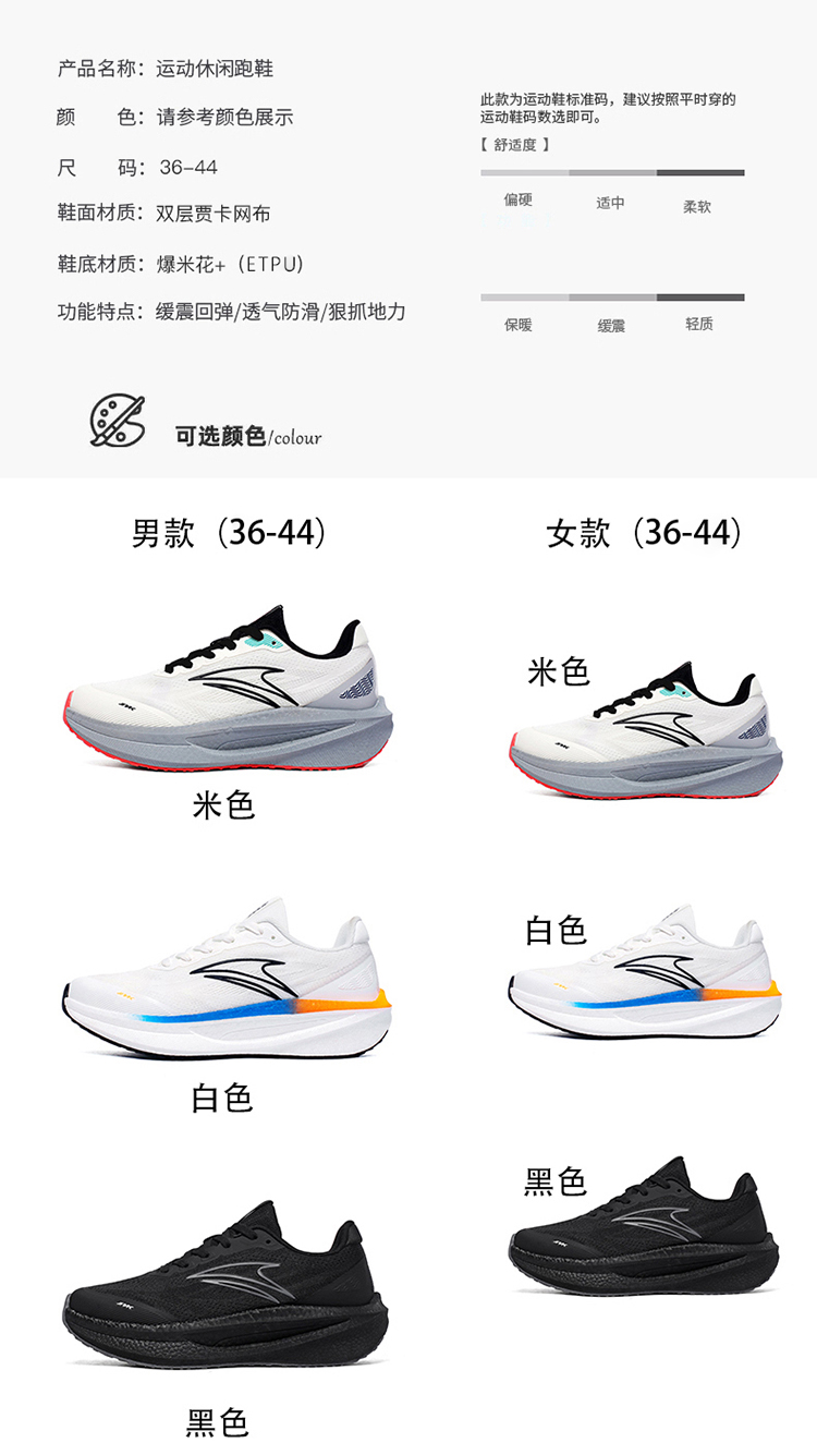 【专注跑鞋 爆米花+尼绒板缓震】金莱克运动休闲跑鞋(买一发三,赠送品牌拖鞋+袜子)