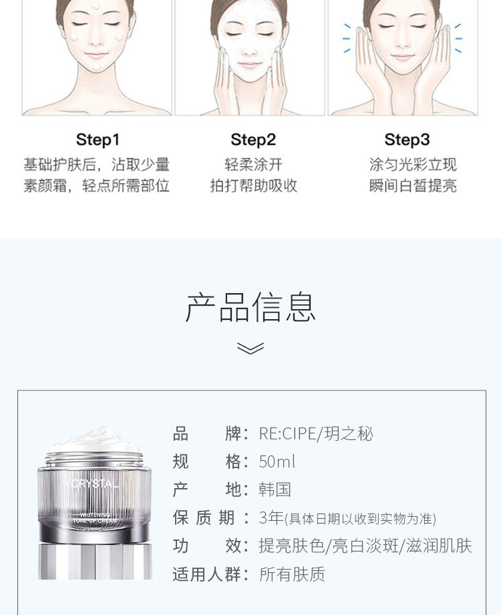 【第二瓶半价优惠】水晶淡斑美白素颜霜——省时省力,一步做女神 商品图0