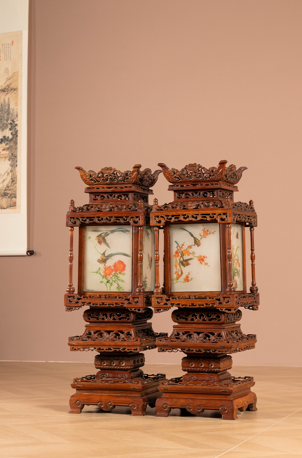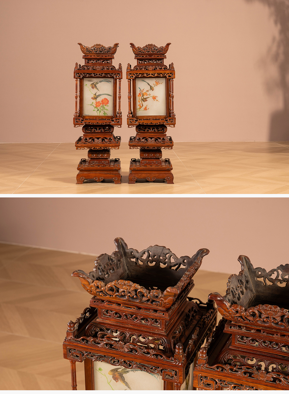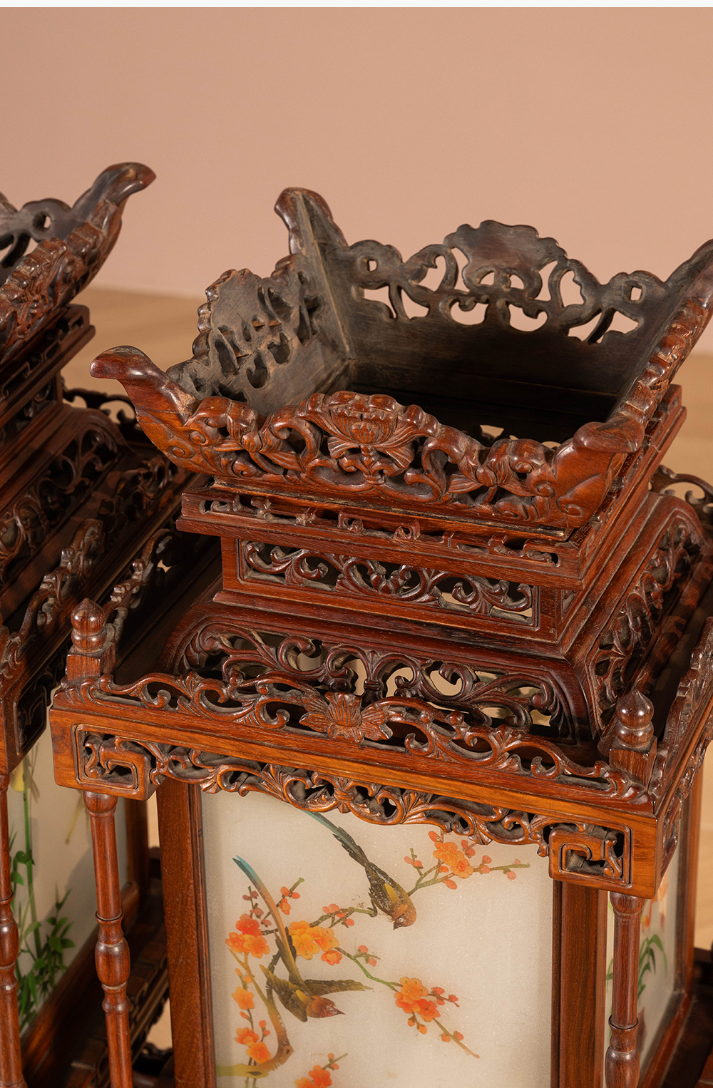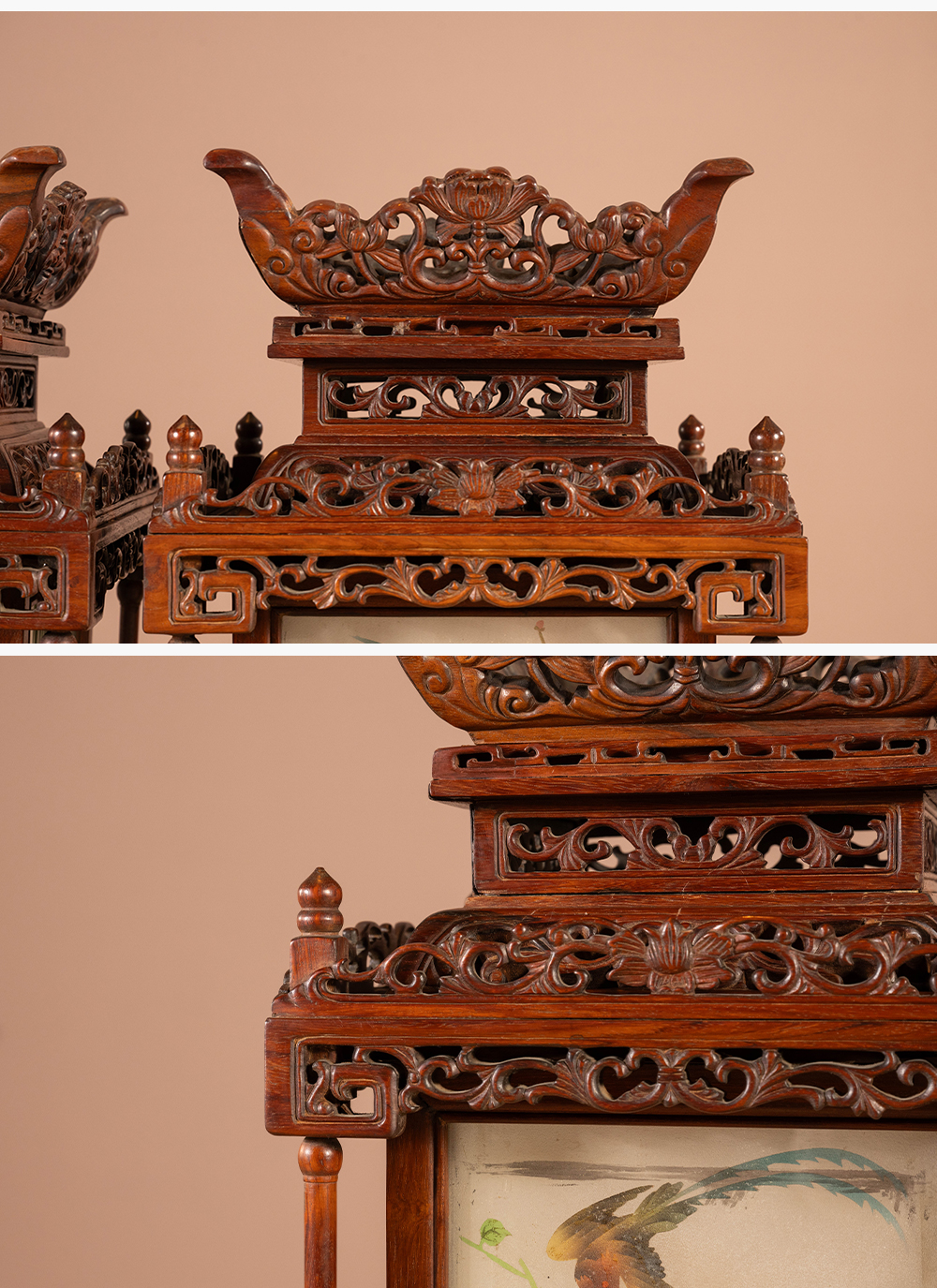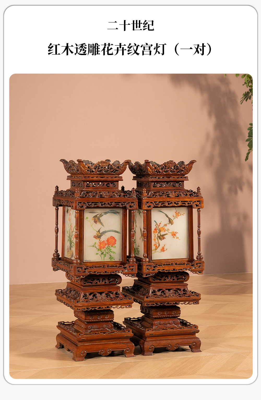 二十世纪 红木透雕花卉纹宫灯(一对)