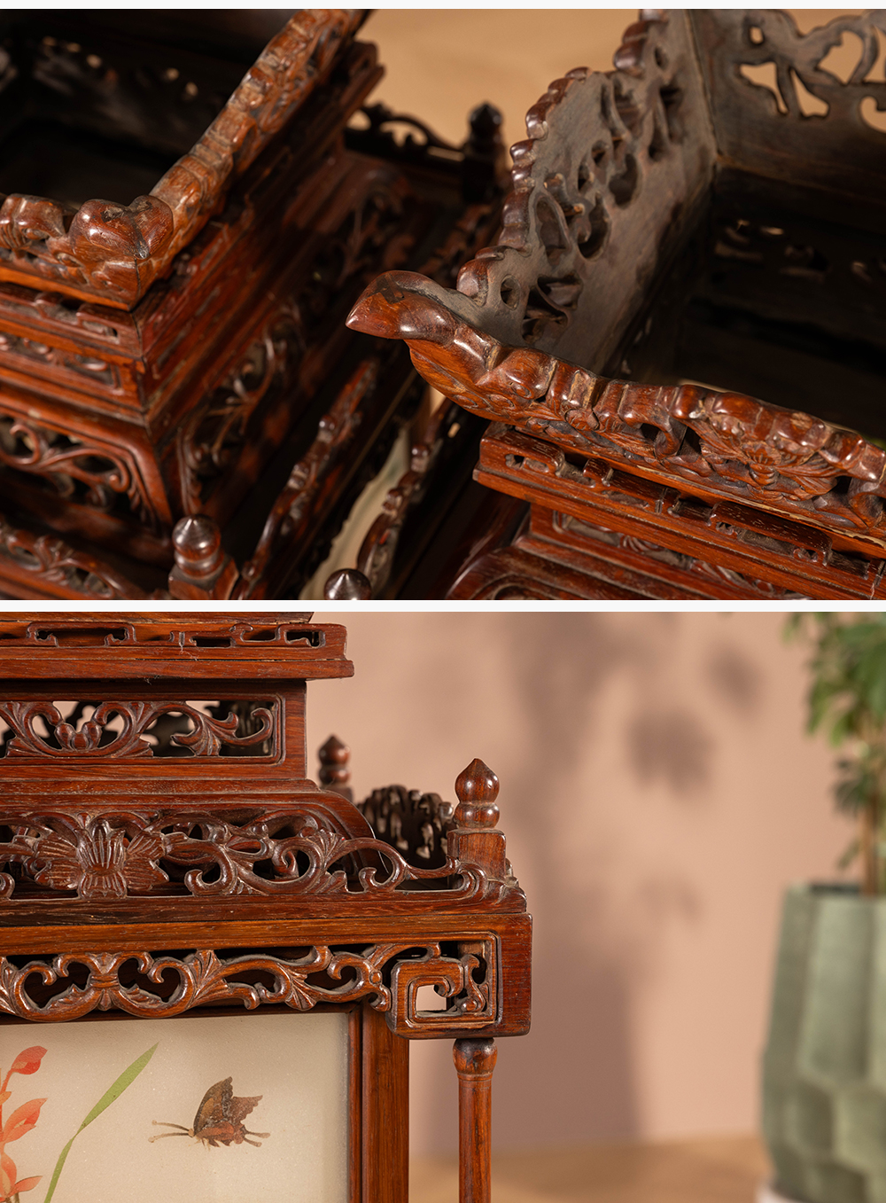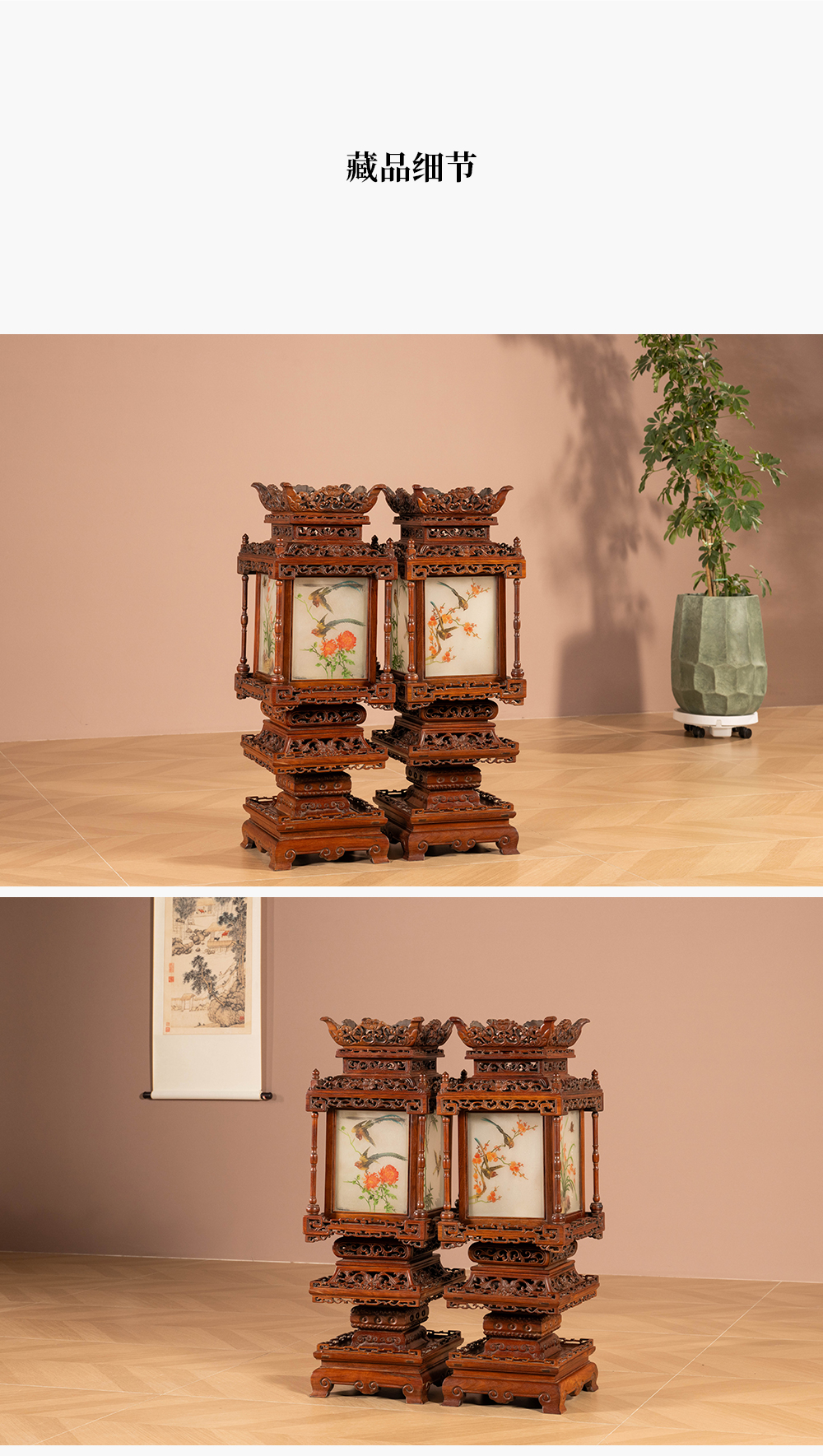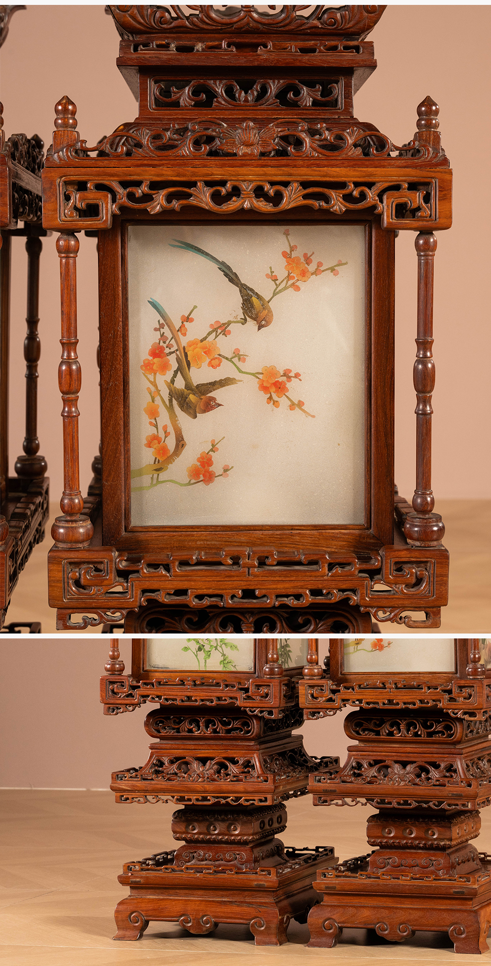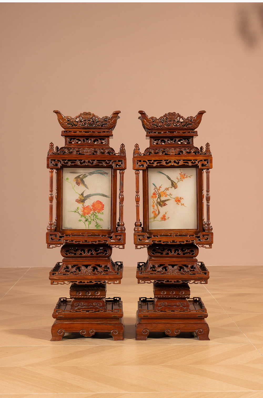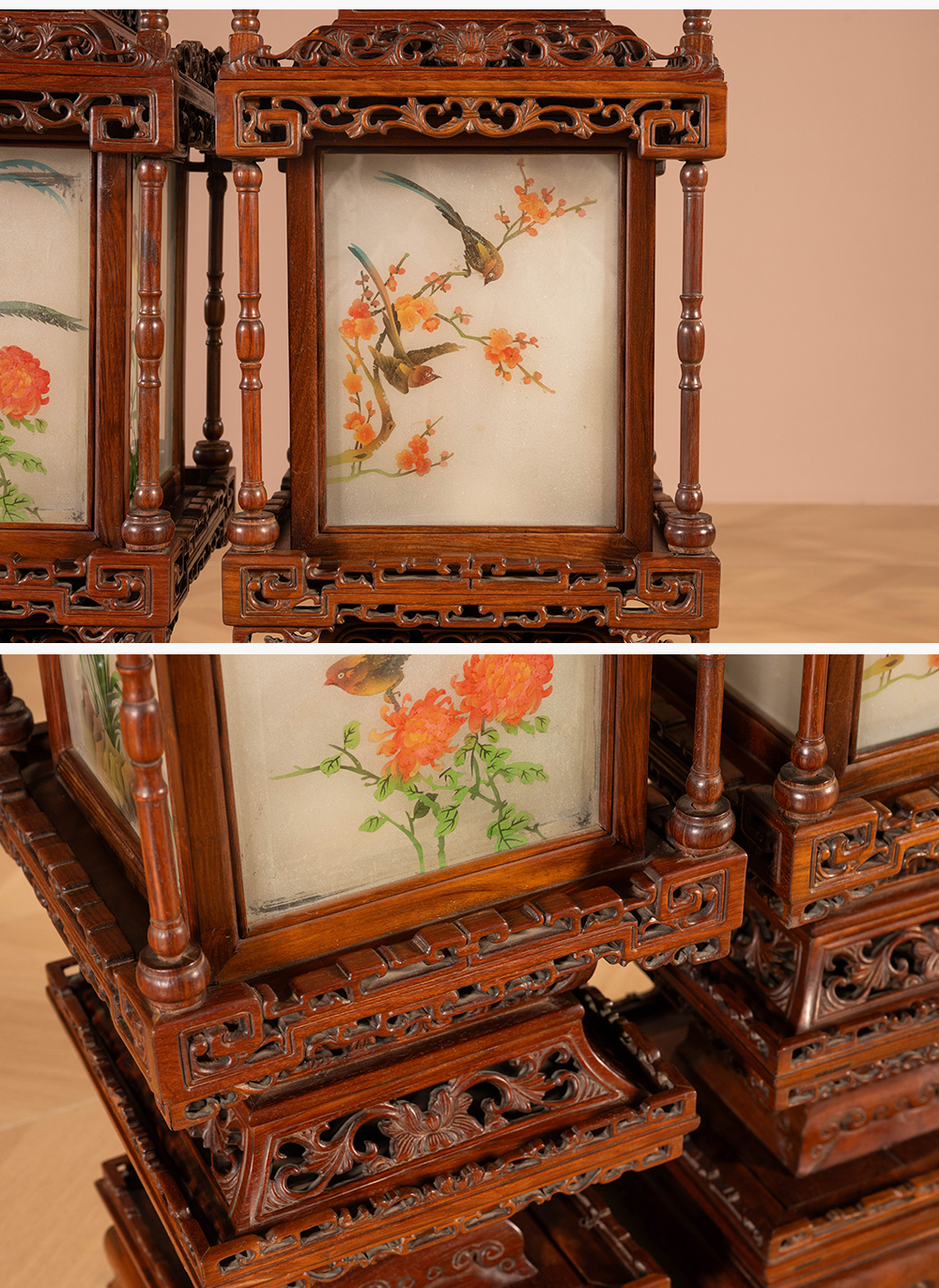 二十世纪 红木透雕花卉纹宫灯(一对)
