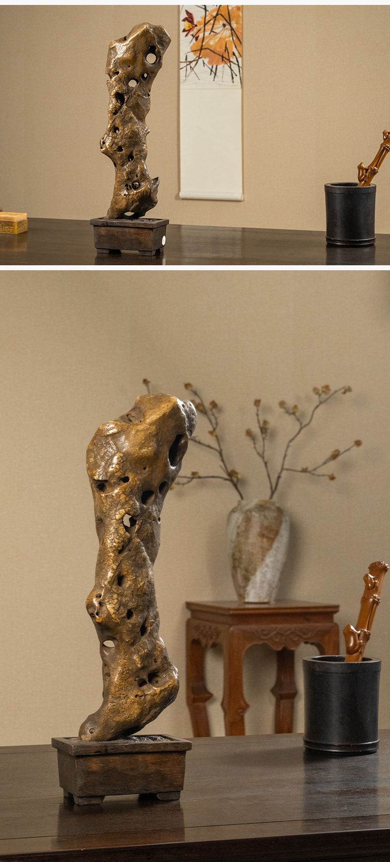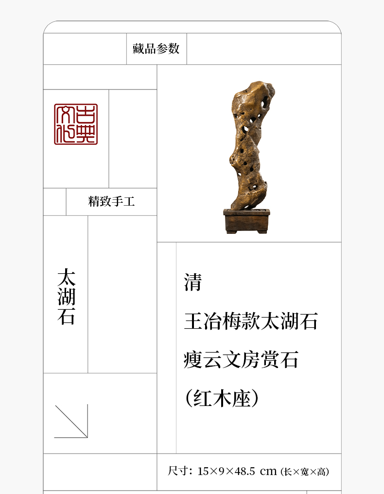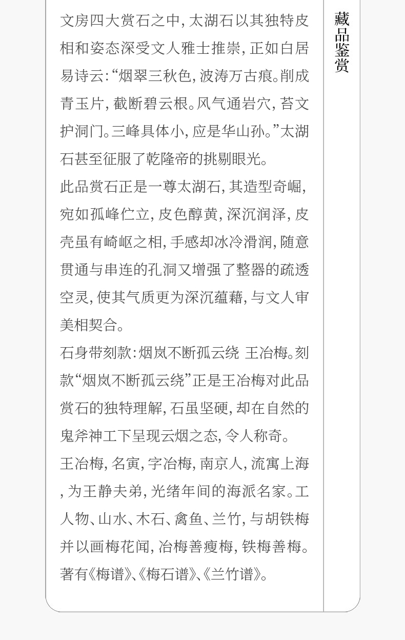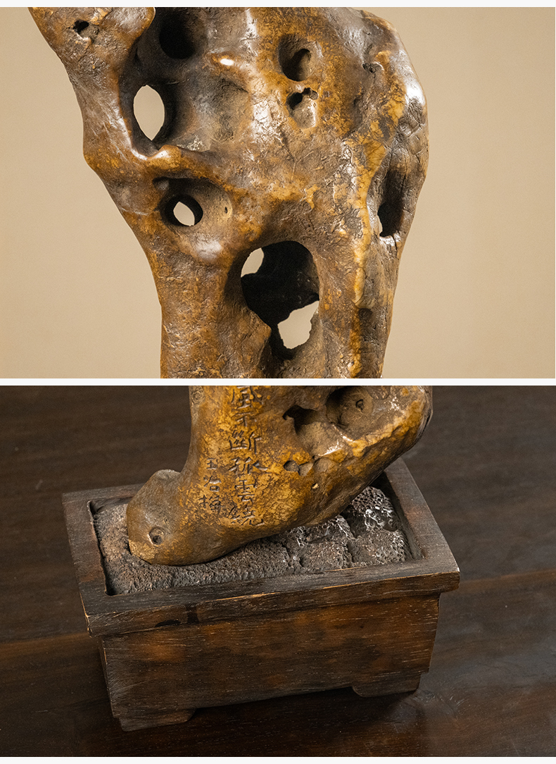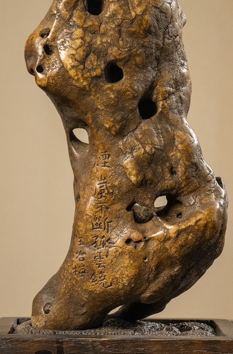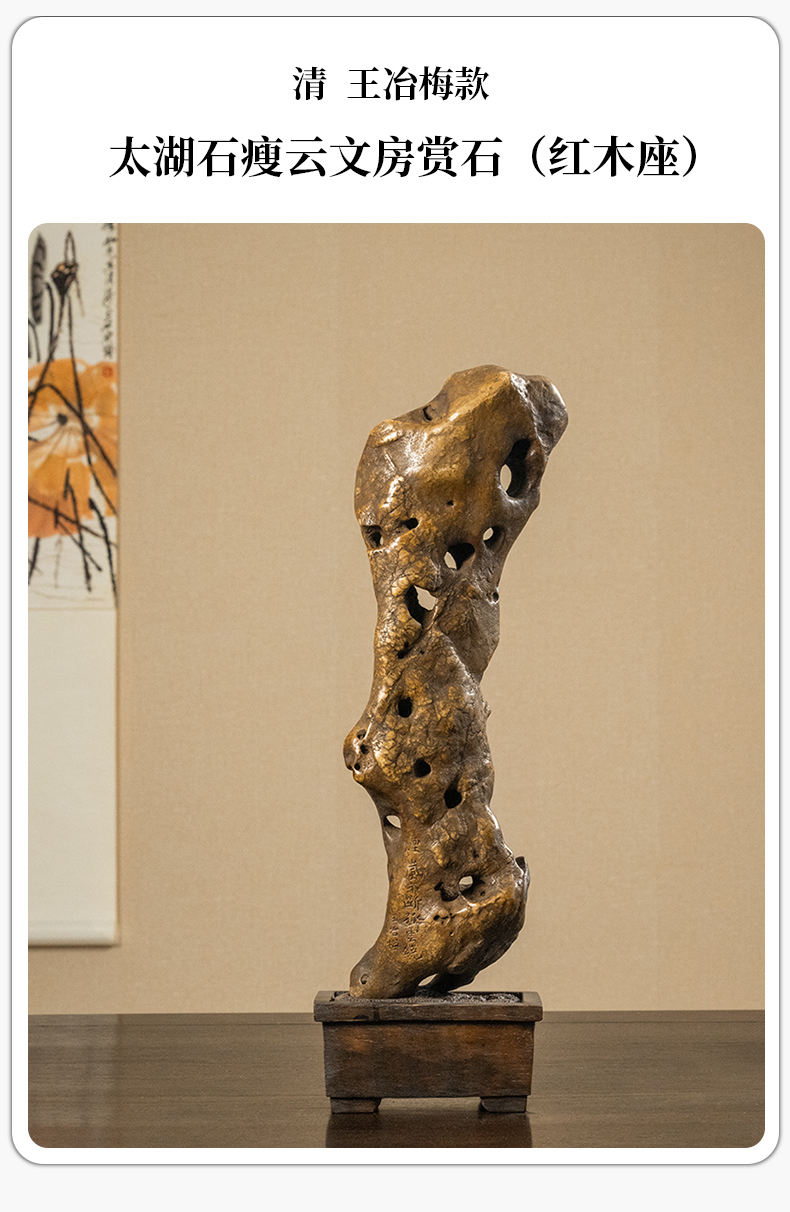 清 王冶梅款太湖石瘦云文房赏石(红木座)