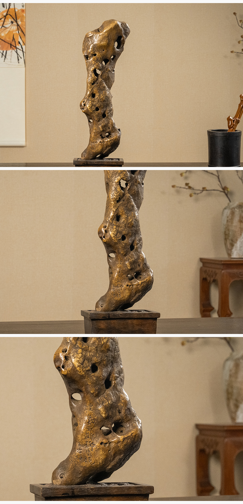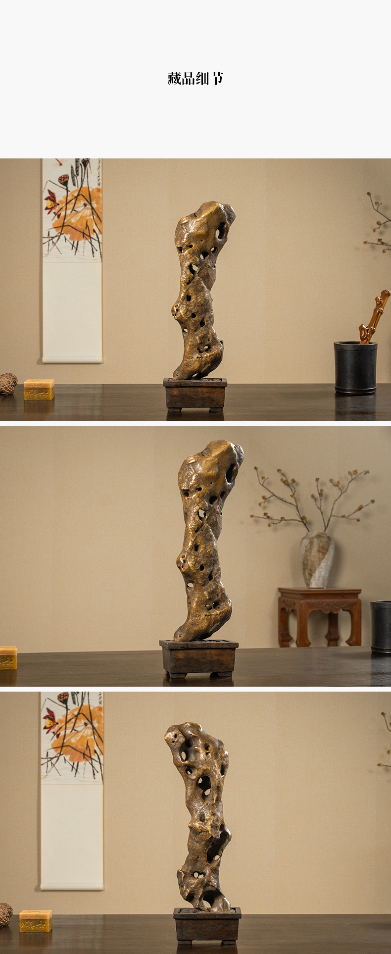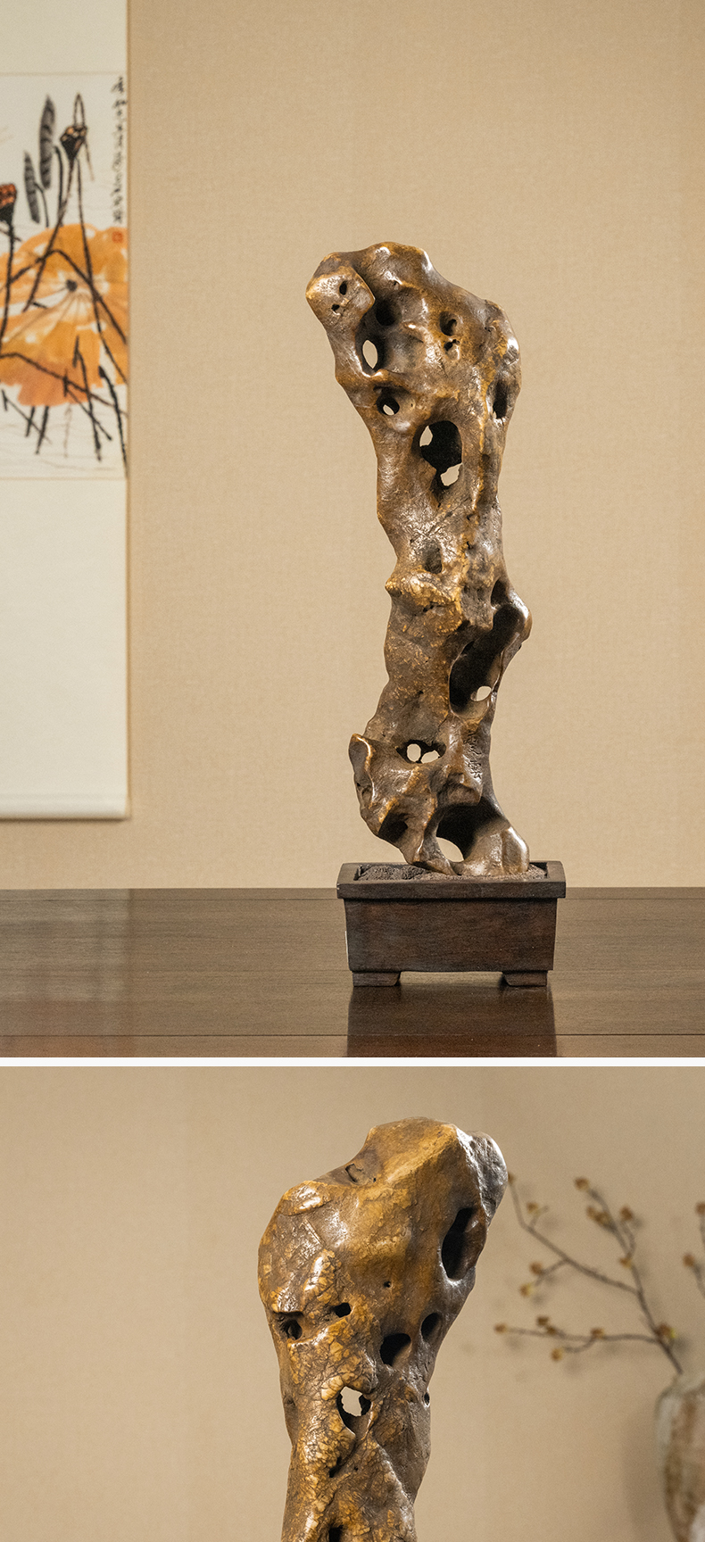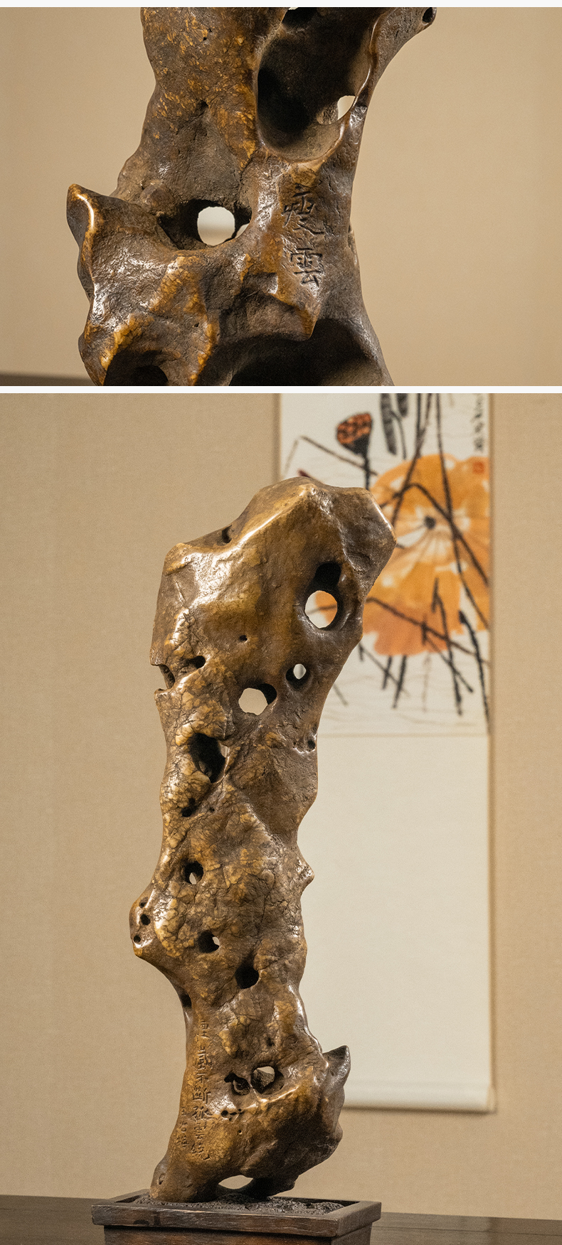 清 王冶梅款太湖石瘦云文房赏石(红木座)