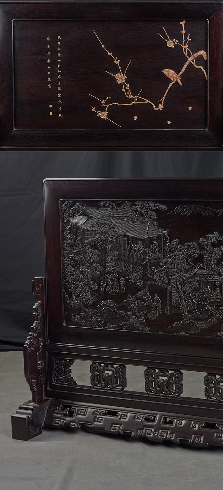 清中期 黄花梨镶云石云纹三弯腿带托泥四足方形器座