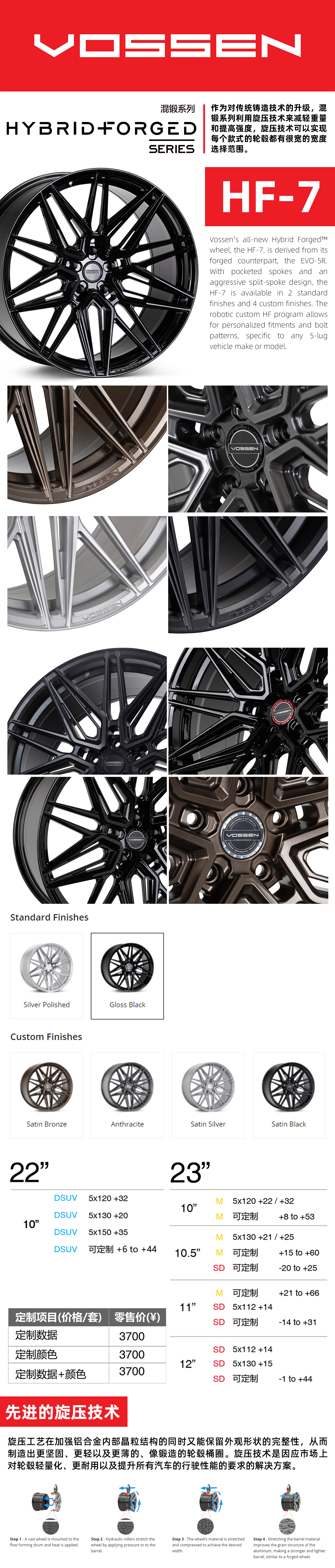 Vossen HF7 混锻轮圈 19/20/21/22/23/24寸 美国进口 数据颜色可定制 全车型适用 No.250617
