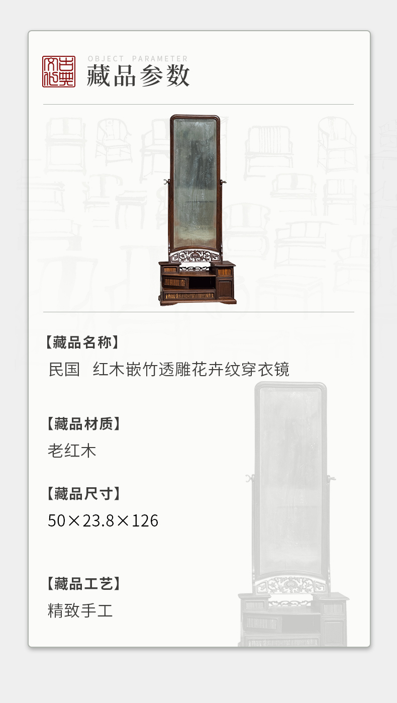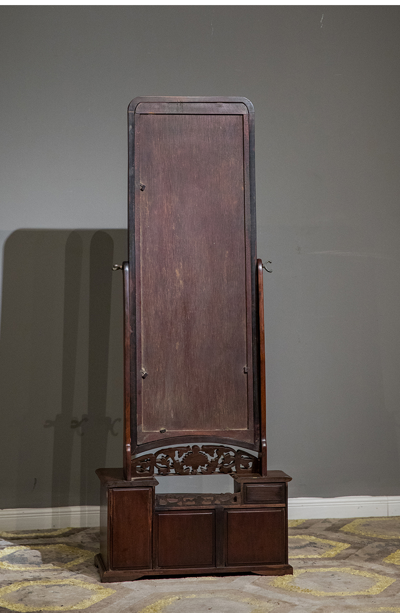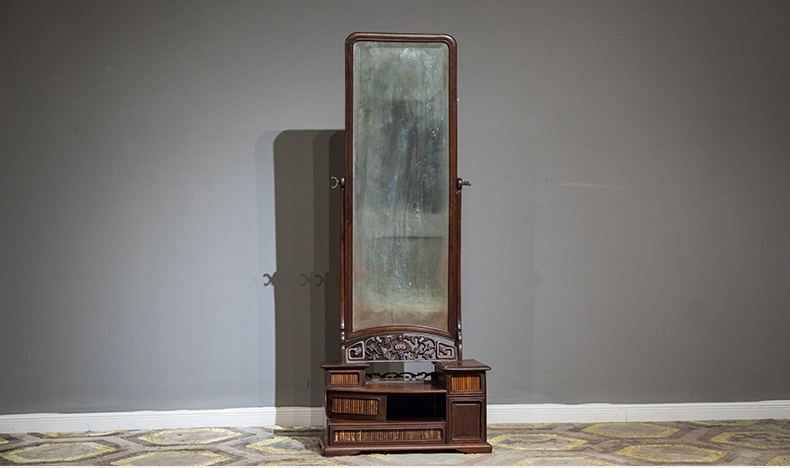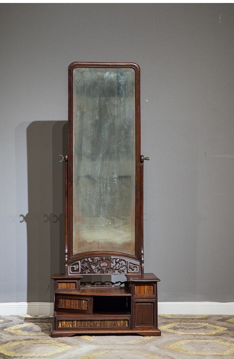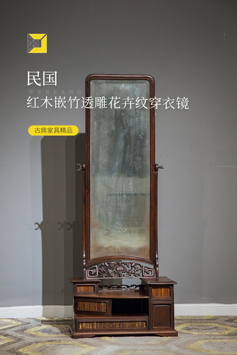 民国 红木嵌竹透雕花卉纹穿衣镜