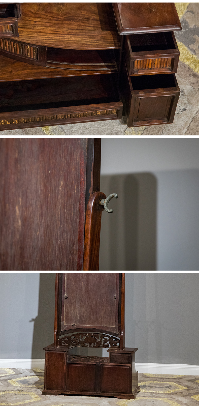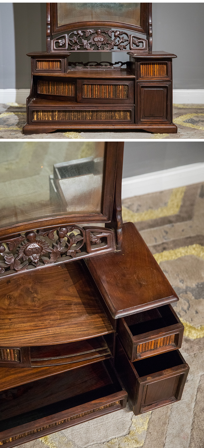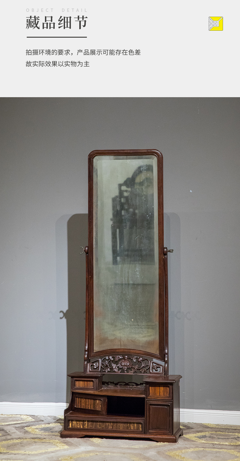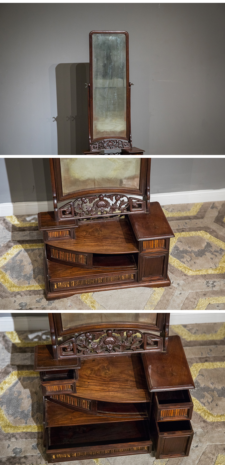 民国 红木嵌竹透雕花卉纹穿衣镜