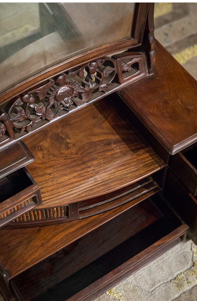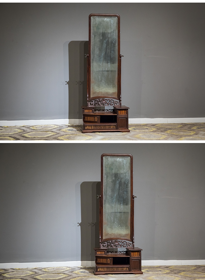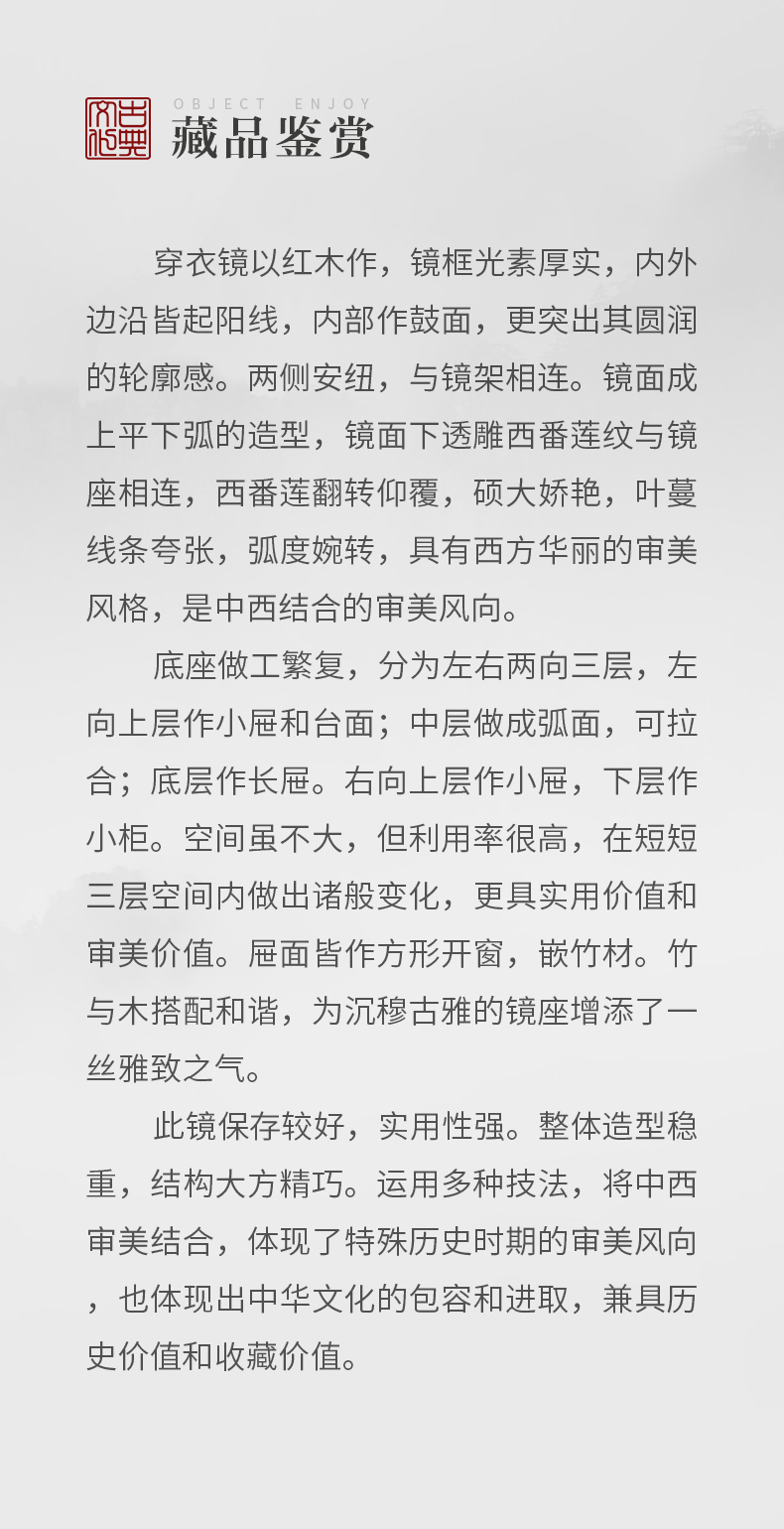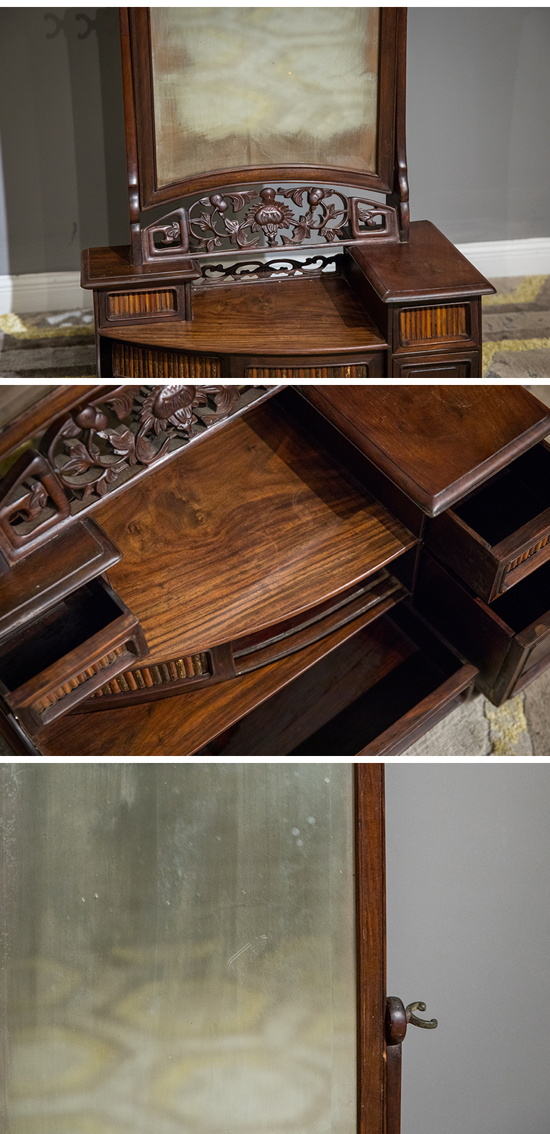 民国 红木嵌竹透雕花卉纹穿衣镜