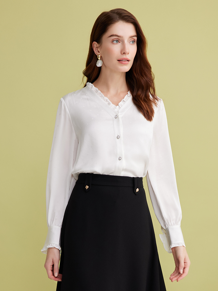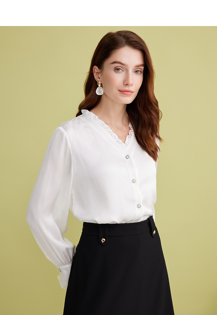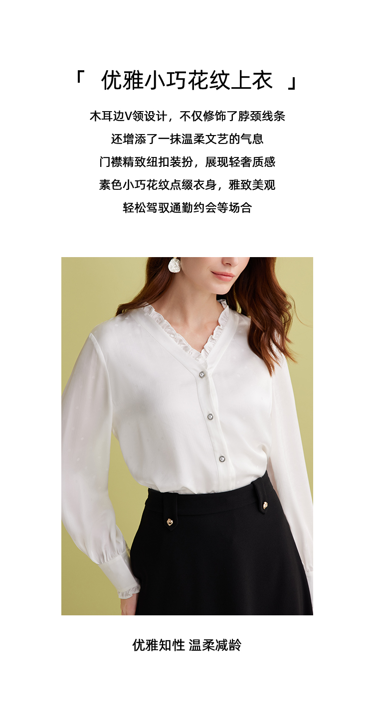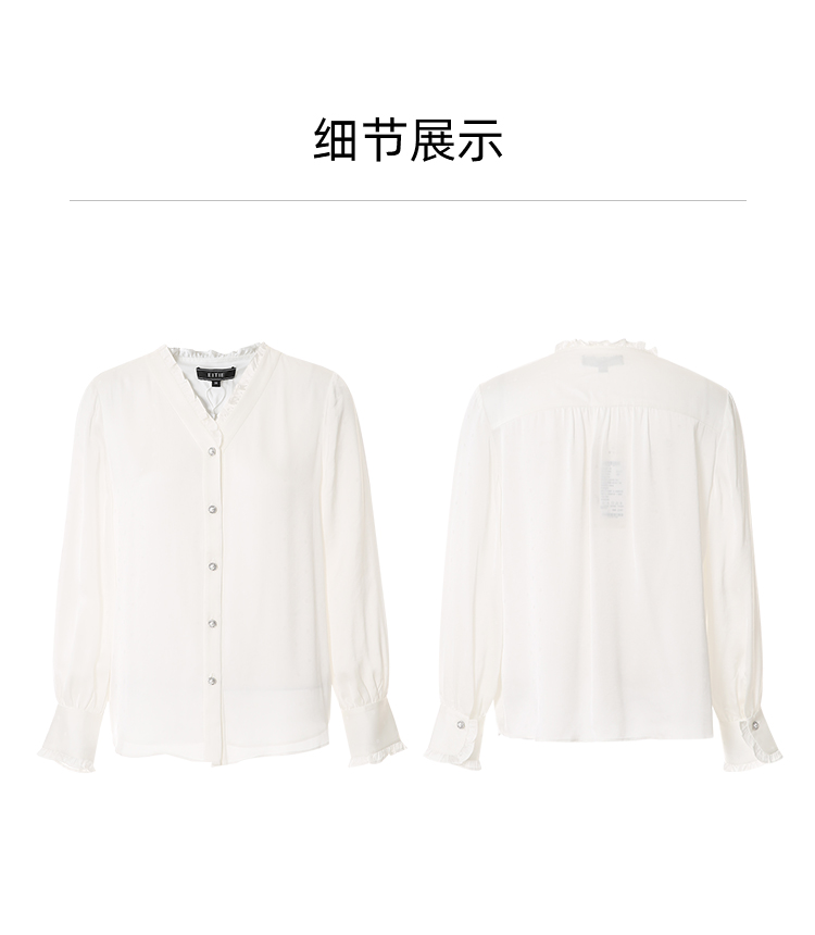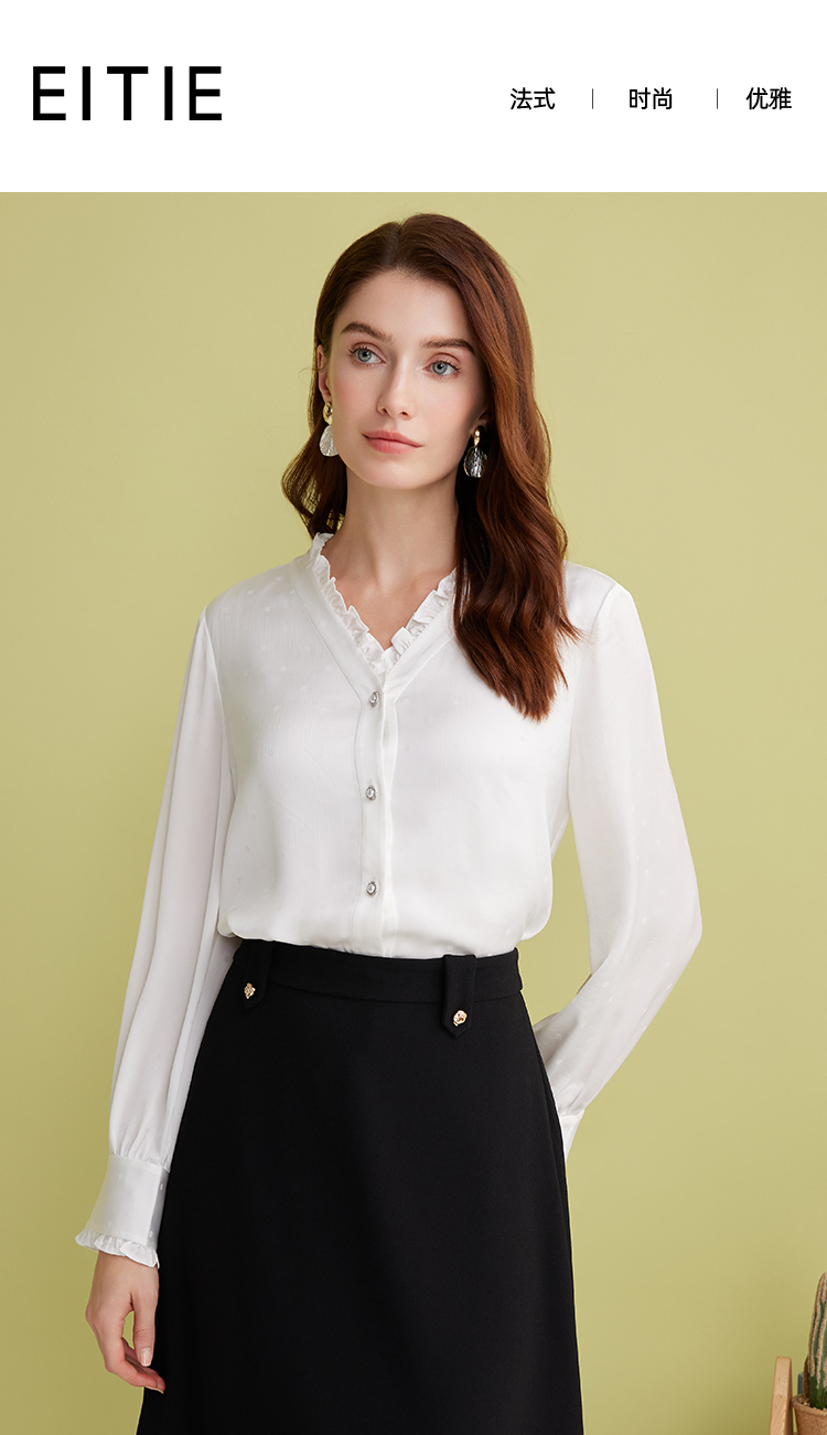 EITIE爱特爱优雅V领显瘦木耳边纯色百搭直筒衬衫上衣2025春季新款A2509501