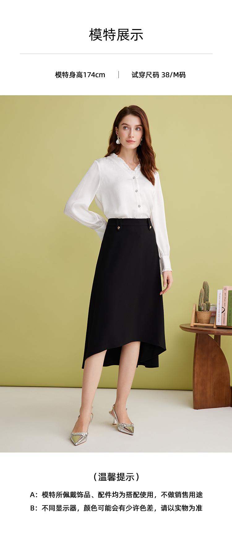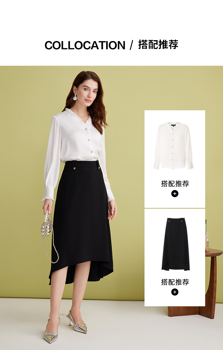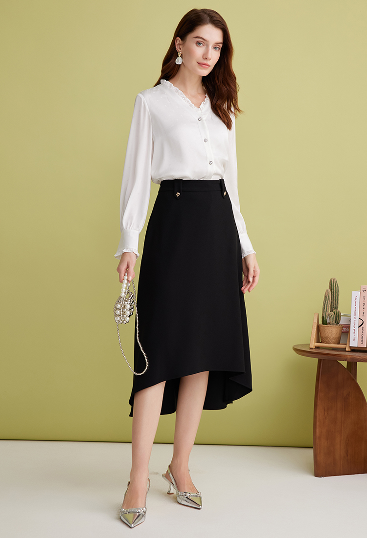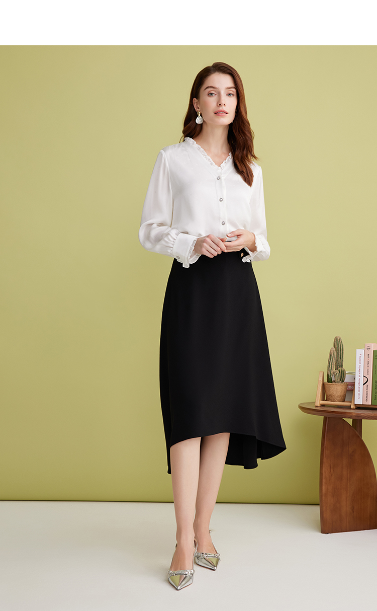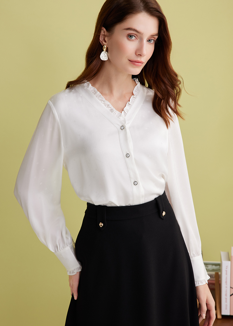 EITIE爱特爱优雅V领显瘦木耳边纯色百搭直筒衬衫上衣2025春季新款A2509501