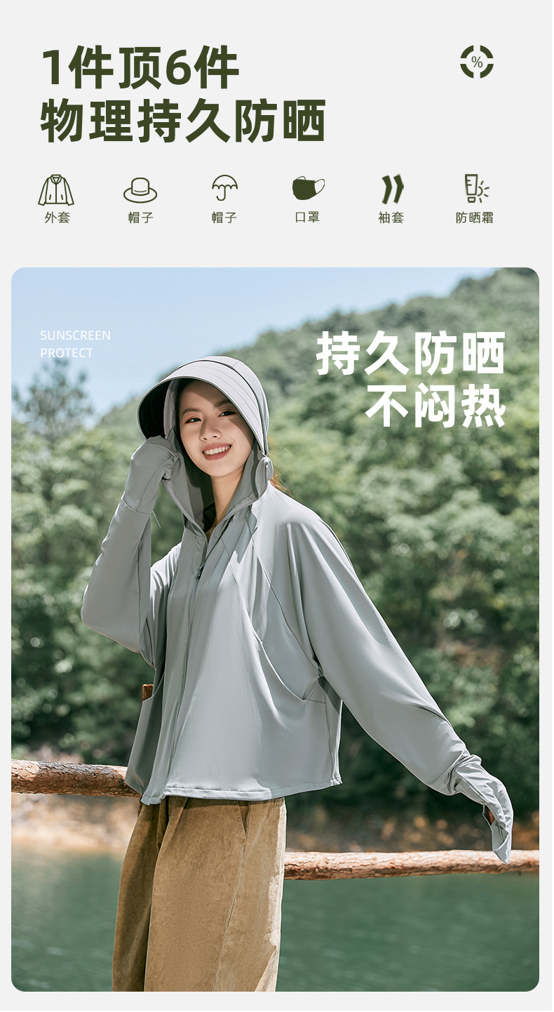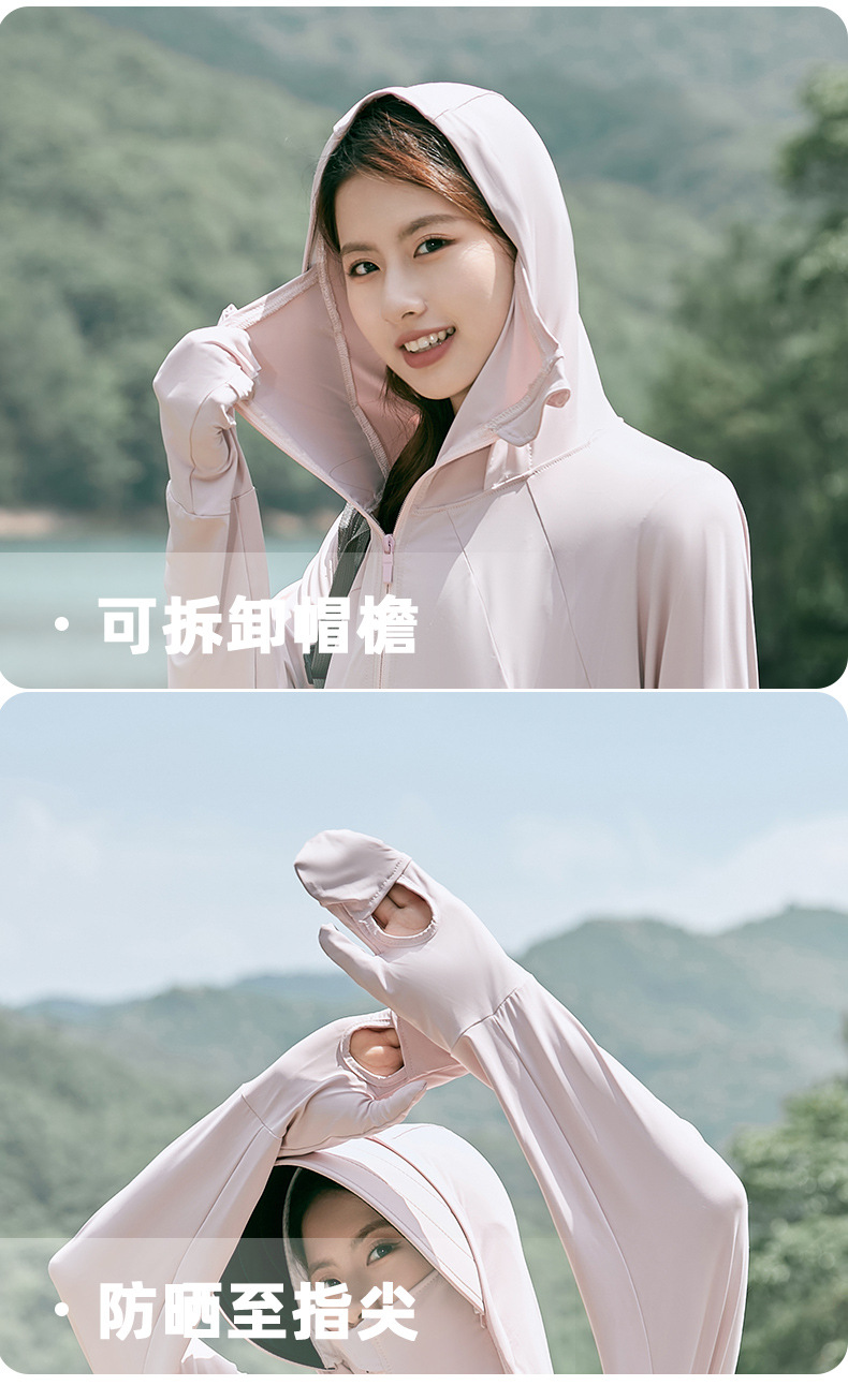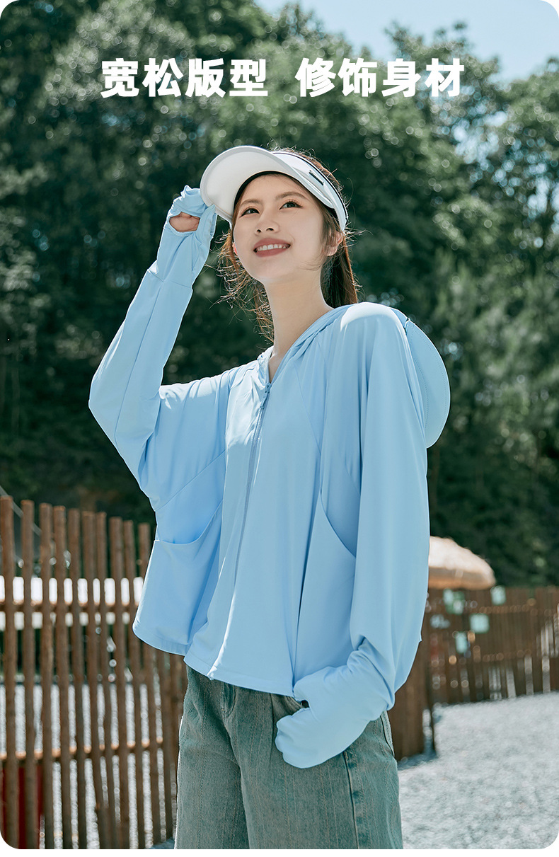 雀说冰丝防晒衣女夏季新款防紫外线户外骑车长袖护手宽松薄防晒服AL2312