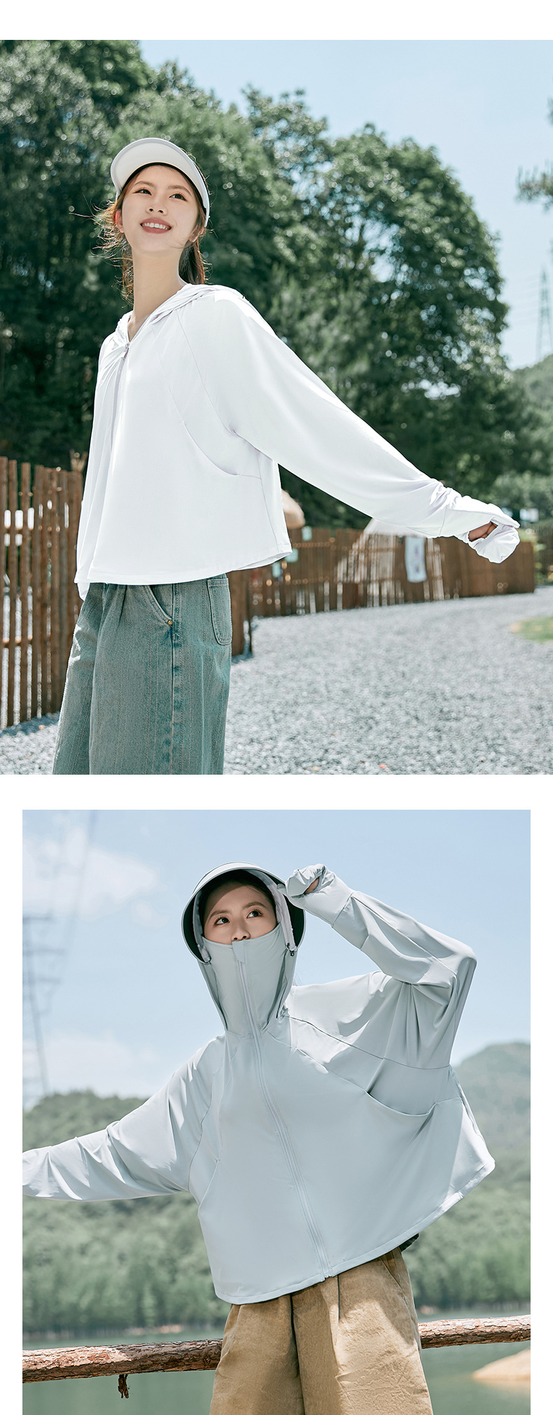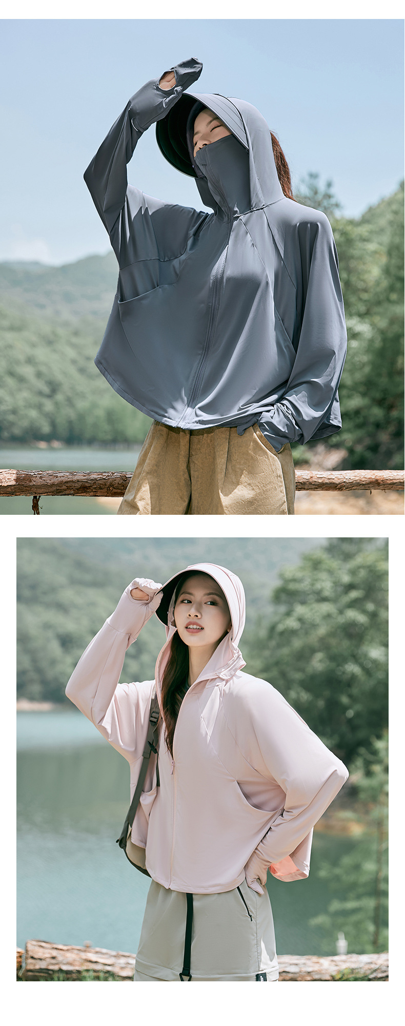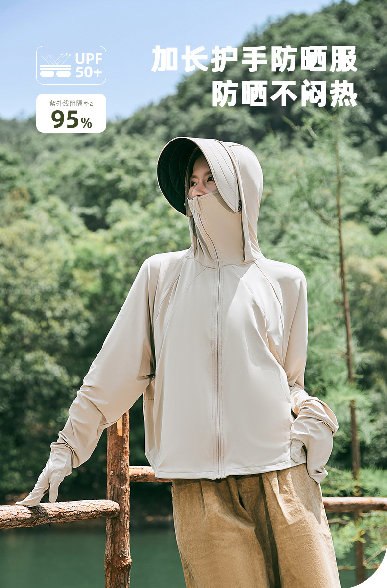 雀说冰丝防晒衣女夏季新款防紫外线户外骑车长袖护手宽松薄防晒服AL2312
