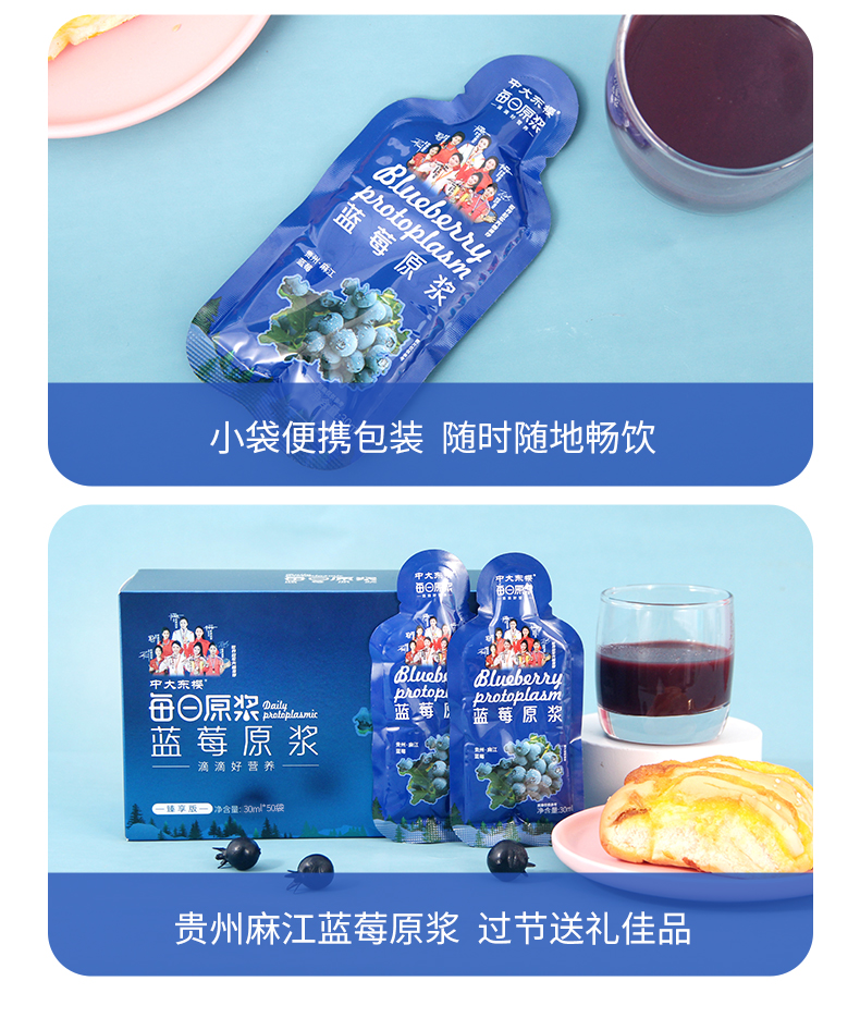 【中大东樱 年货】蓝莓原浆大礼盒30ml*50袋/盒【周日不发货】