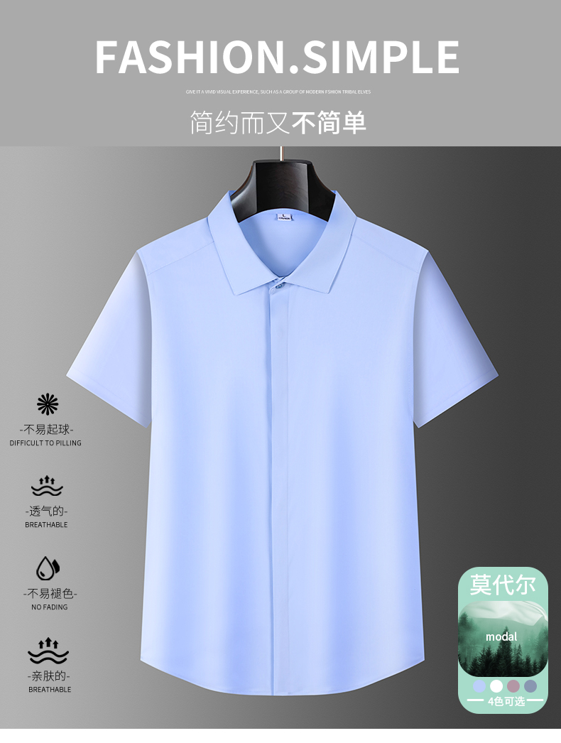 【莫代尔】【DKP】大依优型大码短袖衬衫翻领休闲纯色半袖男宽松商务上衣胖子加肥加大