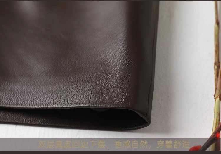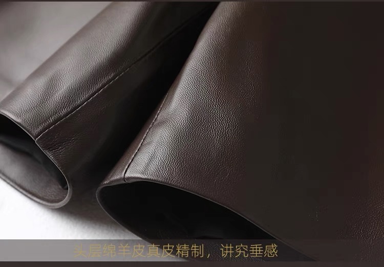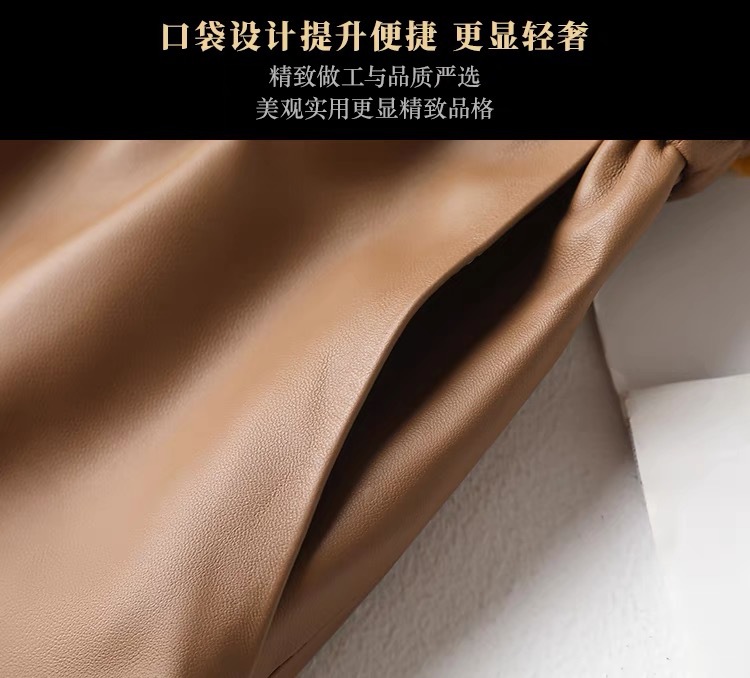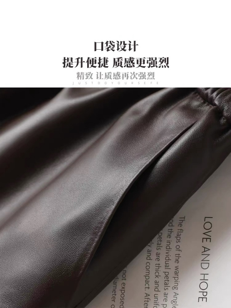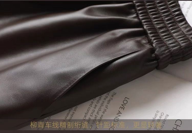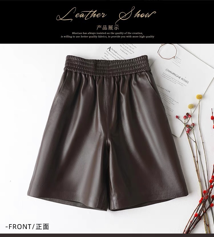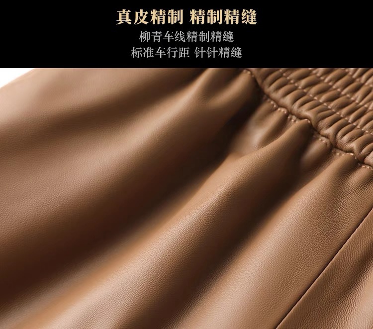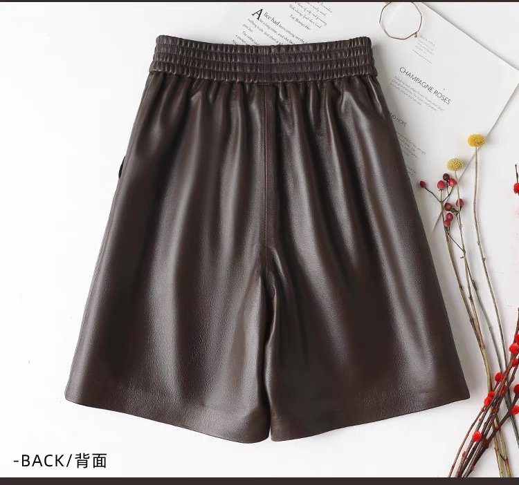 丁摩 真皮中裤女秋冬新款高腰松紧阔腿五分裤休闲皮裤子