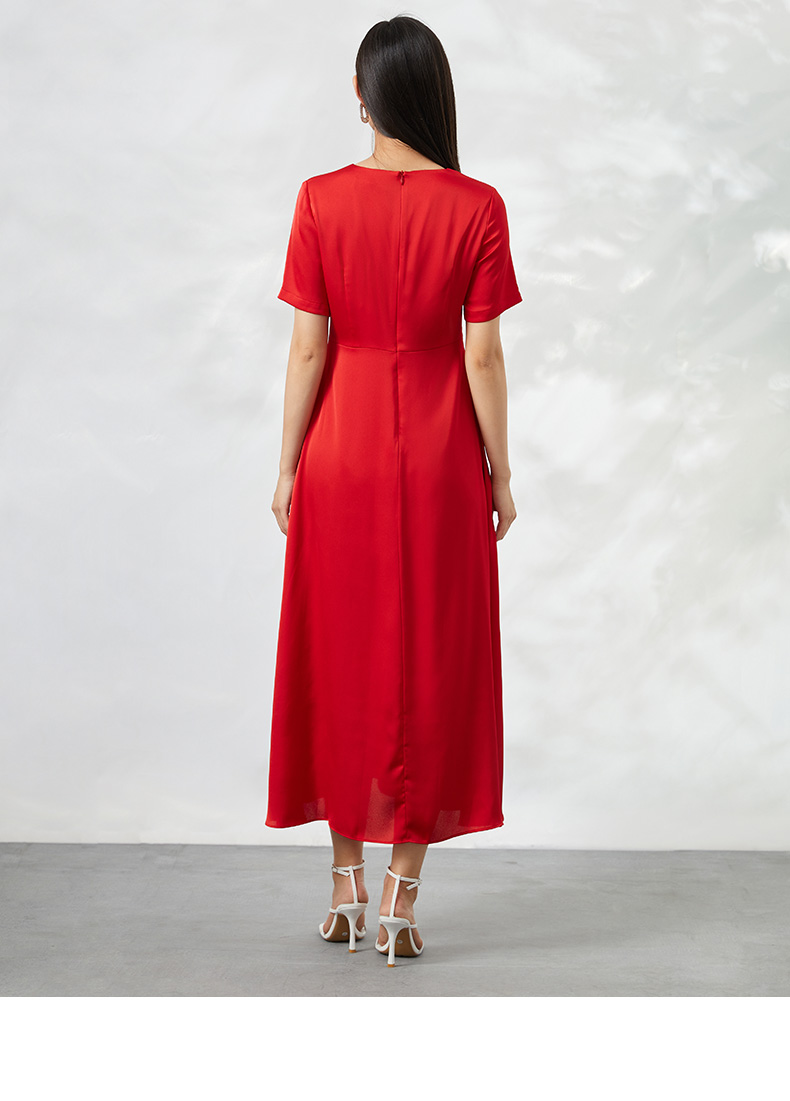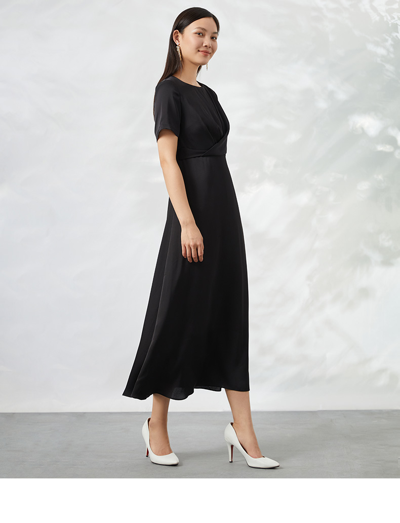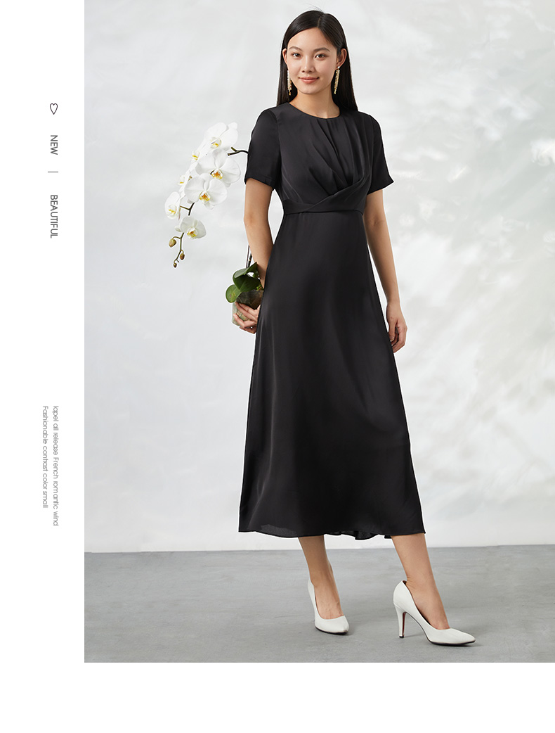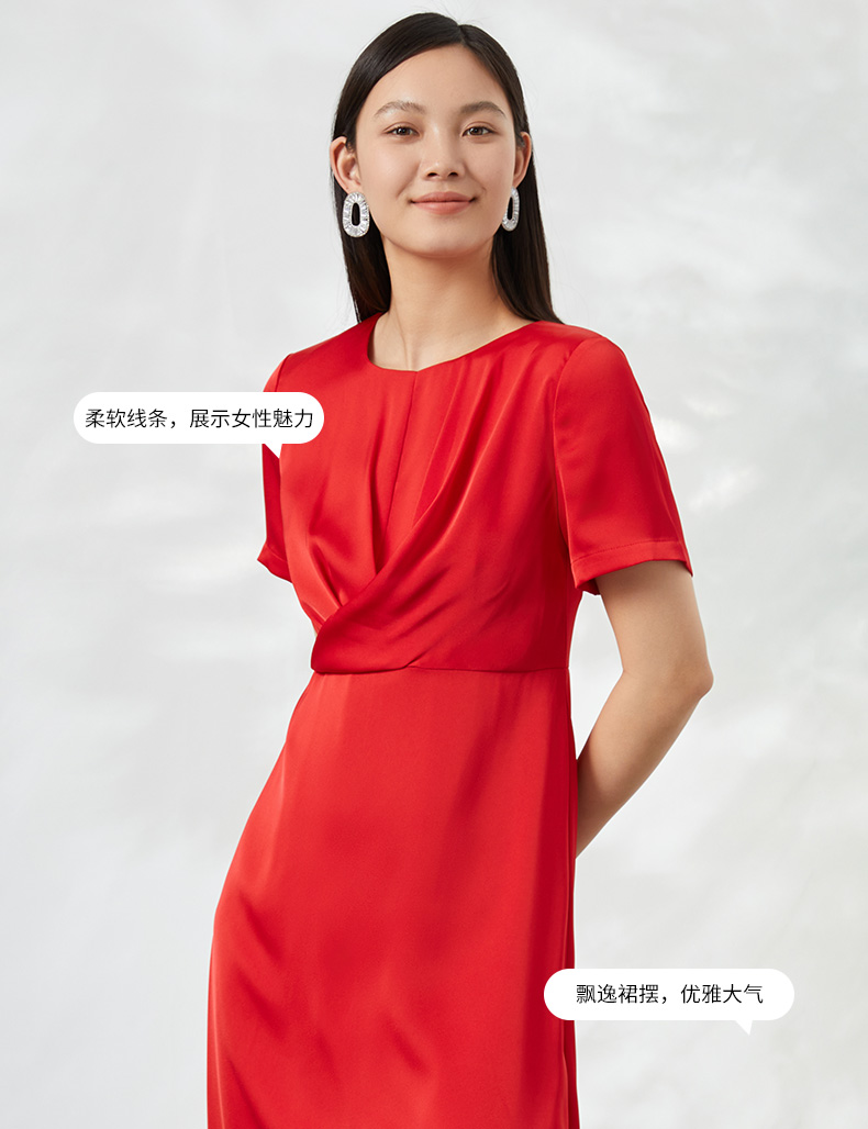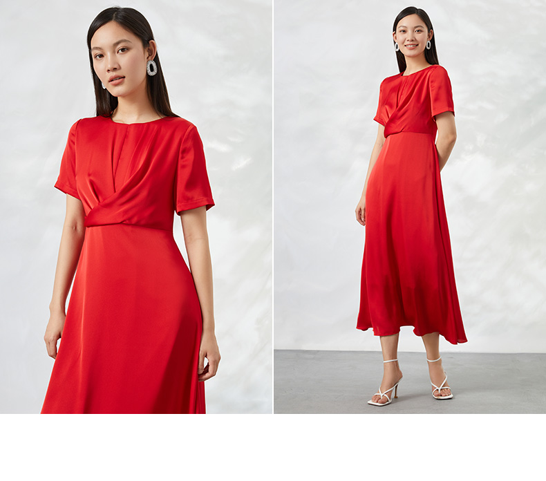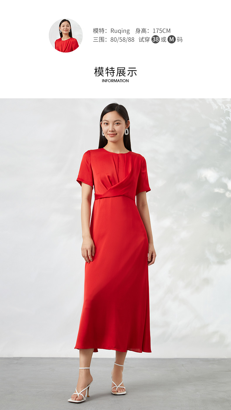 EITIE爱特爱女装夏季新款蝴蝶结系带开衩时尚轻盈连衣裙57074103